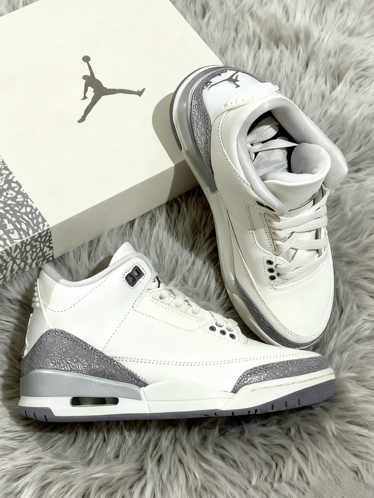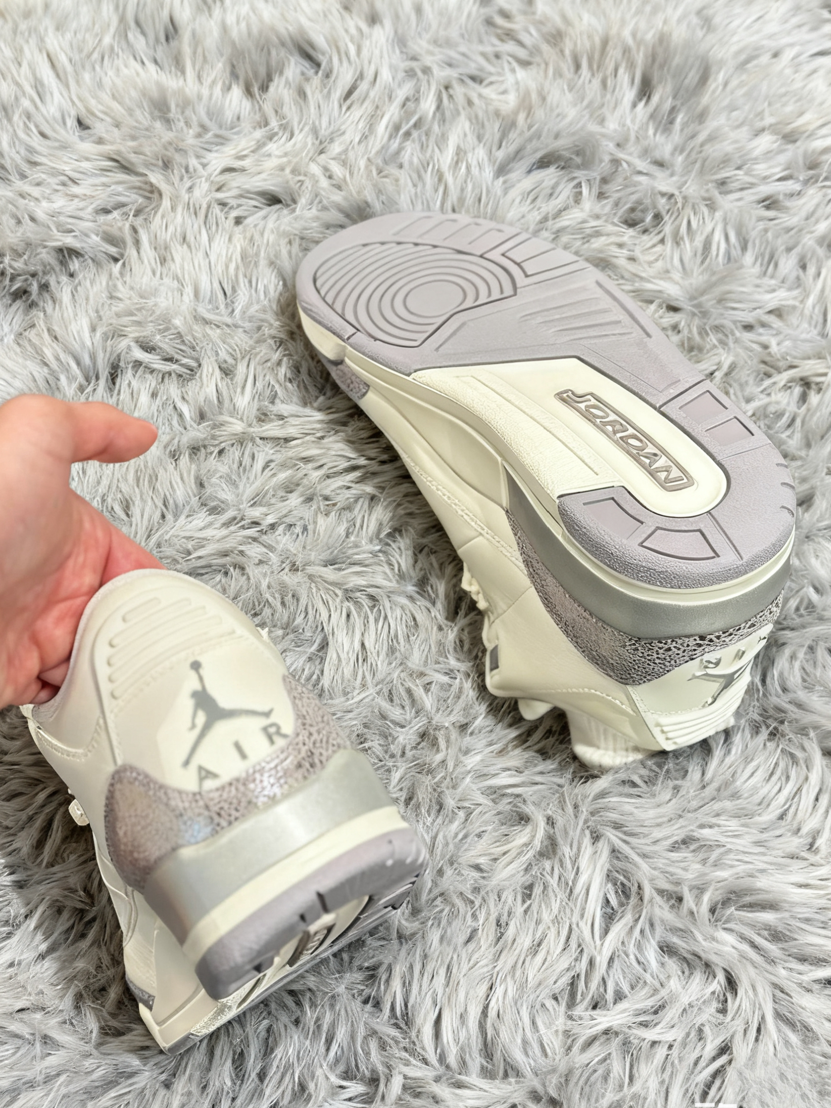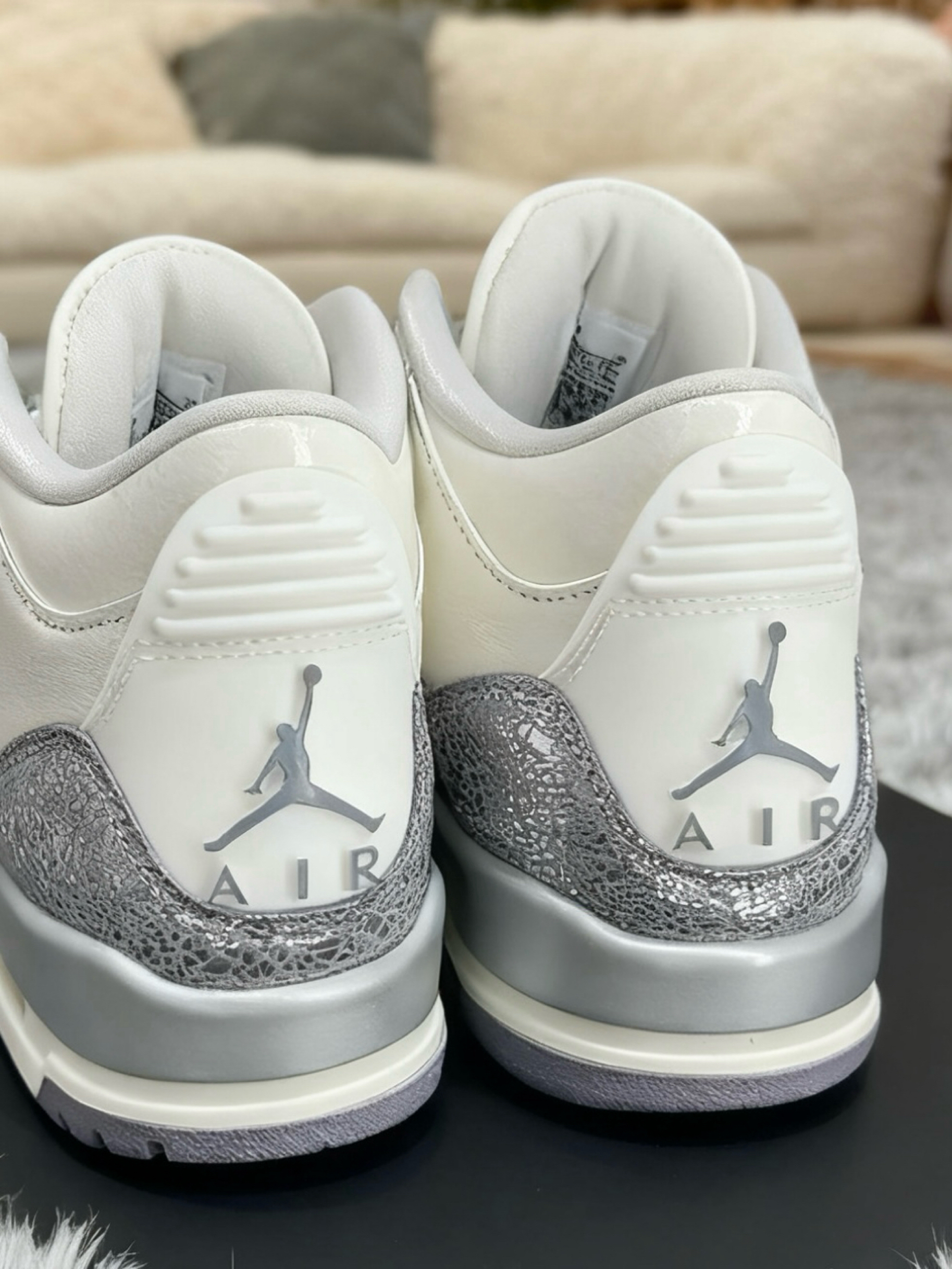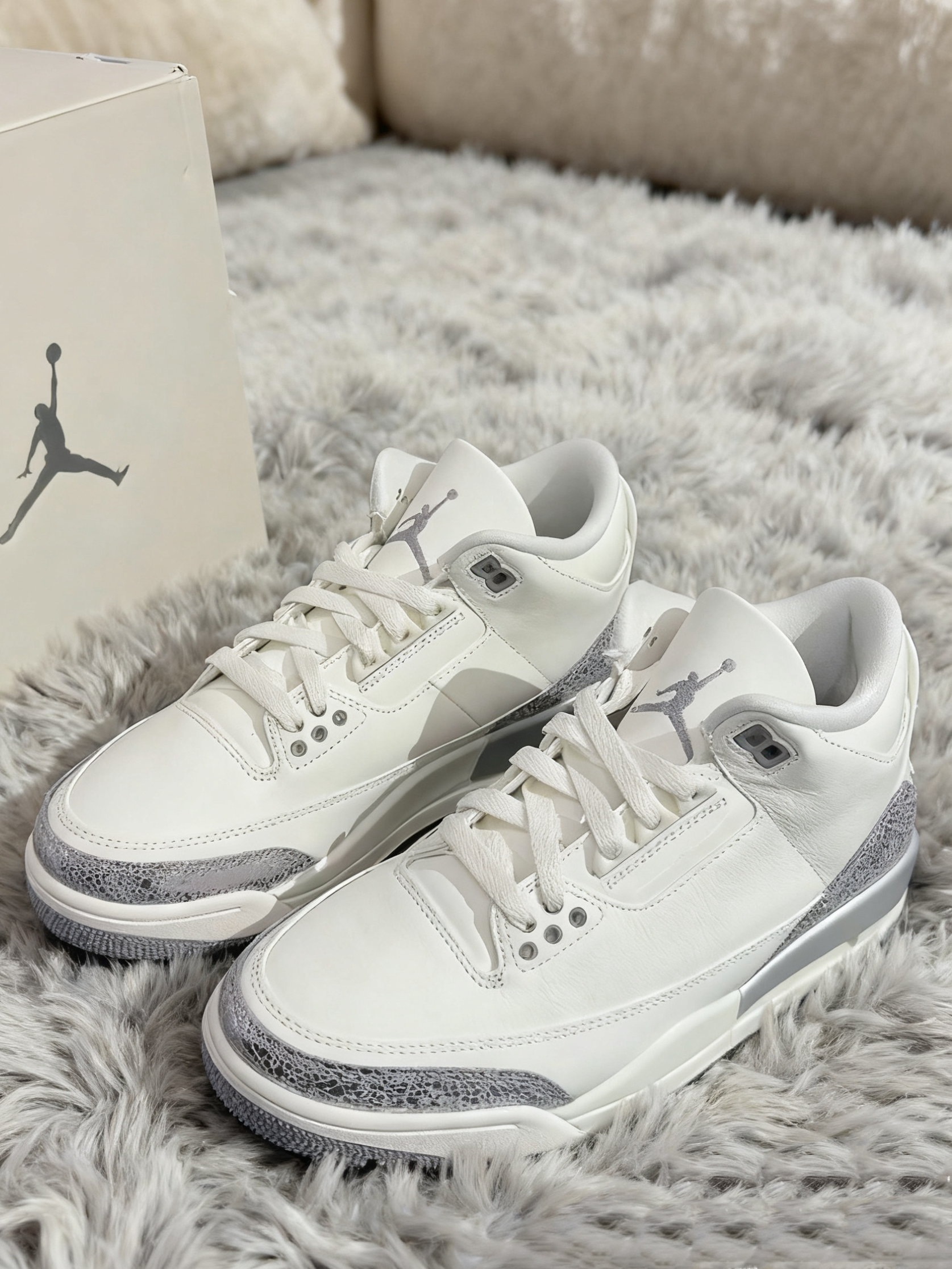 本篇笔记关联了Air Jordan 3 运动休闲鞋 潮流复古抓地支撑缓震合成革圆头 女款/帆白/金属银/水泥灰等商品,为用户提供真实的使用体验和购买参考。