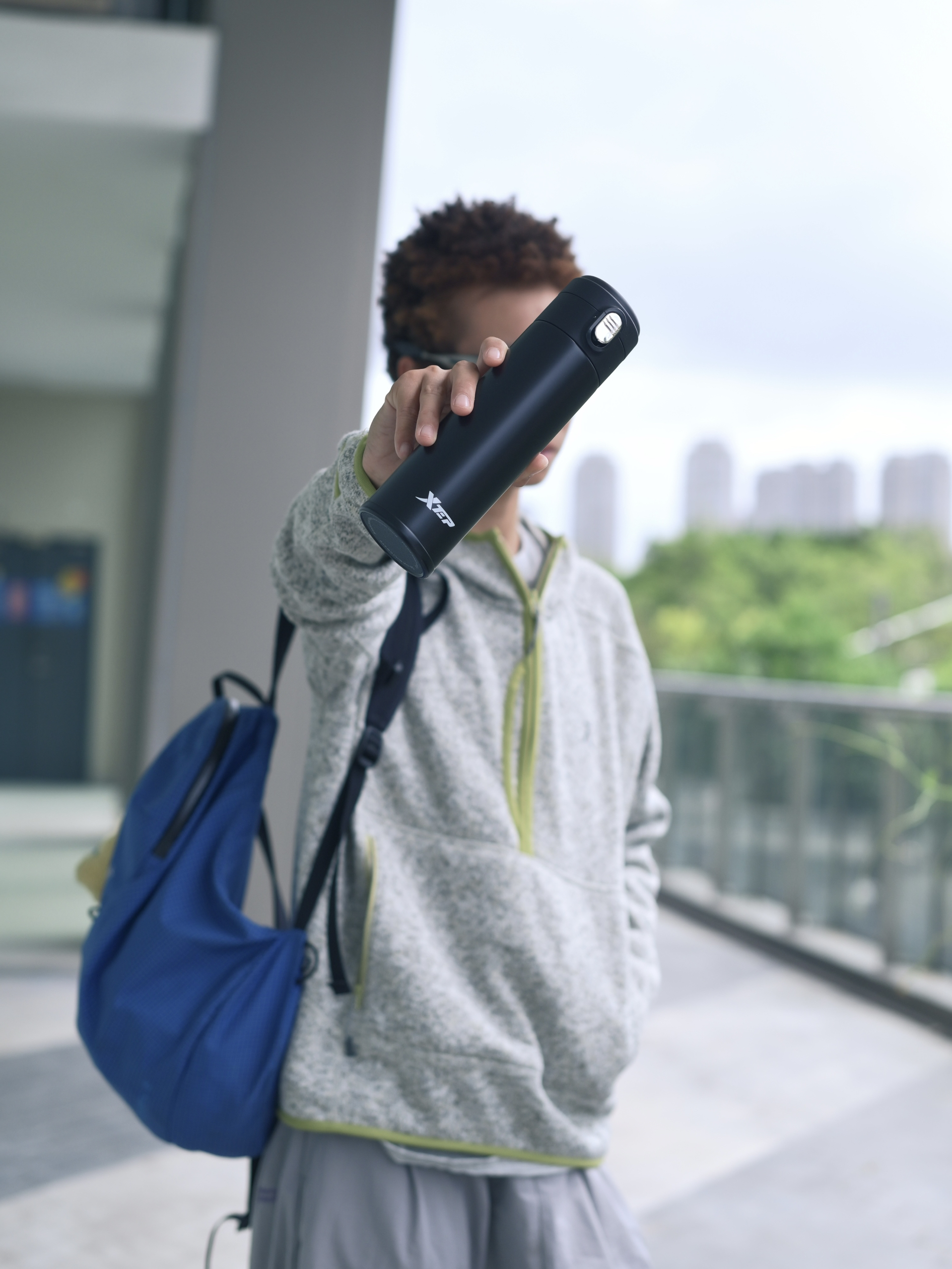 欢迎进入无敌小圆哇子的穿搭分享频道 172CM|55KG 👔:m👖:m|👟:39码 黑色真的不会出错! 秋天出门带上俺的特步保温杯400ml大小刚刚好 出门逛街还是宅家办公 都能轻松拿捏氛围感 背上俺的始祖鸟双肩包 Gogogo出街咯~
