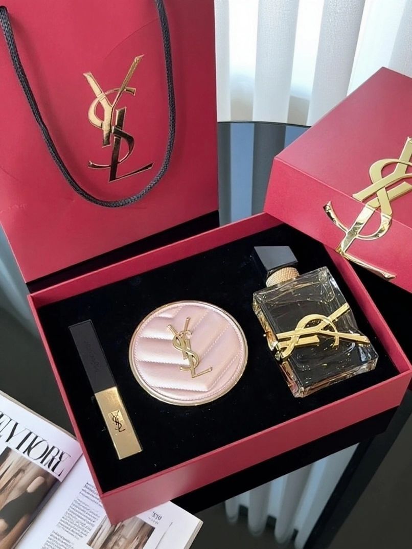 救命!国庆收到 YSLQ 这礼盒直接泪崩! 粉金气垫、小金条口红、香水配齐,红盒配金标 显贵又浪漫,是谁被对象狠狠拿捏了,是我!