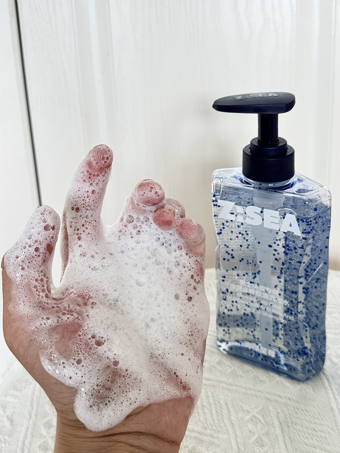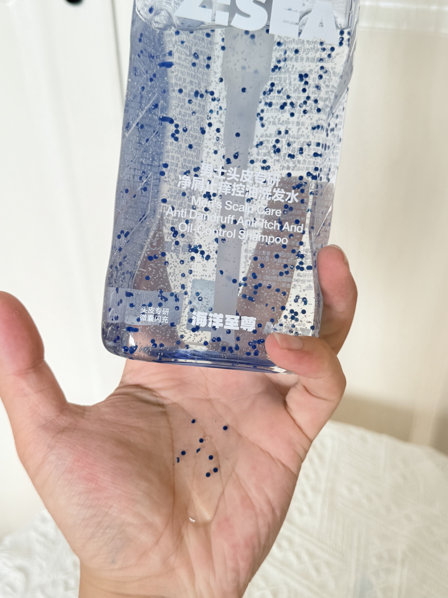 “最近熬夜加班,头发又油头屑又多😫 做功课入了海洋至尊洗发水,透明啫喱质地还有微囊小颗粒~随便搓搓就有绵密泡沫,上头肤感软乎乎很舒服!! 洗完头发清爽蓬松,三天不洗也还行~兄弟们可以试试呀🥳