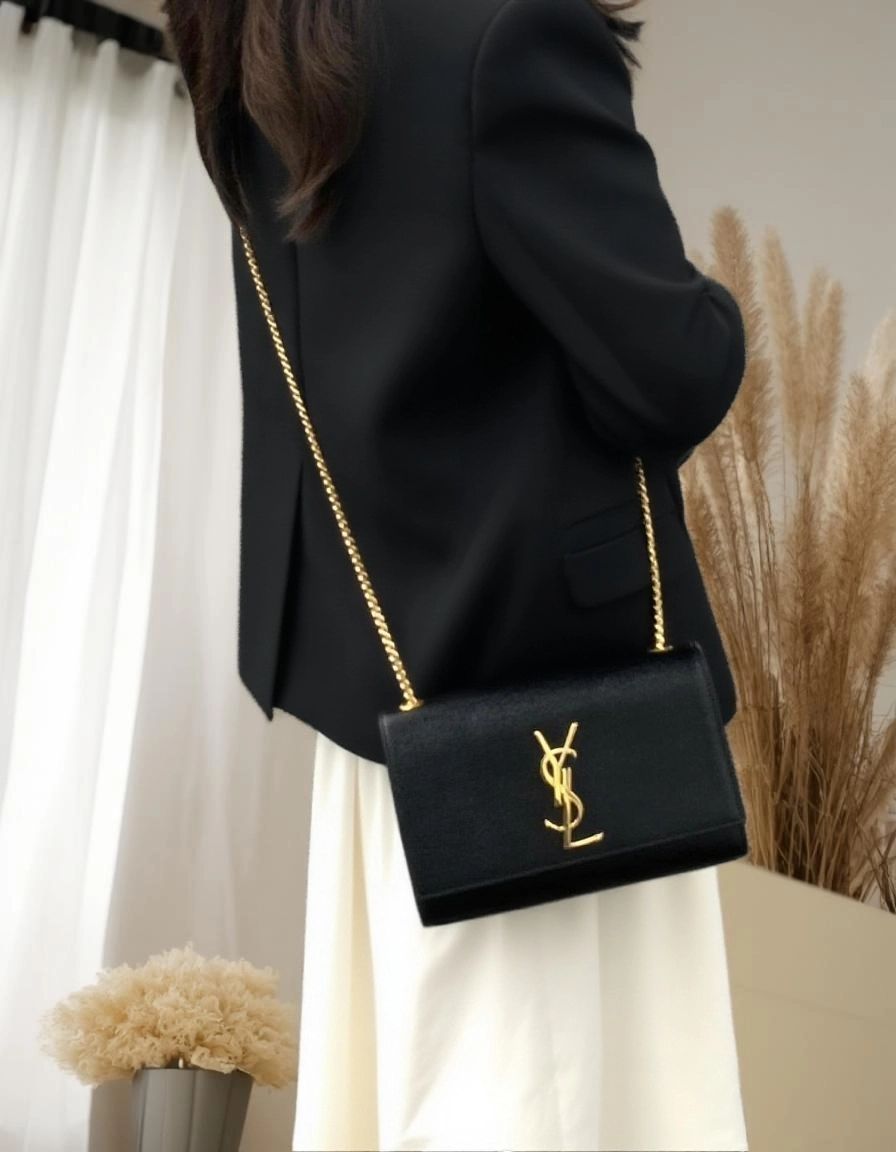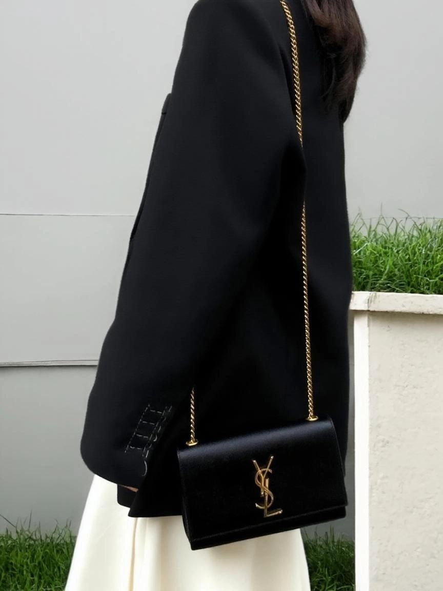 终于入手YSL 黑金链条包啦✨ 皮质细腻有质感,链条背起来不勒肩。日常搭裙装、西装都很绝,背上瞬间提升气场,实用性也在线,小物件都能装下,是会一直爱的经典款~