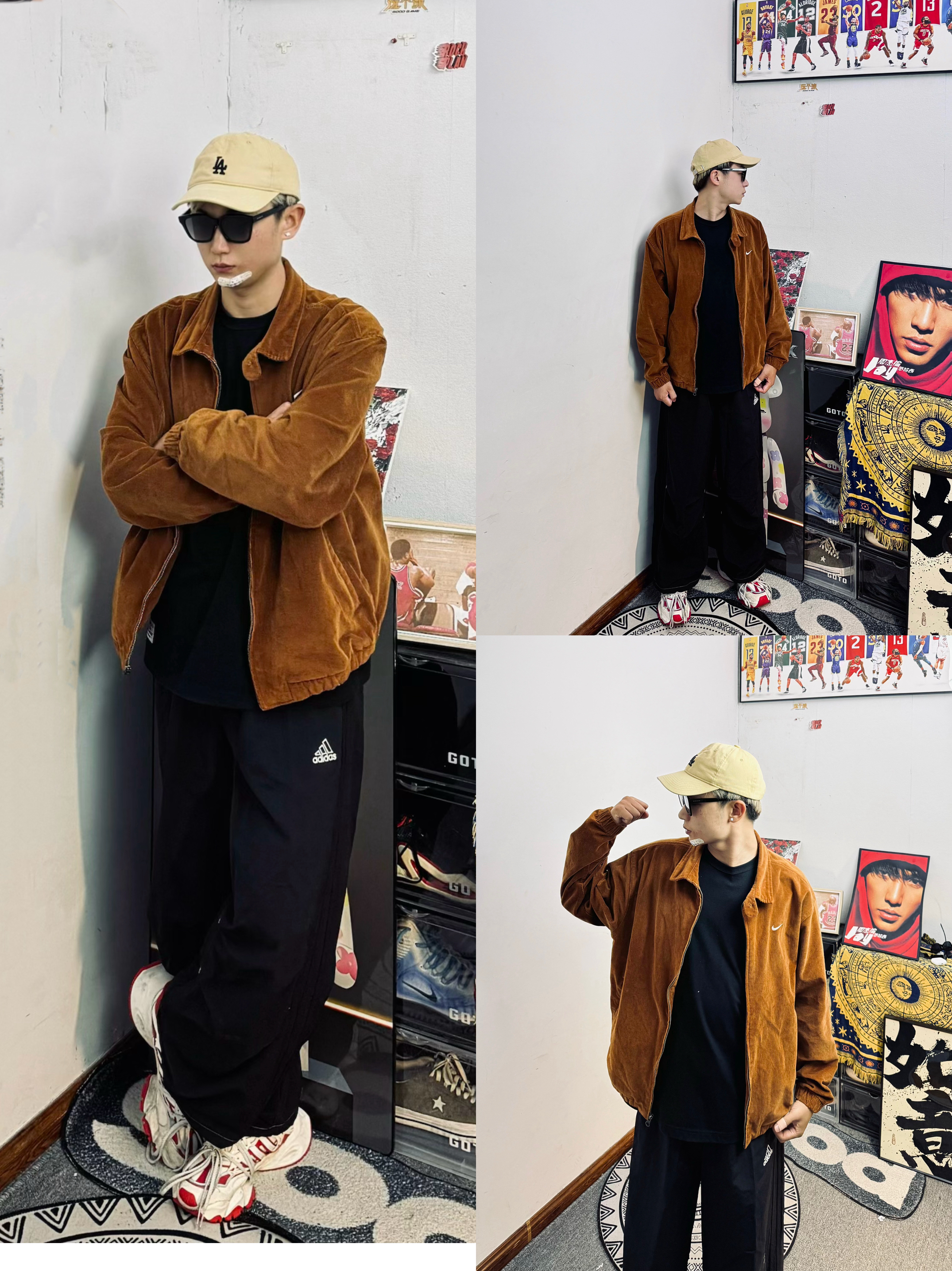 冰美式今日六套秋季真实穿搭分享🌟 — 第1️⃣套 藏青条纹外套配卡其阔腿裤 脚踩紫色🩷运动鞋 卡其色棒球帽一戴 复古休闲还显利落 秋日出街舒服又有风格💯 — 第2️⃣套 黑色条纹运动套装 经典黑白配 宽松版型穿着自在 日常买菜遛弯或者轻度运动 都能轻松驾驭💞 — 第3️⃣套 深灰条纹长袖搭黑色阔腿运动裤 白色棒球帽和白色运动鞋一呼应 简单大方 秋天穿起来舒适又干练📍 — 第4️⃣套 黑色连帽卫...