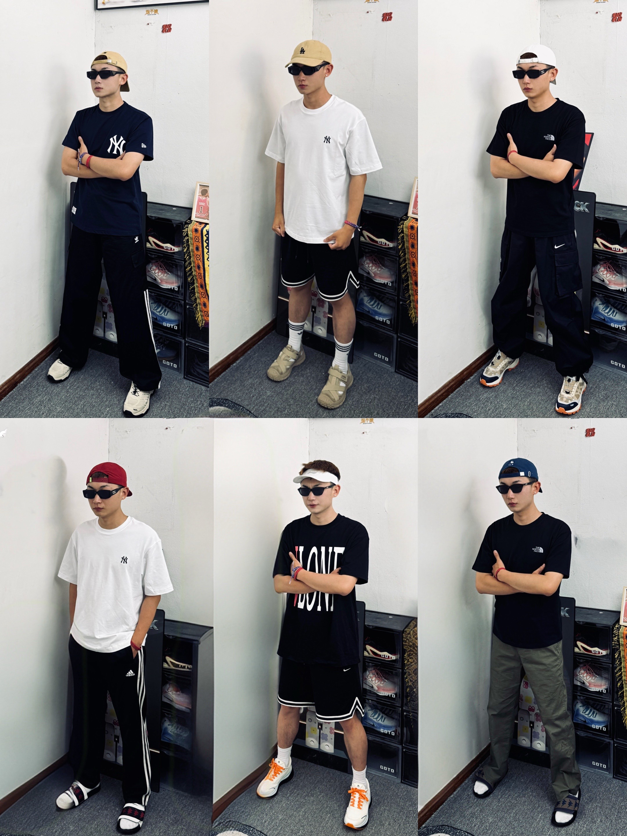 第一套:美式街头感拉满 藏青字母T配黑阔腿运动裤💚 宽松度刚好不拖沓 卡其帽一戴美式那味儿就有了 鞋子白红配色点睛 日常出街逛潮店 回头率这块拿捏住 — 第二套:休闲运动懒人搭🩷 白色小标T简约不单调 配黑运动短裤利落清爽 米色老爹鞋踩上去软乎乎 周末打球 遛弯穿它 舒服还显活力 — 第三套:工装机能风get 黑色户外➕T多袋工装裤🧡 口袋多到能装小物件 复古跑鞋增加层次感 通勤赶地铁或city...