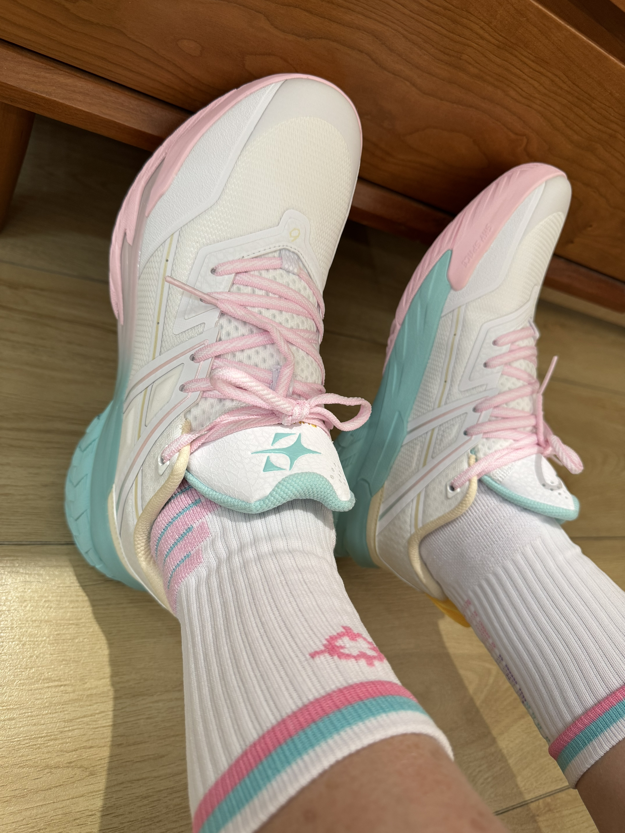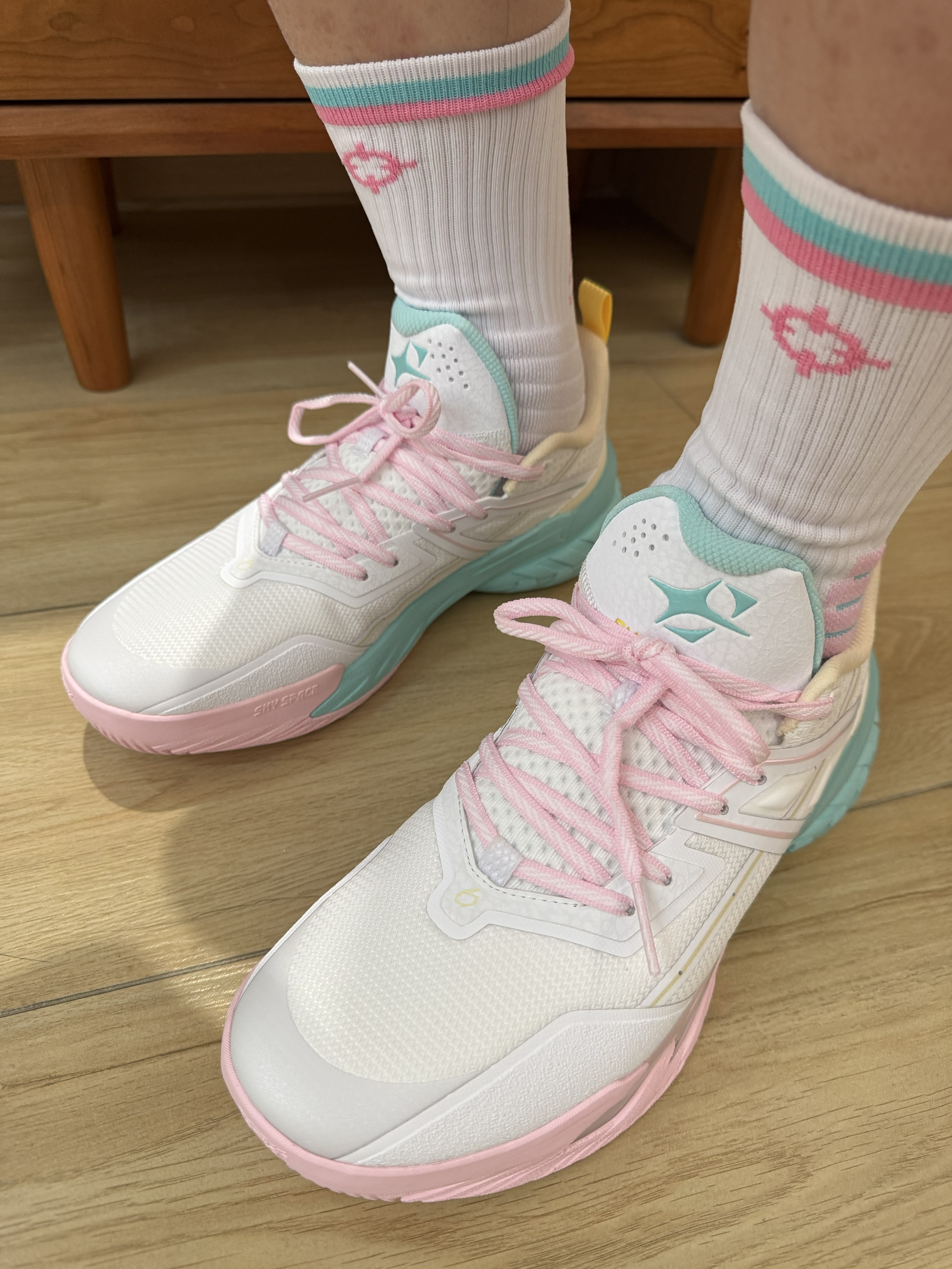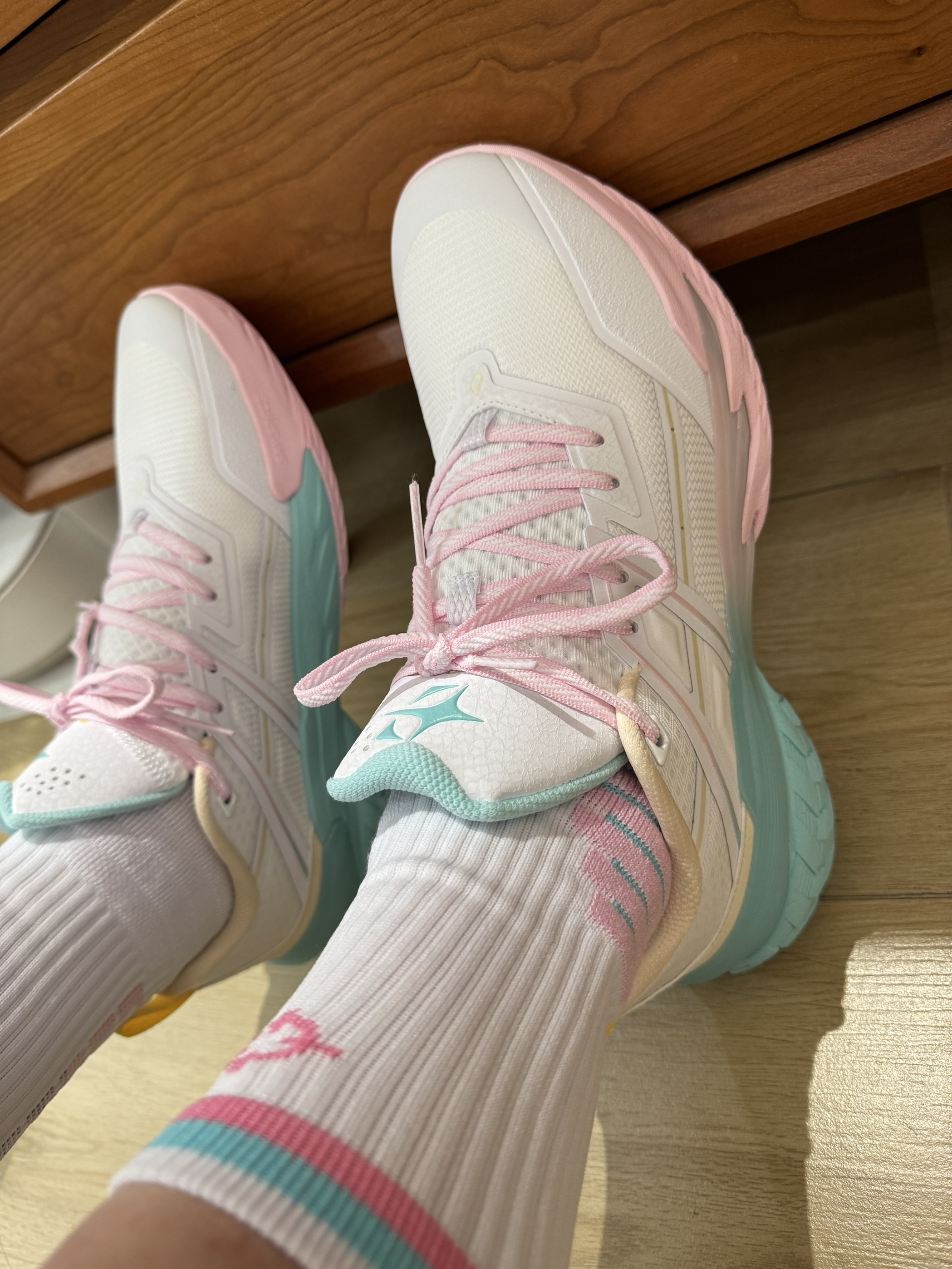 #球鞋避坑指南 #空域6 #球鞋真心话 #球鞋坦白局 #这双鞋子很哇塞 之前上脚空域5,给的评价可以打上9分高分 这次这双空域6,除了配色和大底 延续了空域5的高颜值和耐磨度之外 脚感上差距明显不如空域5 先说配色:西海岸我更喜欢叫它棉花糖 对标李宁的西海岸和棉花糖 安踏在球鞋命名这块着实有点迷 整体清爽亮色,搭配这双准者袜,看着协调 上脚包裹可以,从鞋子的介绍来看前掌加宽5mm 致命伤却转...