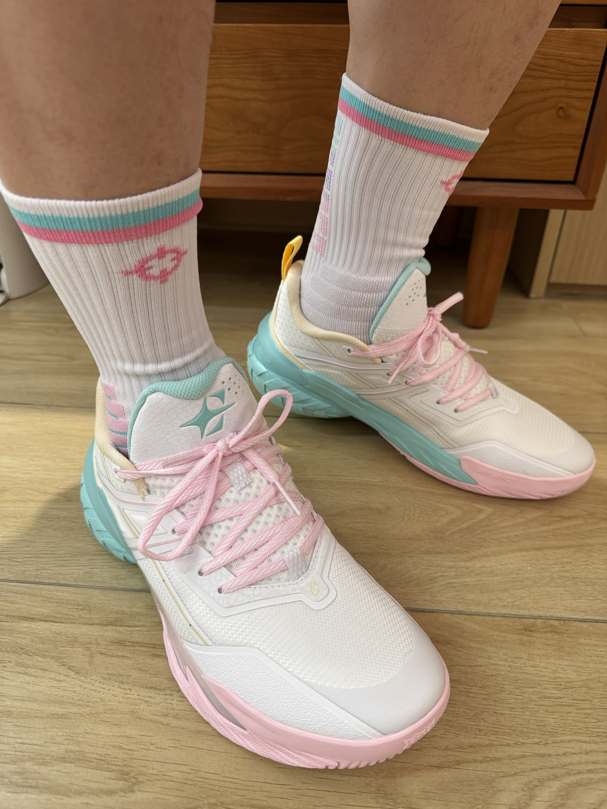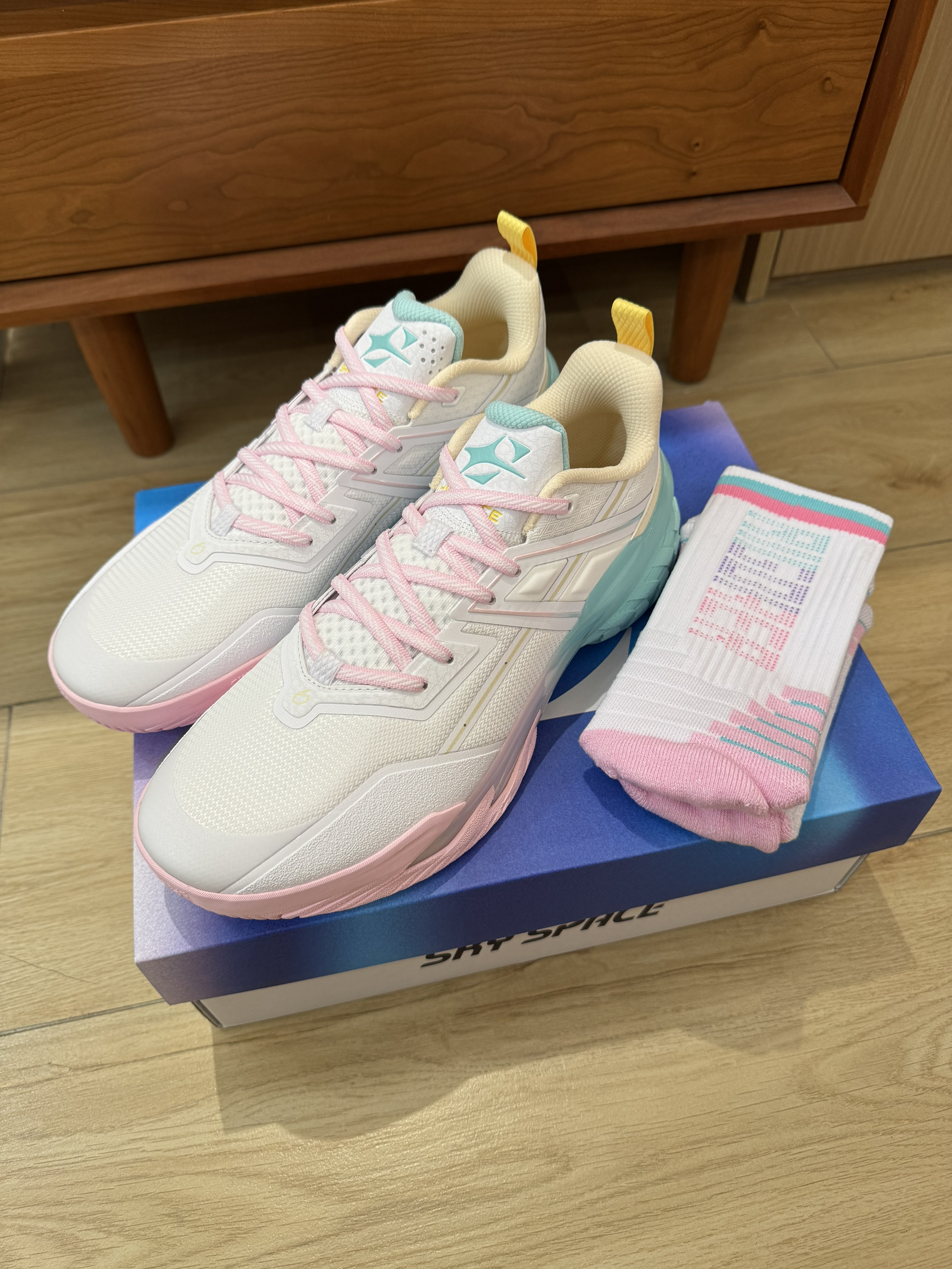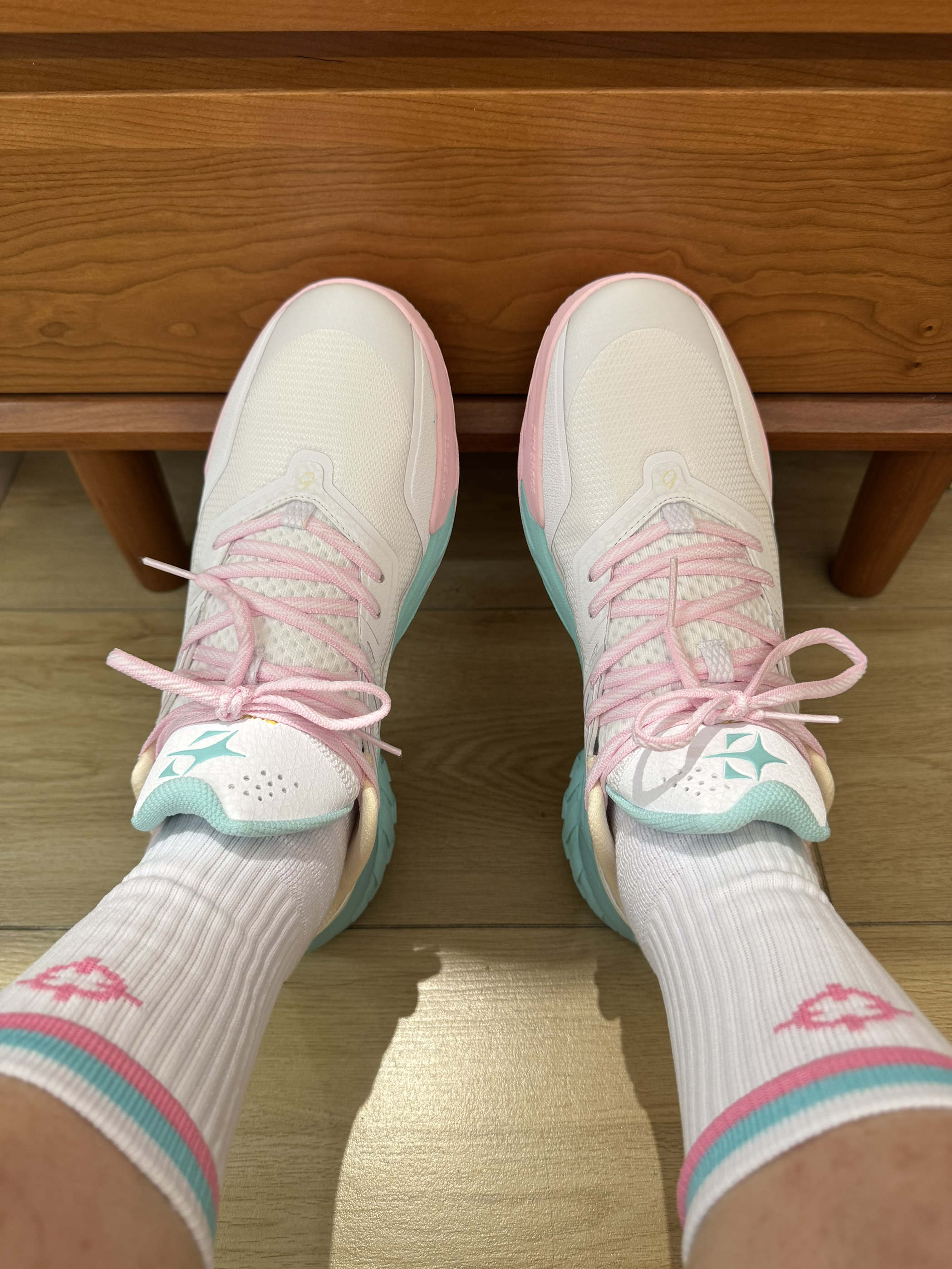 #球鞋避坑指南 #空域6 #球鞋真心话 #球鞋坦白局 #这双鞋子很哇塞 之前上脚空域5,给的评价可以打上9分高分 这次这双空域6,除了配色和大底 延续了空域5的高颜值和耐磨度之外 脚感上差距明显不如空域5 先说配色:西海岸我更喜欢叫它棉花糖 对标李宁的西海岸和棉花糖 安踏在球鞋命名这块着实有点迷 整体清爽亮色,搭配这双准者袜,看着协调 上脚包裹可以,从鞋子的介绍来看前掌加宽5mm 致命伤却转...