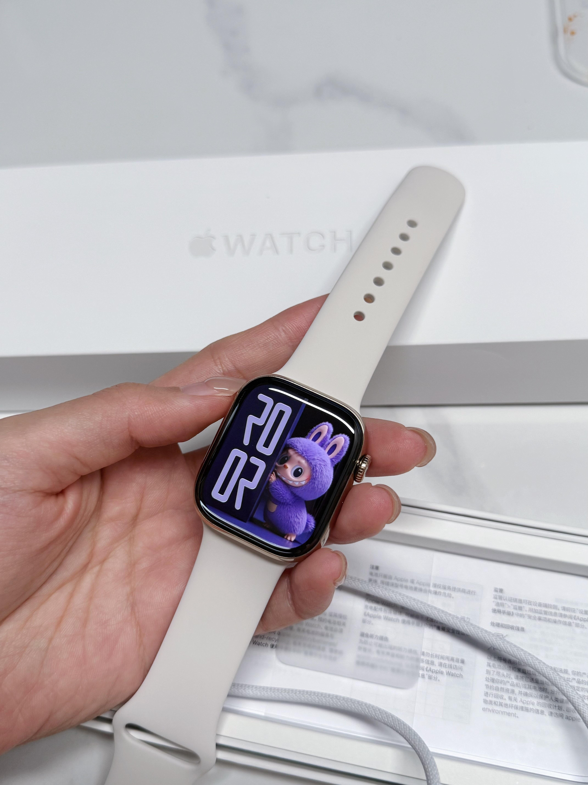 家人们,Apple Watch Series 11太香啦!戴在手腕上像个精致小配饰,白色表带搭金色边框,简约又高级。 运动时能测心率、记步数,连瑜伽动作都能识别~平时收个信息、回个微信,抬抬手就搞定,不用总掏手机。续航也很顶,充一次电用两天没问题。现在出门都离不开它,简直是手腕上的小助手!
