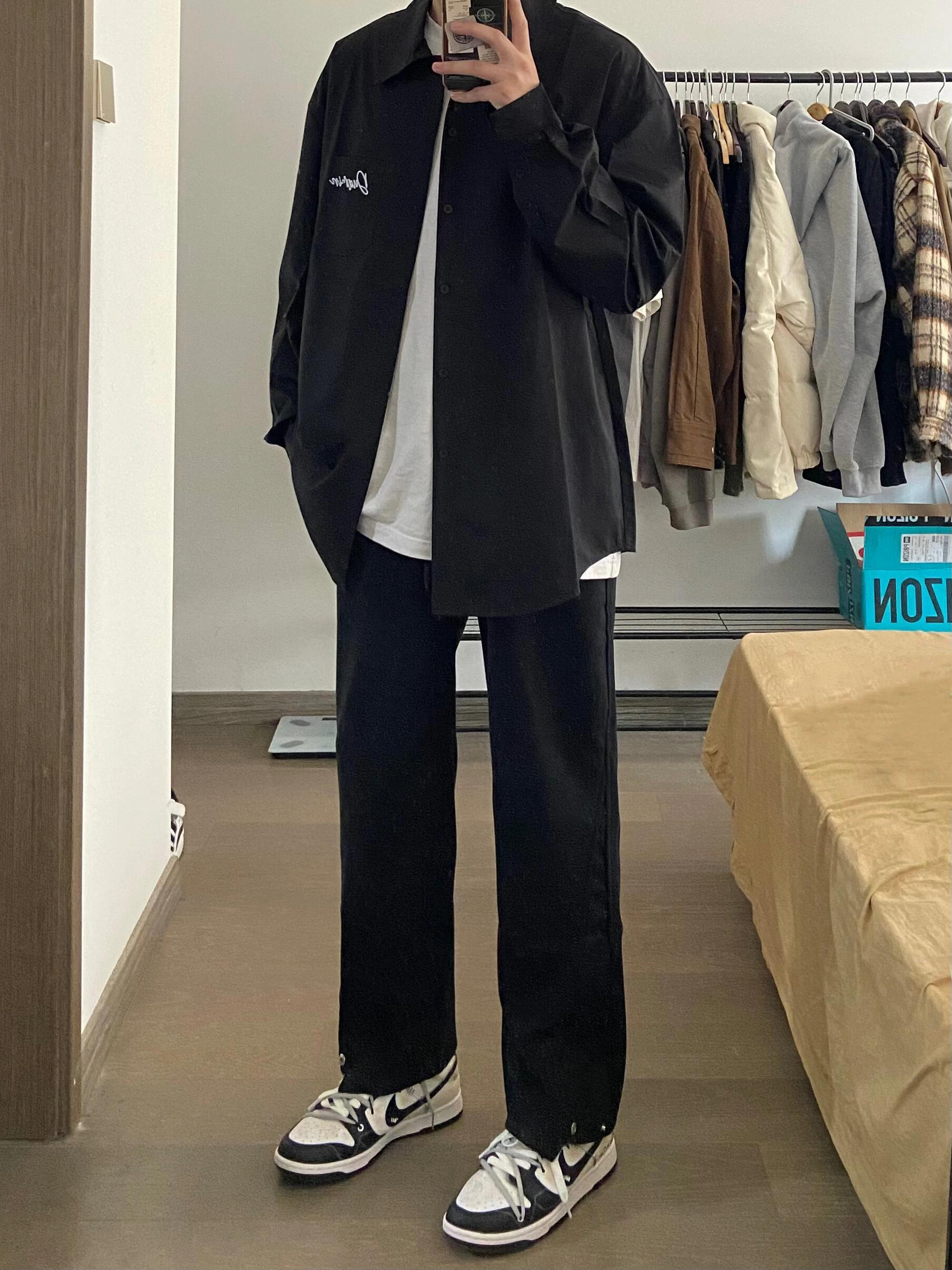 最近新入的这件黑色衬衫,真的太好搭了~简约的黑色调,加上胸口精致的白色字母刺绣,低调又有设计感。 面料软软滑滑的,穿在身上超舒服,而且垂感特别好,显得人很精神。宽松的版型对各种身材都友好,单穿酷帅,内搭温柔,外搭还能当外套,一衣多穿太香了。