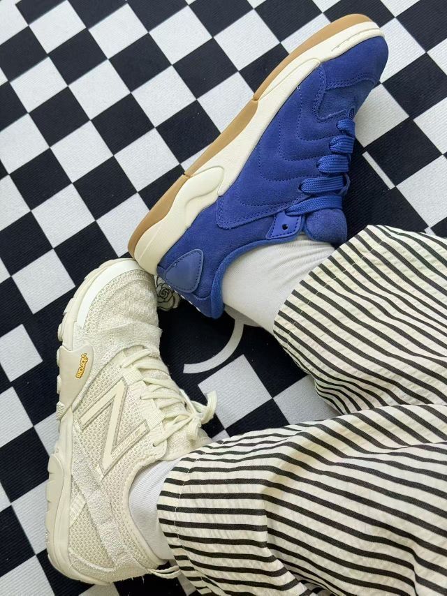 关于这两双鞋的真实体验 先说说那只米白色的New Balance,穿了快一个月,日常通勤暴走的时候,脚感确实挺稳,Vibram鞋底抓地也靠谱👍。但它的网布鞋面看着清爽,下雨天就不敢穿了,一湿就很难干,而且麂皮部分打理起来得格外小心,稍微蹭一下就怕留痕迹。 再看那双蓝色的鞋,麂皮材质摸起来很有质感,配色也挺特别的。不过它的鞋型有点挑脚型,我朋友穿就觉得前掌有点挤,我自己穿倒是还好,但长时间穿...