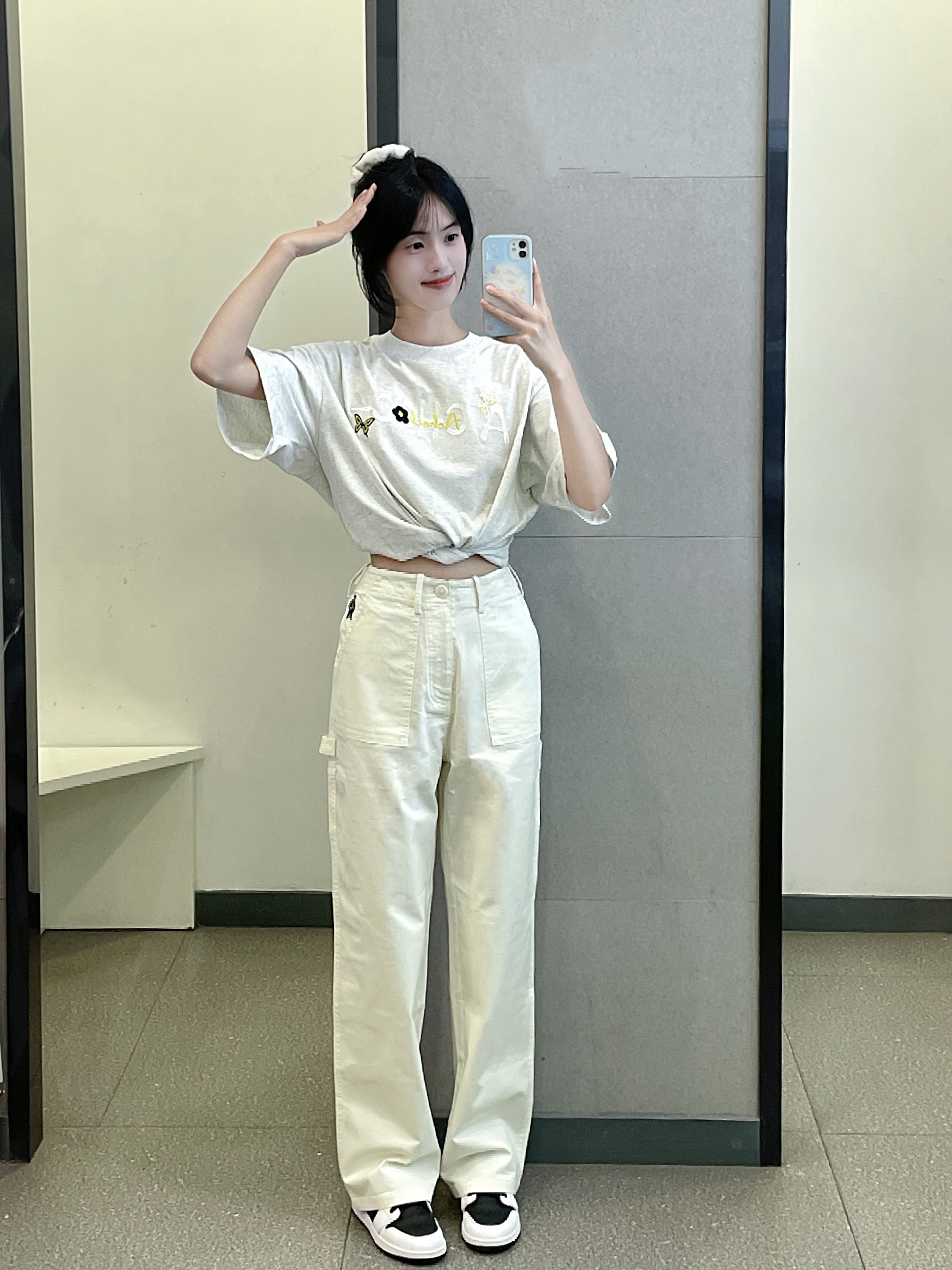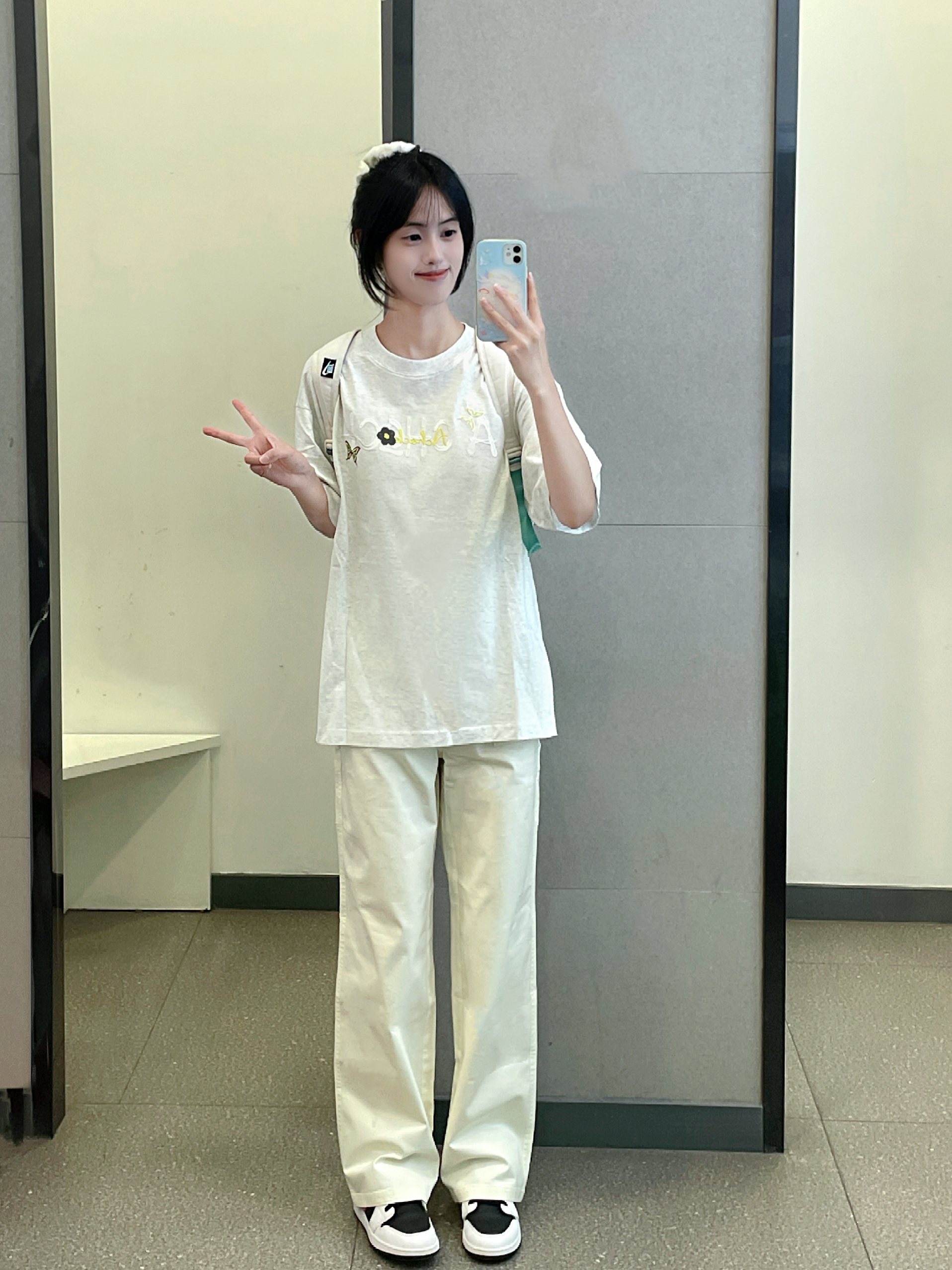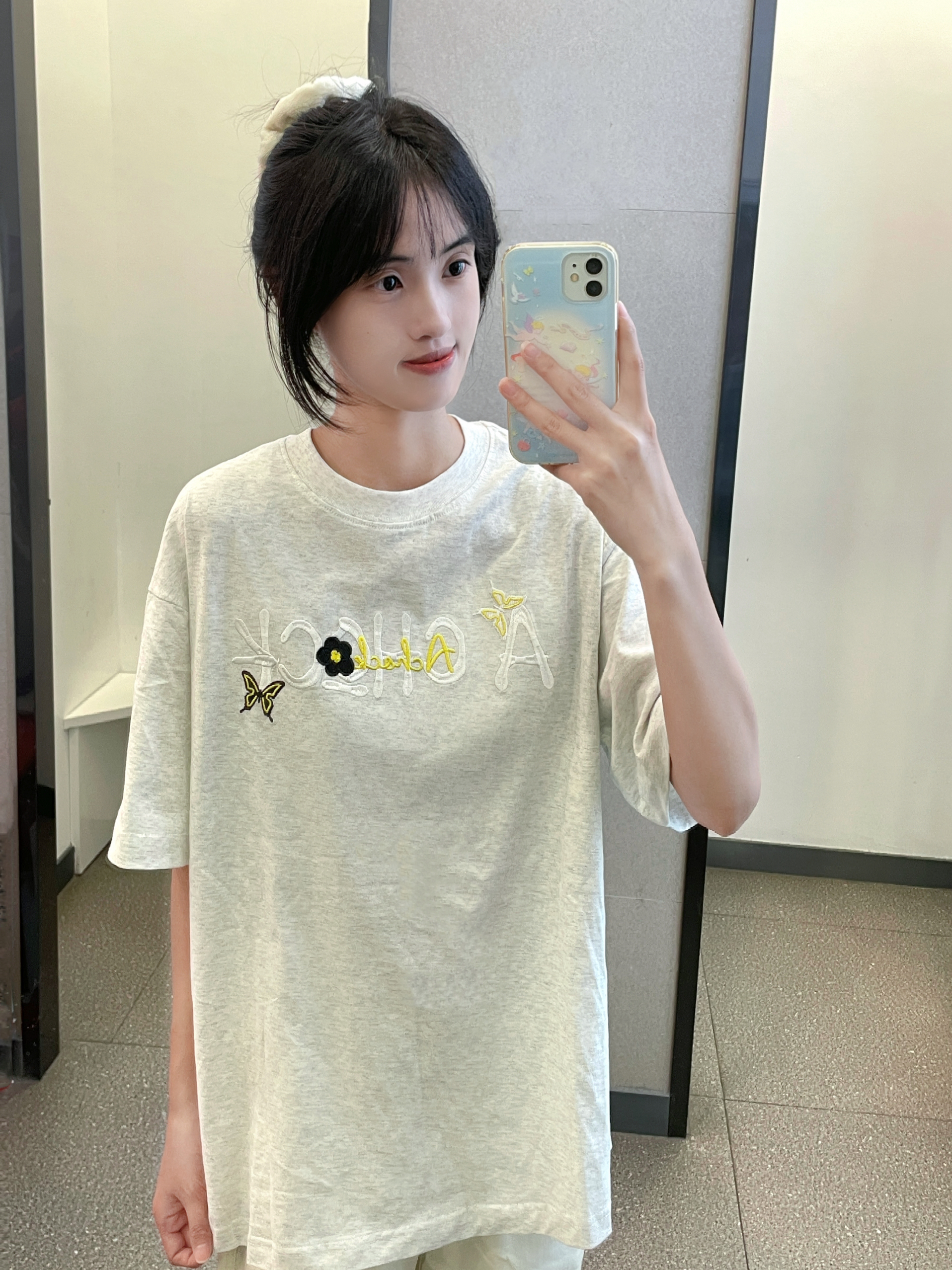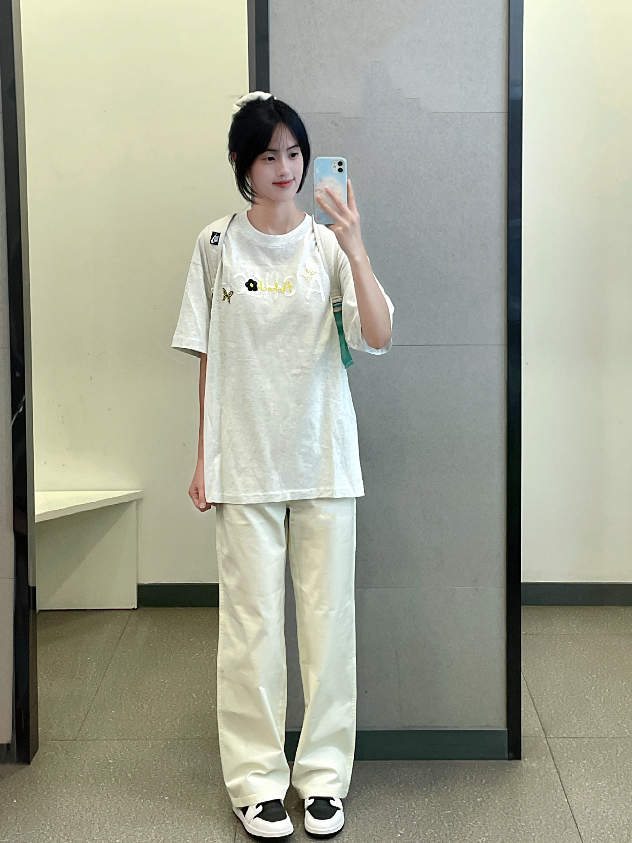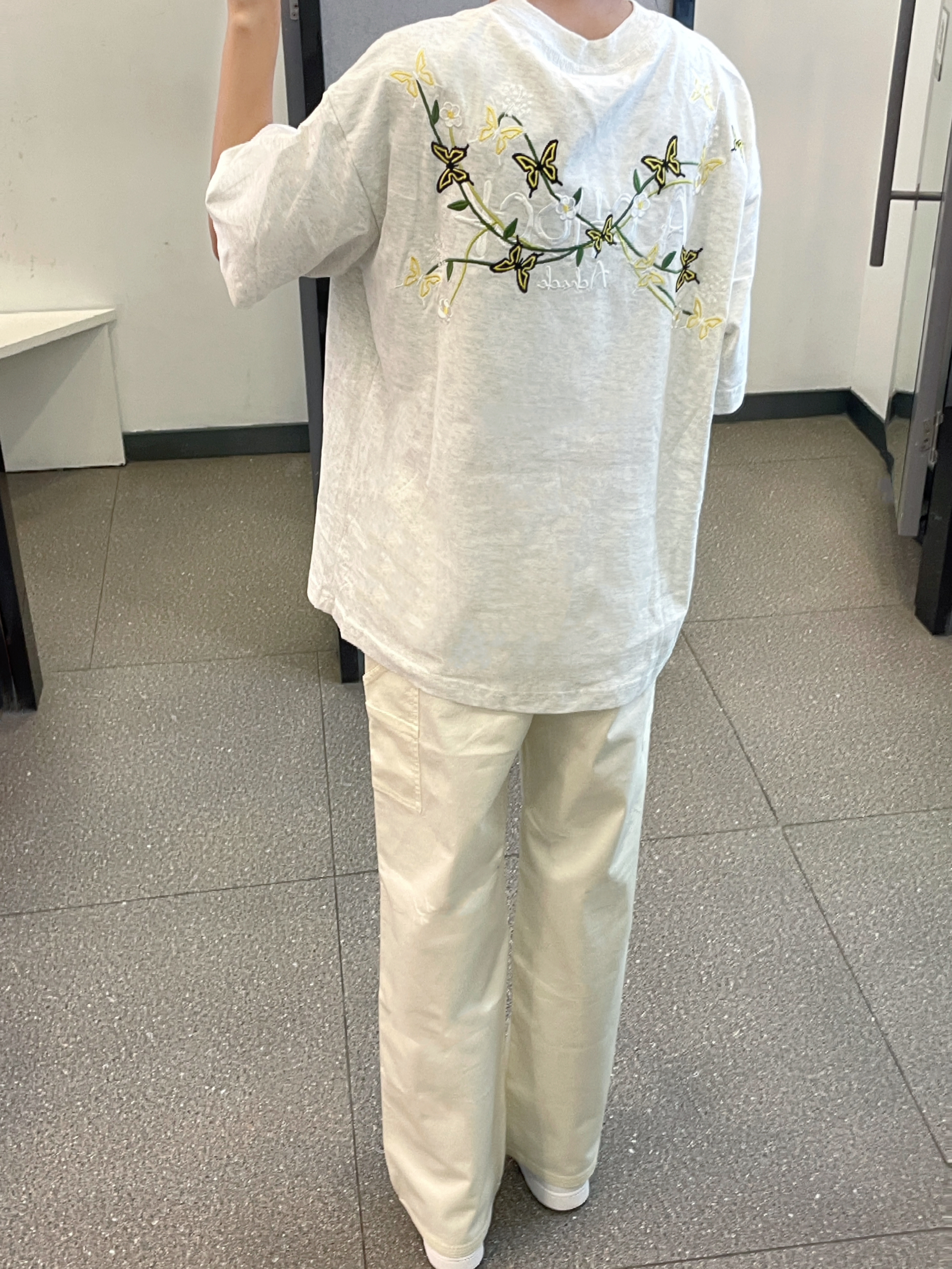 花灰色短袖我真的好爱 这件是花卉刺绣图案的 后背太美啦 衣服质量不错 大小也合身穿上干干净净好夏天 搭配了teenie weenie的白色牛仔裤 好干净