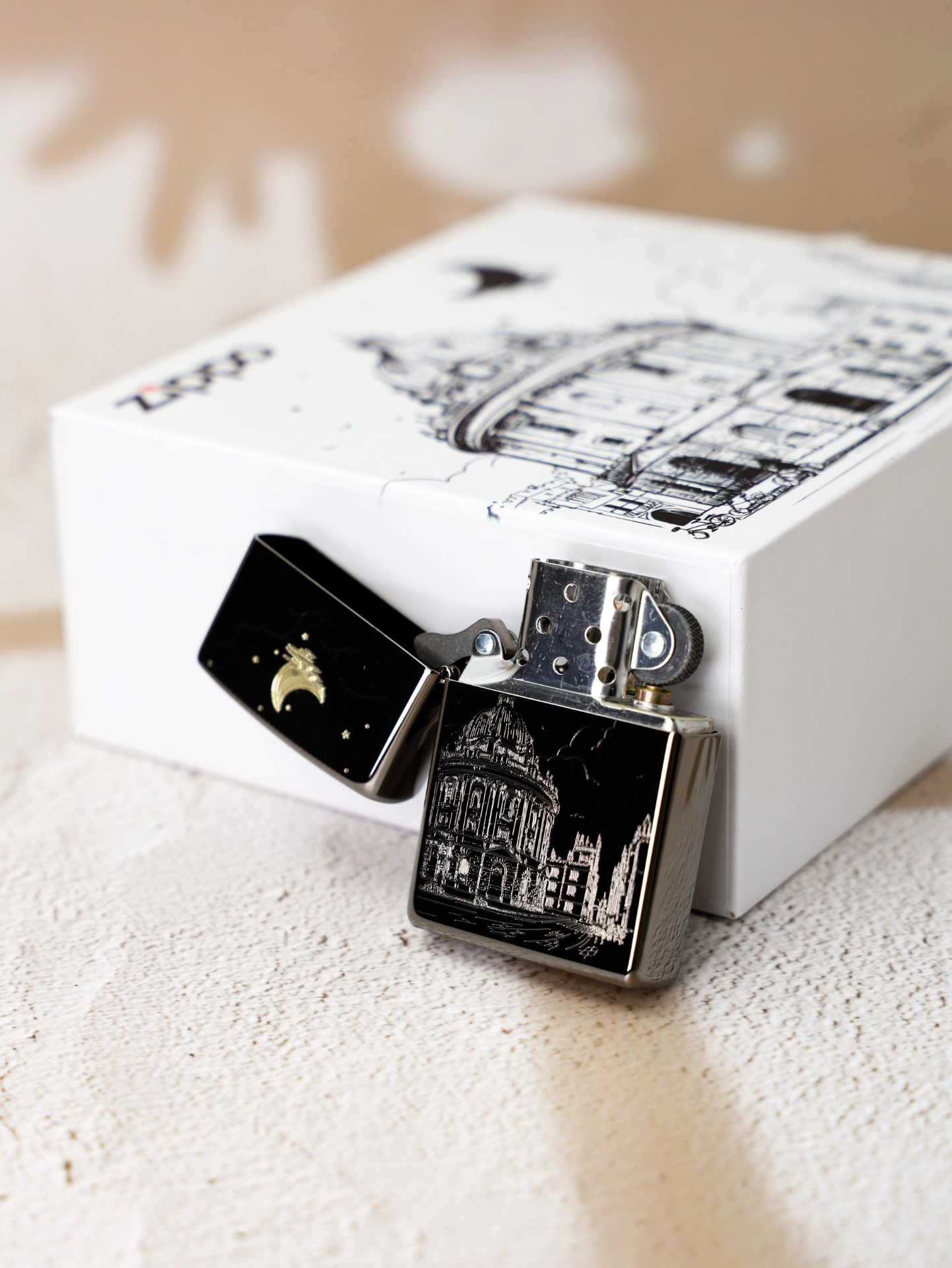 我给对象选礼物总怕踩雷,这次挑了这个打火机,收到后发现包装和图案都很有质感!上面蚀刻的建筑和月亮细节做得细,拿在手里分量刚好~不过煤油机初次用得琢磨下加油方法😂 送男友或者长辈感觉都合适,节日送这个挺有仪式感,女友这次终于夸我会挑啦~