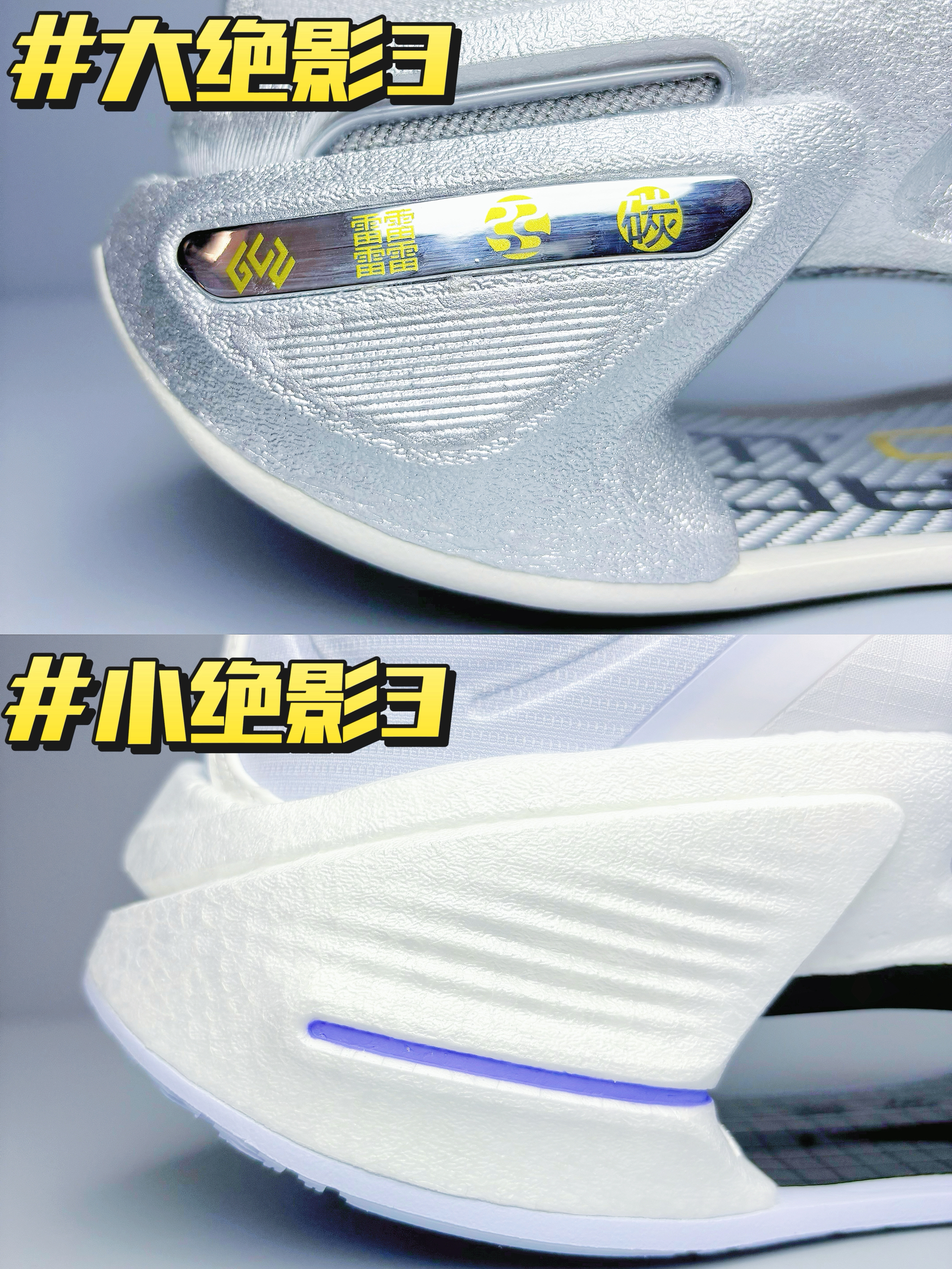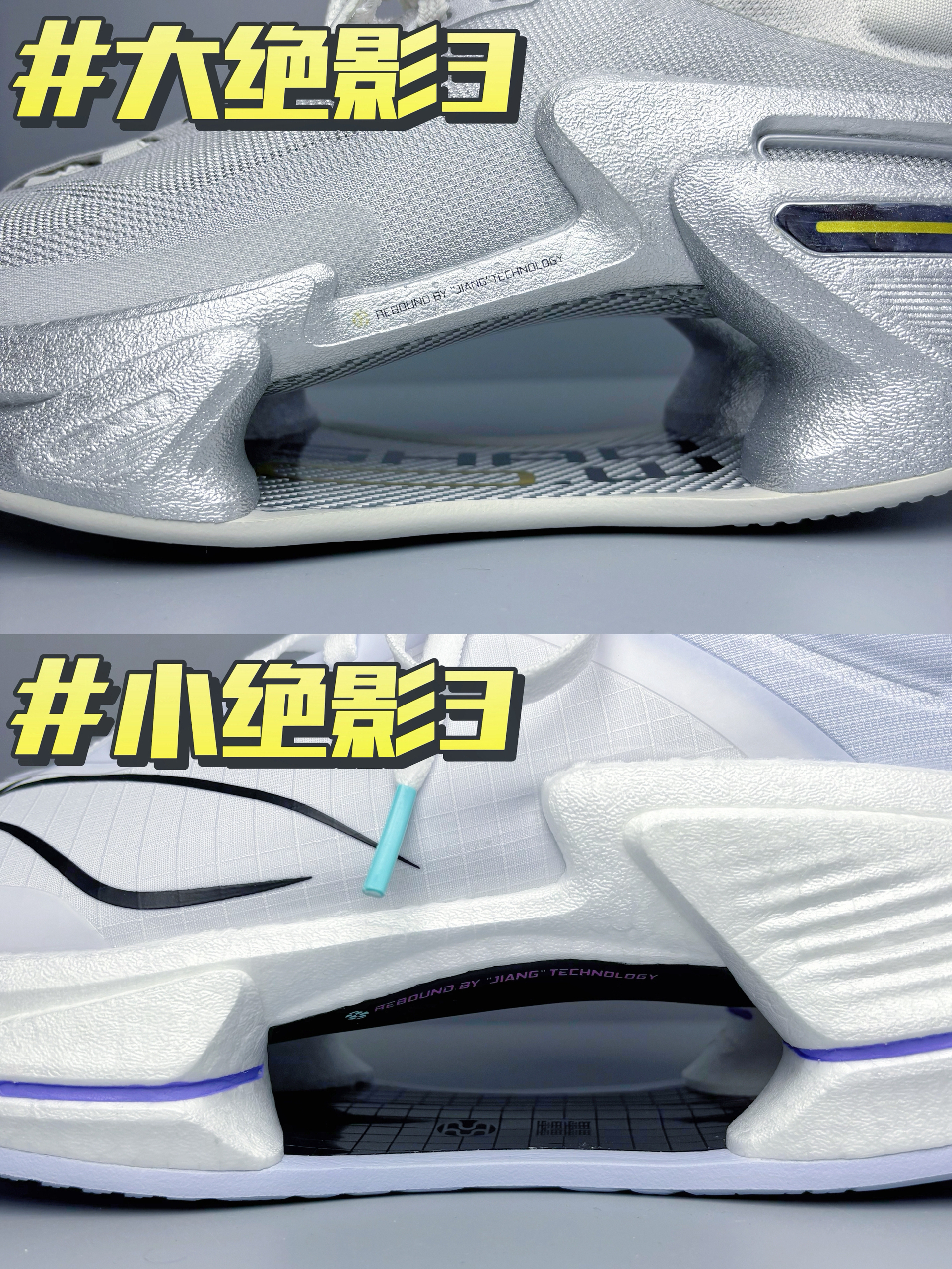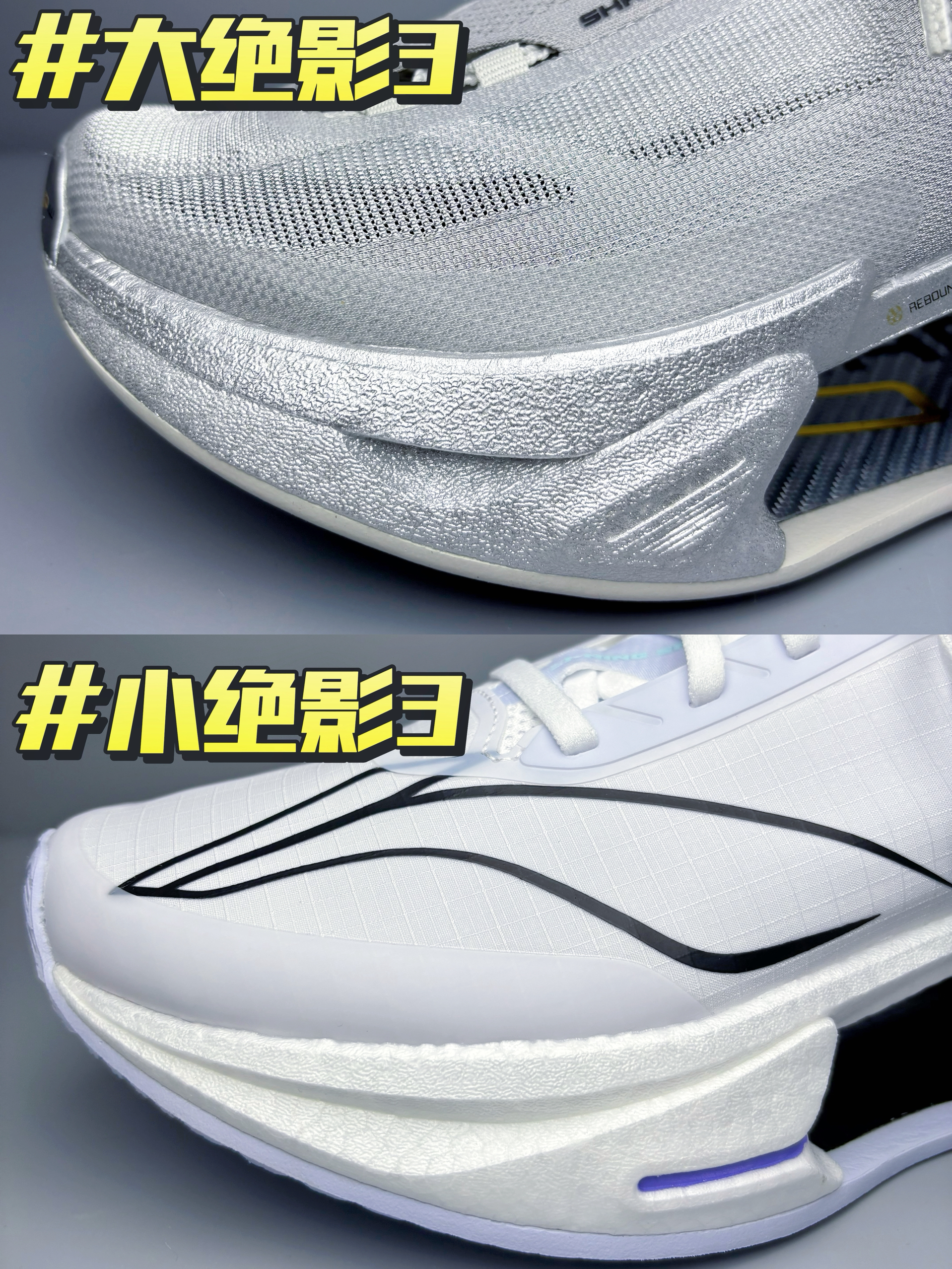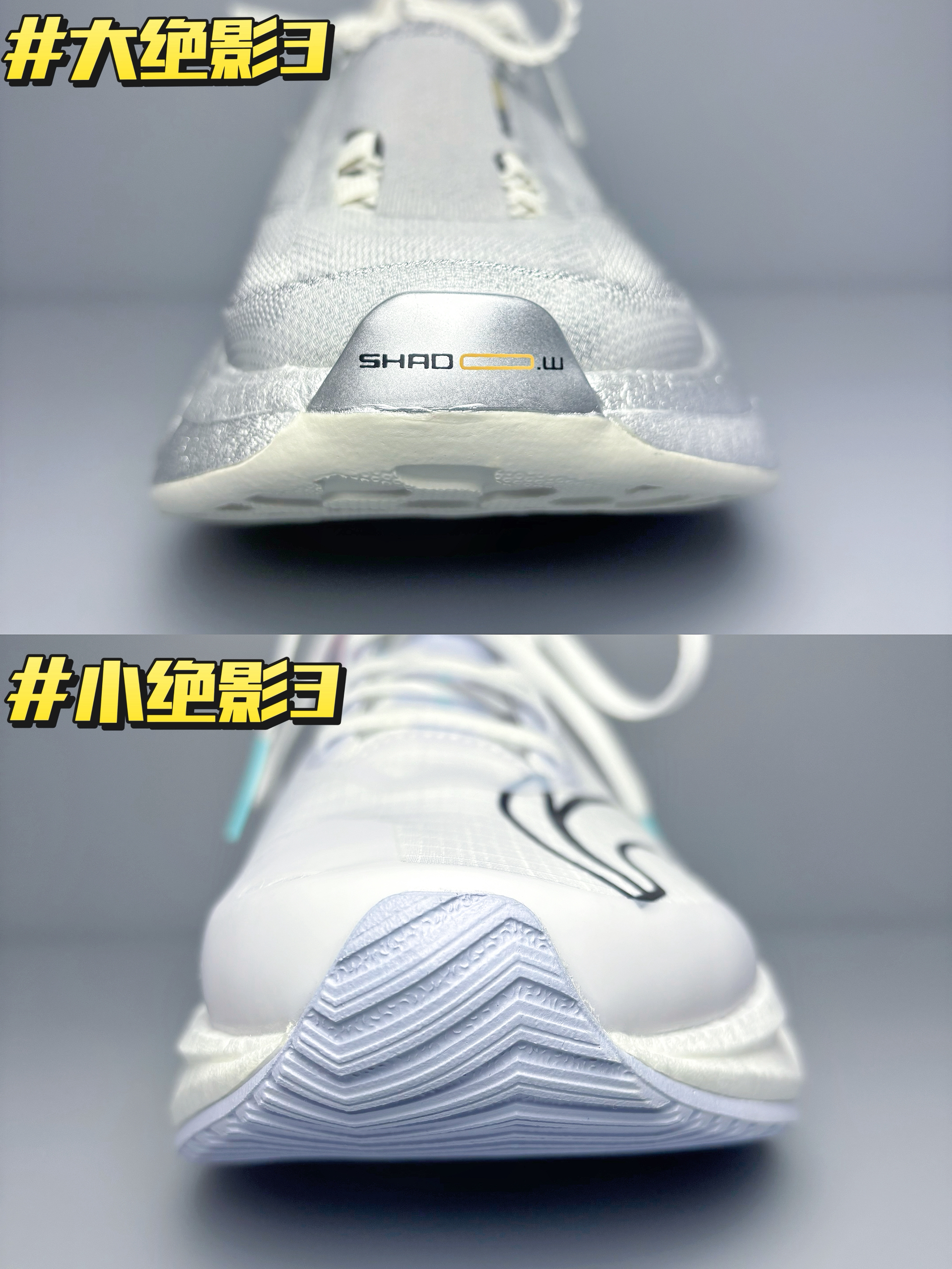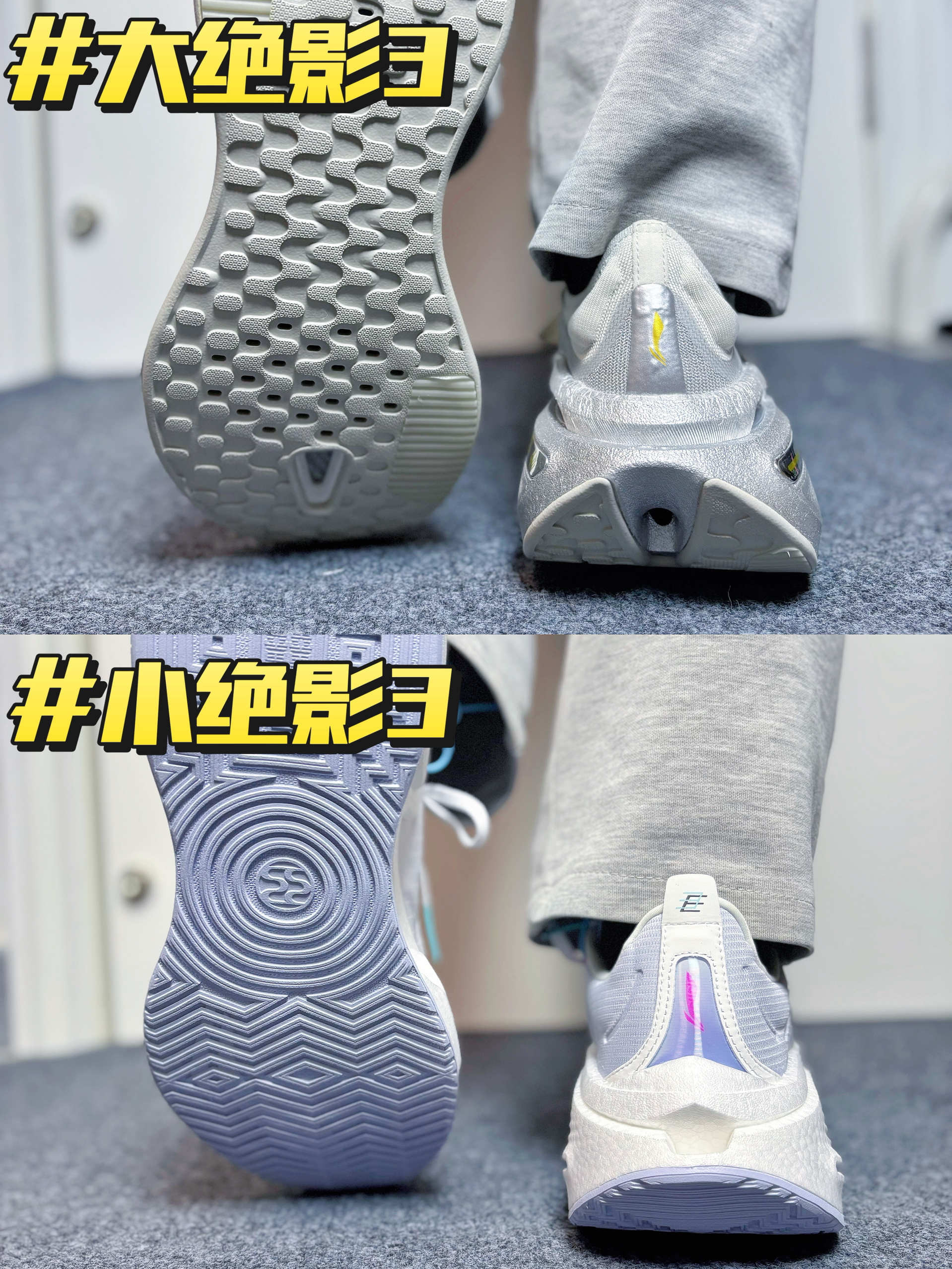 🔥个人上脚脚感体验:大绝影3上脚可以更加明显的感受到弜结构中底给我反馈到回弹效果,走路的时候感觉会有一股向上反弹的力给到脚掌,就像弹簧一样!这是我穿过缓震回弹效果最好的鞋子,没有之一!小绝影3的缓震回弹效果相较则弱了一些~ 🔥颜值方面,大绝影3的颜值个人感觉完全吊打小绝影3,这个深灰配色再加以金属银色小件点缀,机甲风满满,很有速度感,真的泰帅了! 🔥鞋面方面,大绝影3的鞋面使用了䨻丝科技材料,兼具...