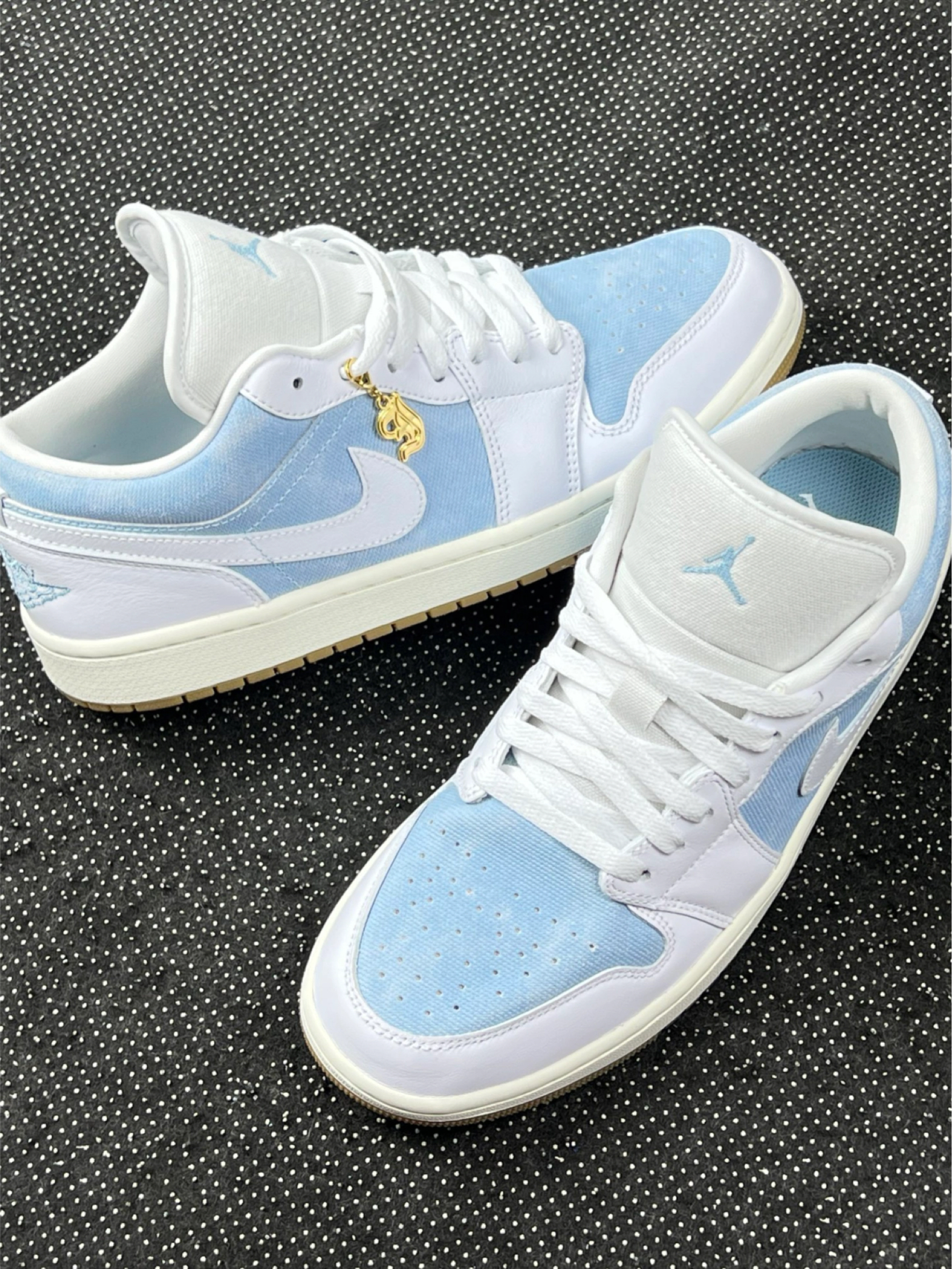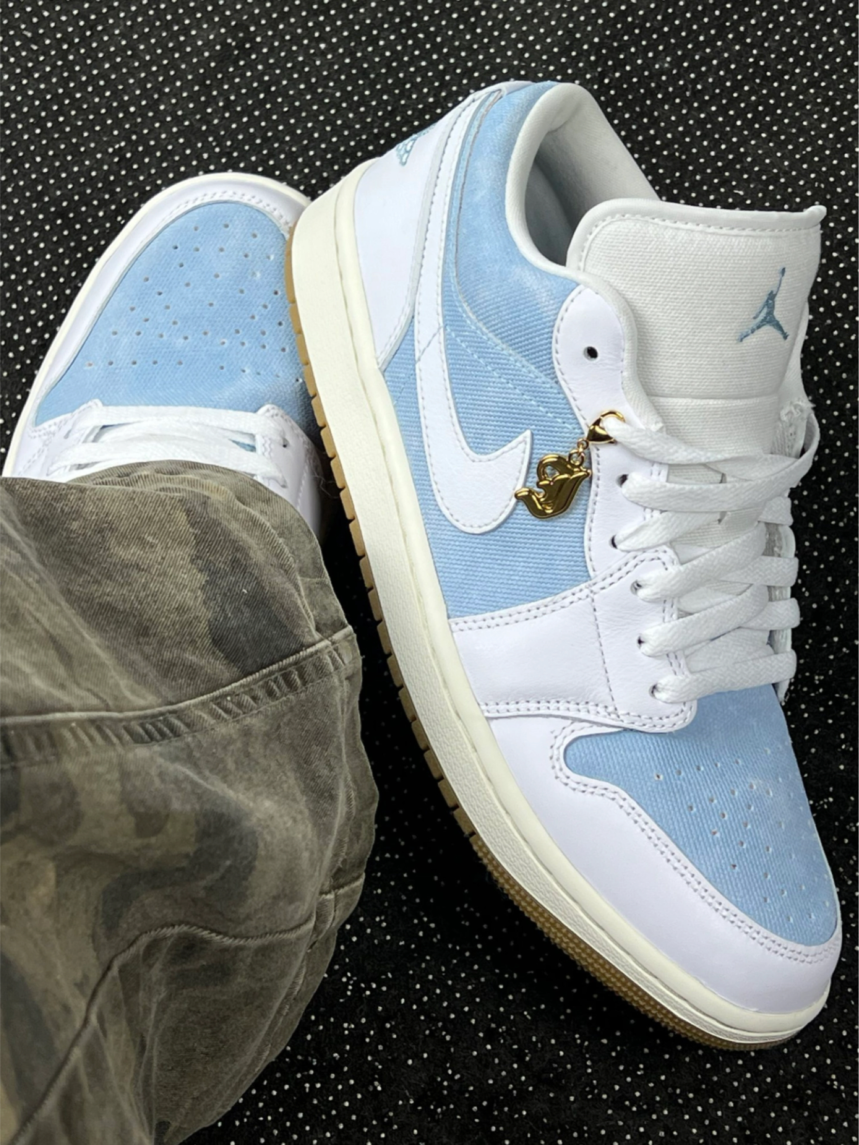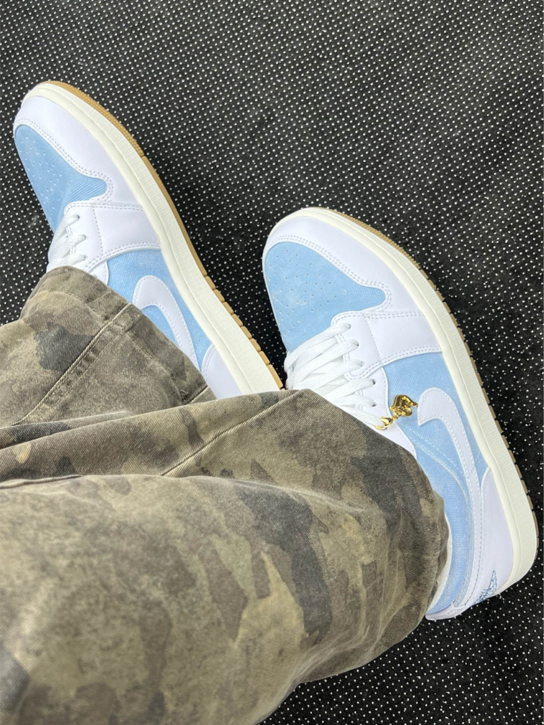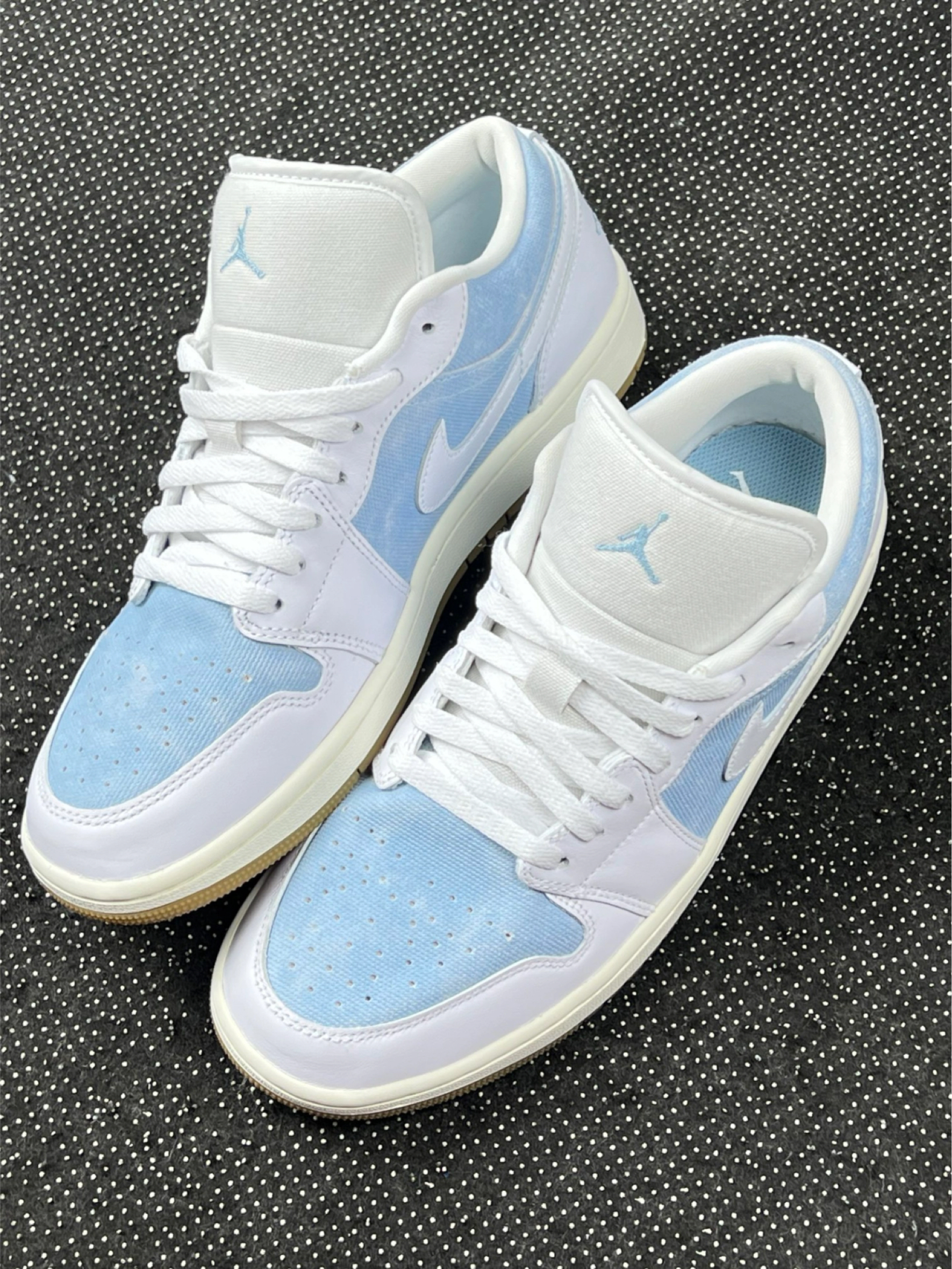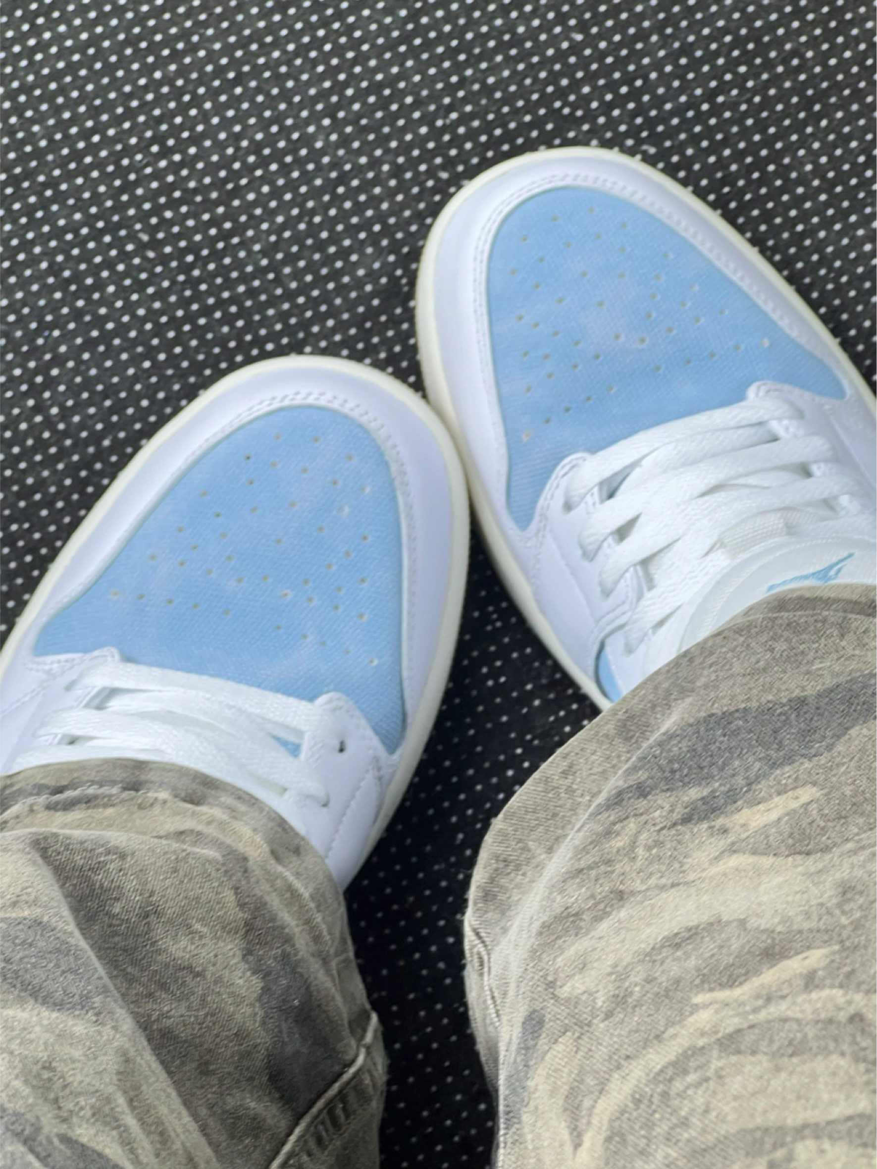 浅蓝配色 AJ1 Low 上脚小分享~ 鞋面拼接设计有层次感,浅蓝调很清新,配浅色牛仔裤、白 T 就很青春,搭浅灰运动裤也能穿出休闲感👖 说下体验:优点是配色百搭,日常通勤、逛街穿都合适,鞋型对脚型包容度还行。但缺点也有,鞋帮处材质有点硬,长时间穿脚踝会磨得慌,还有这鞋底,走久了会觉得累,缓震一般般。另外,浅色系鞋面容易脏,打理起来得勤快点🧽 整体就是日常好搭但有小短板的一双鞋,适合追求颜值...