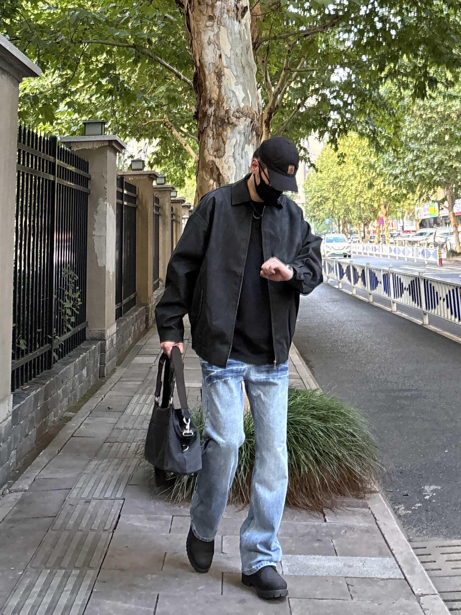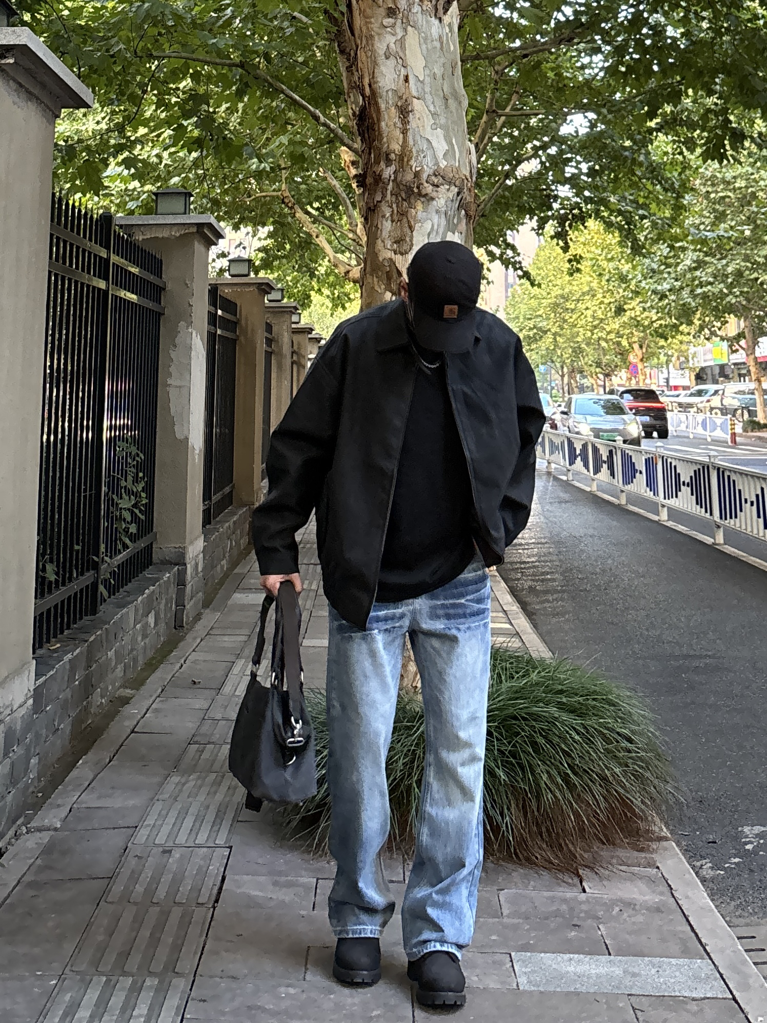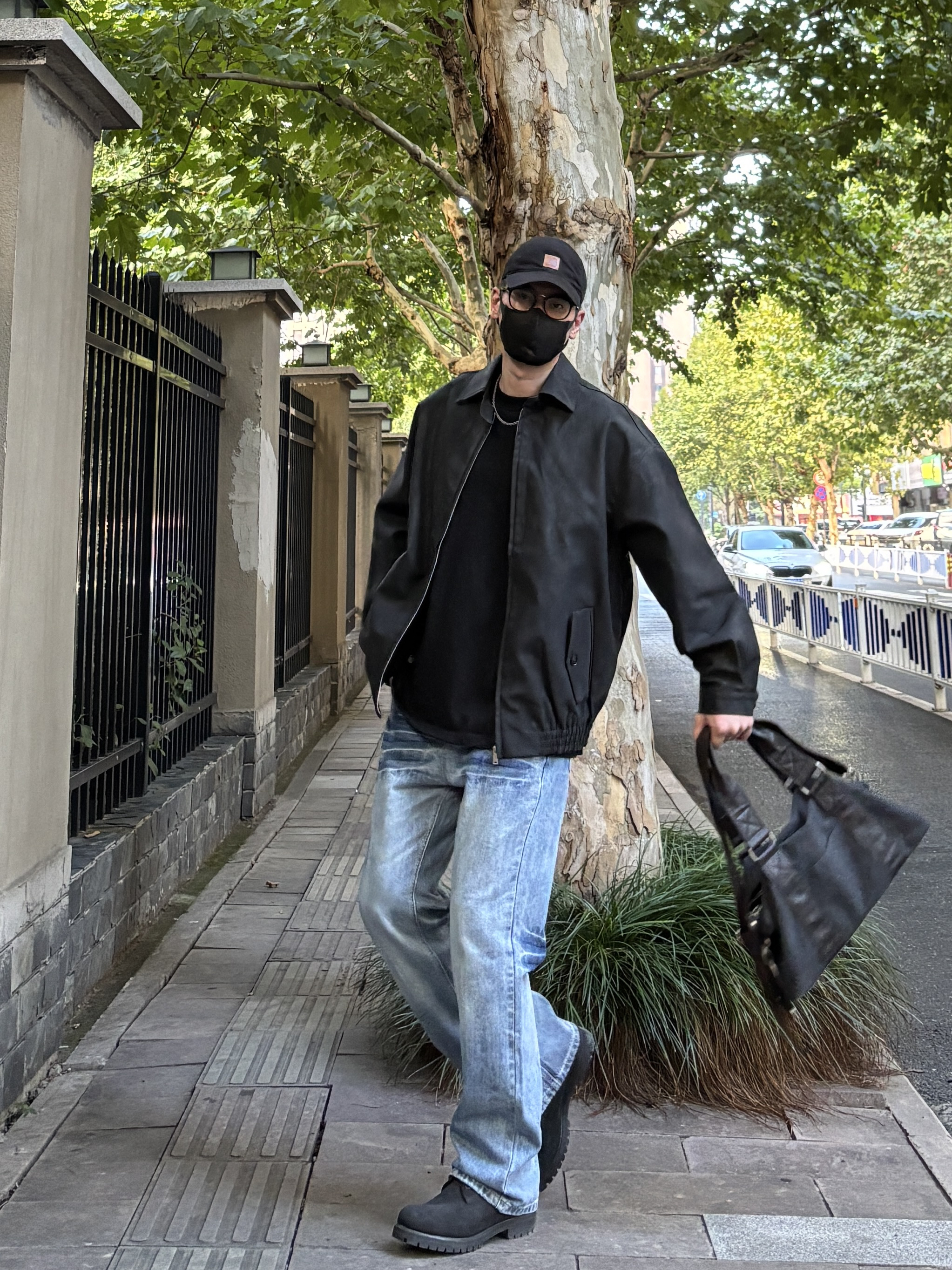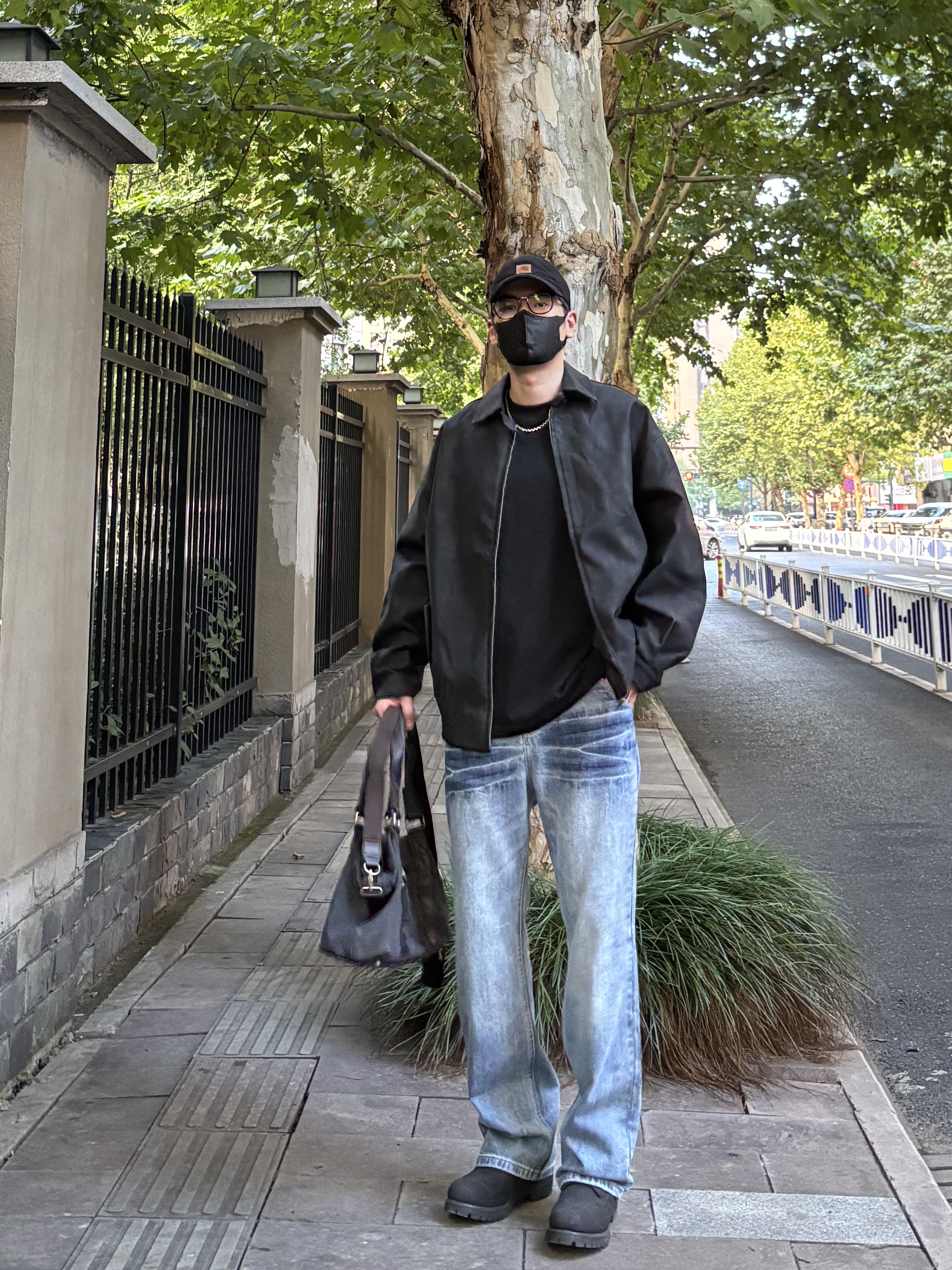 今天这套上衣穿了一件硬汉风十足的黑色宽松重磅翻领飞行员皮衣夹克 ⬇️ 裤子选择不挑腿型的蓝色水洗直筒闪电裂纹牛仔裤 ⬇️ 鞋子上脚经典百搭的timberland大黑靴 ⬇️ 最后拿一个大容量深灰色帆布拼接手提包 - 今日搭配 衣服裤子:NICE LILI 鞋子:timberland