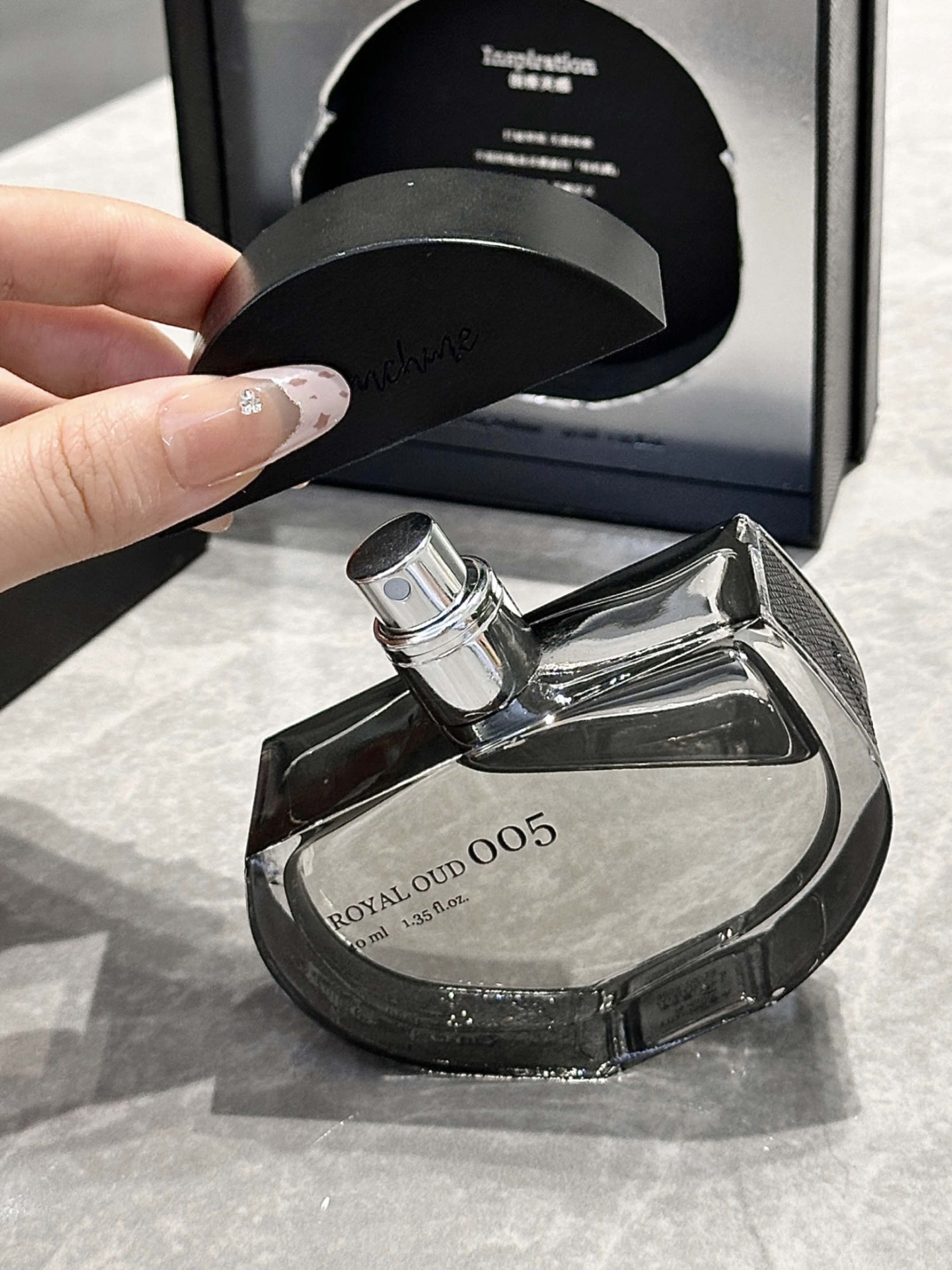 就是ttouchme家的005乌木香水 黑色包装给人感觉好好看哇 透黑玻璃香水瓶身拿在手里蛮有质感 打开瓶盖之后闻到了一股清冷的乌木混着香草的香味 我感觉香味层次还挺丰富的 早上喷的到晚上还有淡淡的香味 我觉得送男朋友嘎嘎有排面