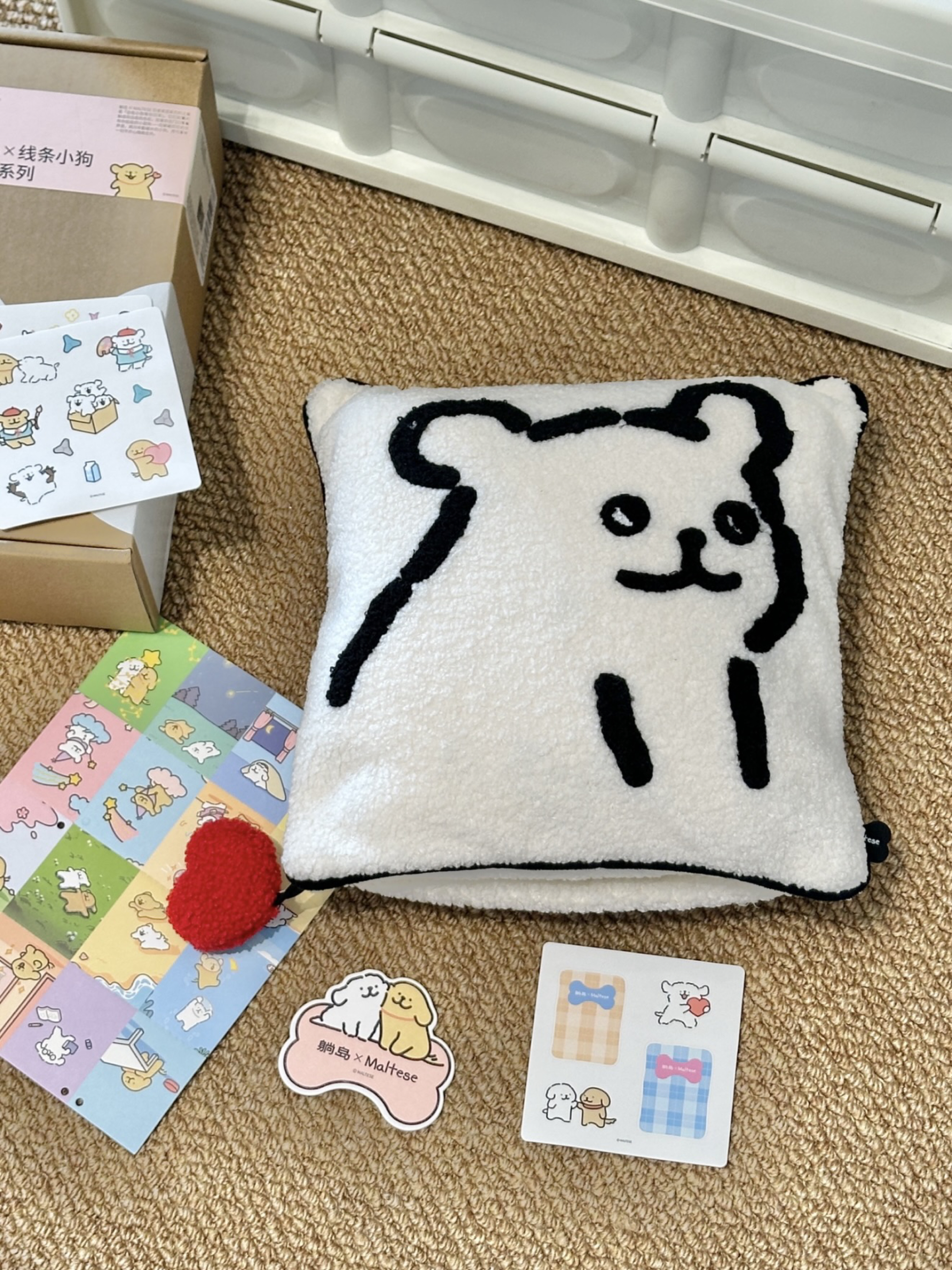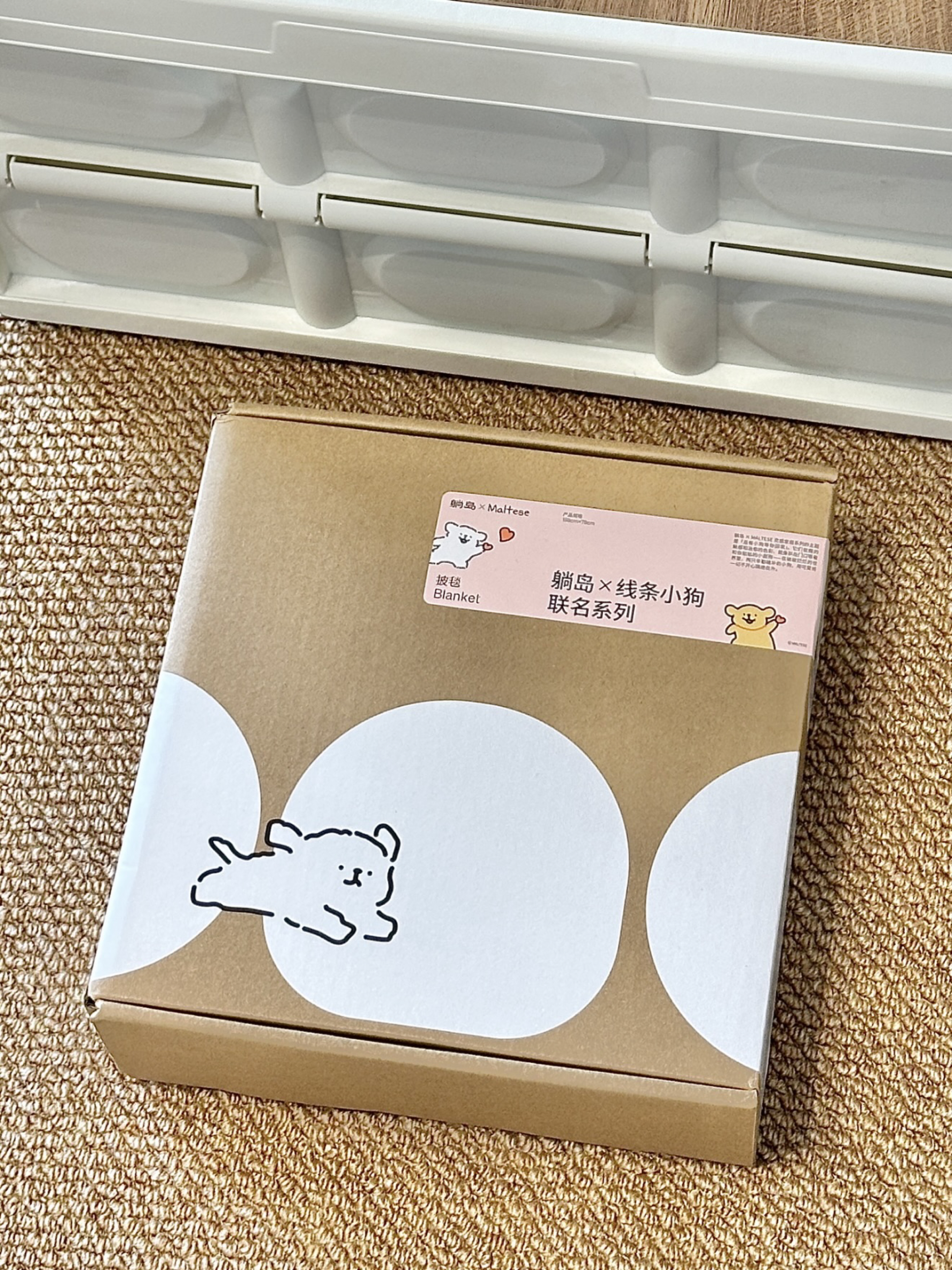 芜湖 介个躺岛✖️线条小狗联名毛毯好可爱哇 礼盒包装 打开之后是一个线条小狗图案的抱枕+周边 抱枕还可以拆开之后当毛毯用 收纳起来也蛮方便 而且摸起来软乎乎的 手感敲舒服 我感觉女孩子真滴拒绝不了介个