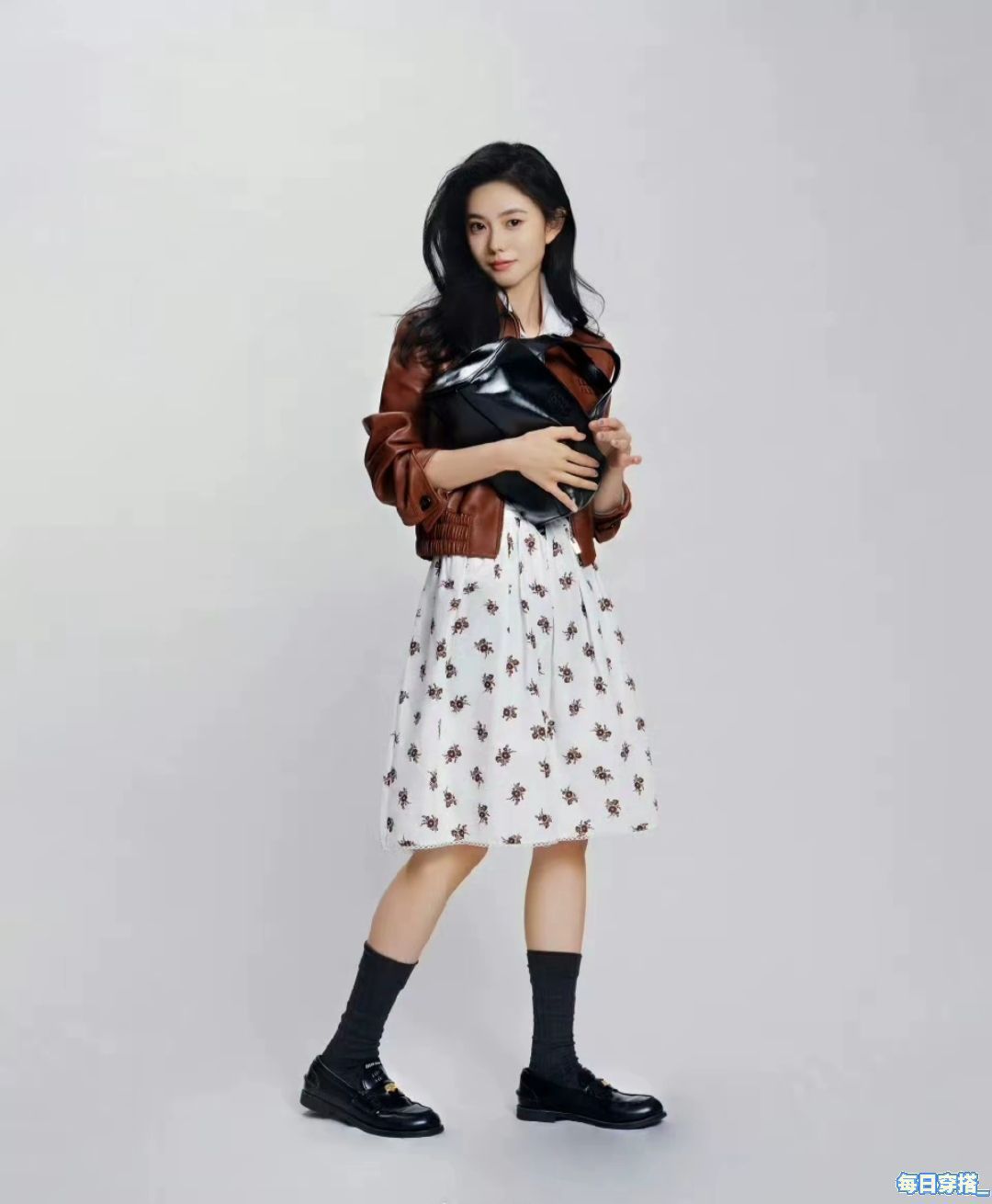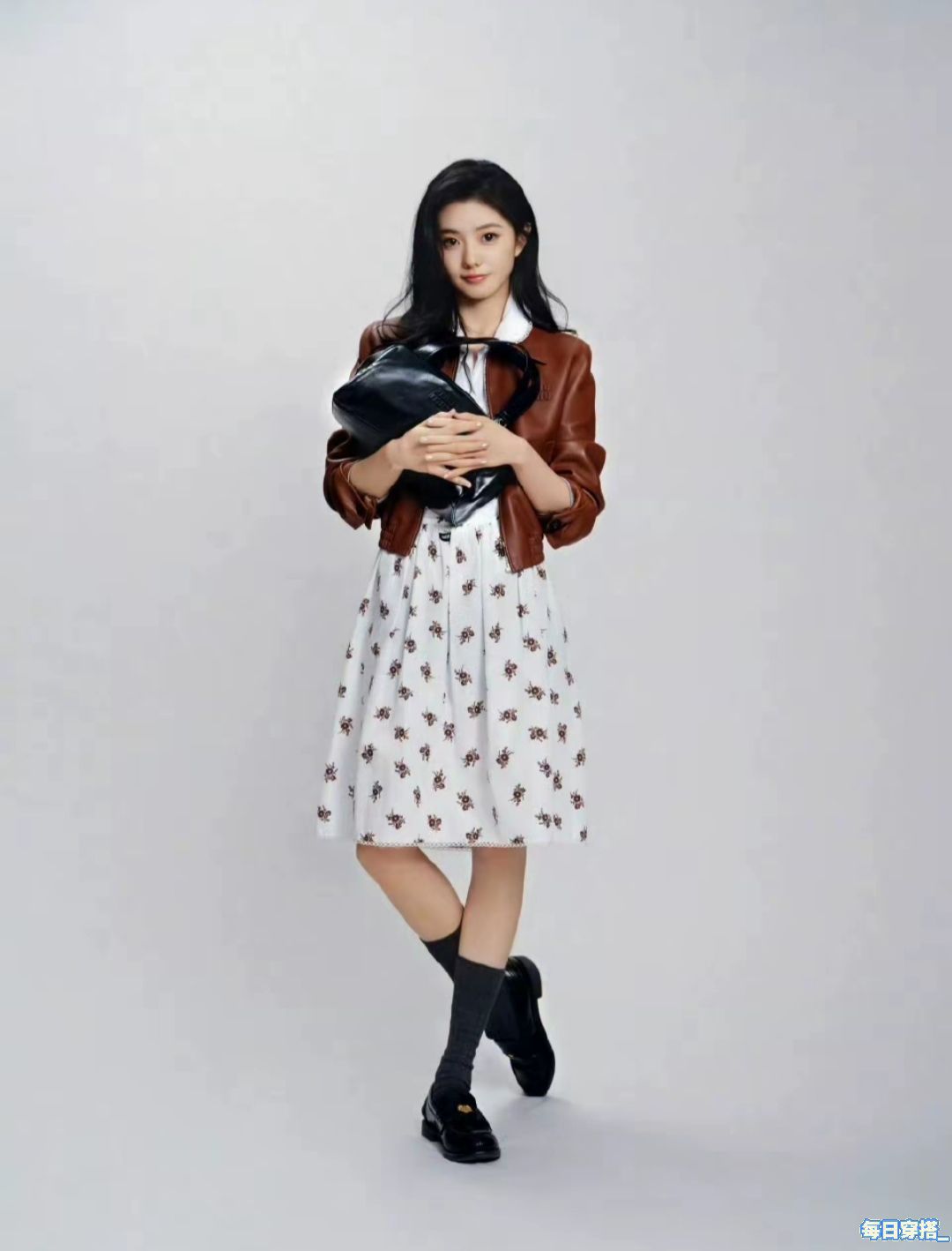 刘浩存给品牌拍的七夕系列,大白背景简单基础的拍法,最直观呈现出了她的美❤️❤️ 过膝裙➕小腿袜➕平底鞋的搭配