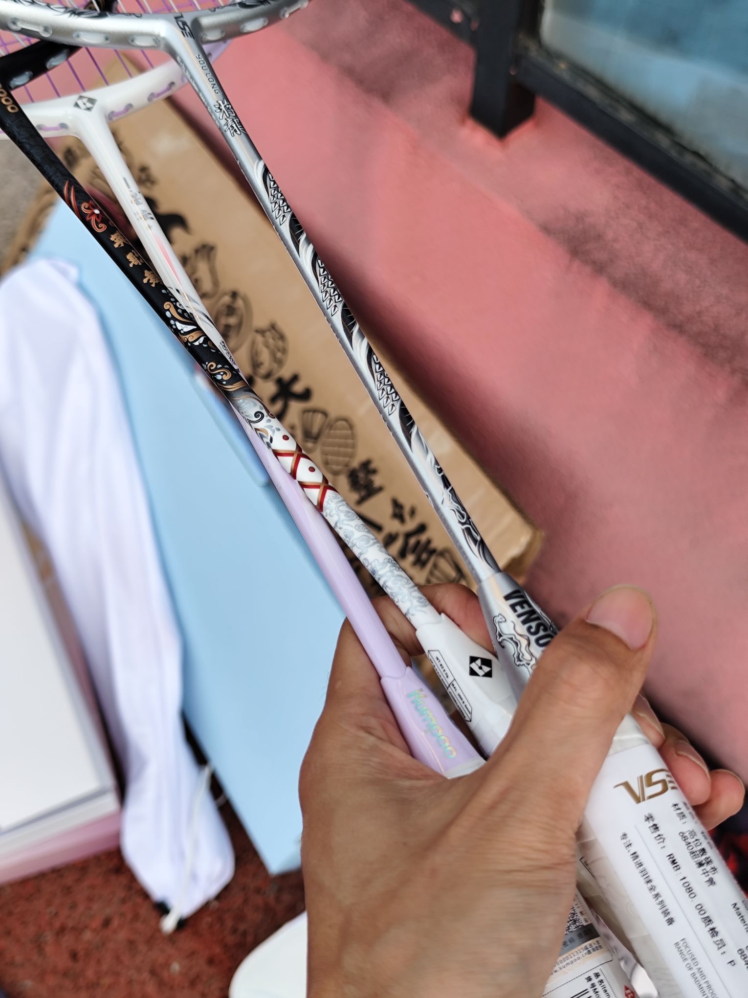 想打羽毛球可以不只是想,需要行动![机智_blue] 今天来打球,我为你准备好拍子了。 这么多应该都能选到顺手的吧? 你喜欢哪支?[耍帅_blue]