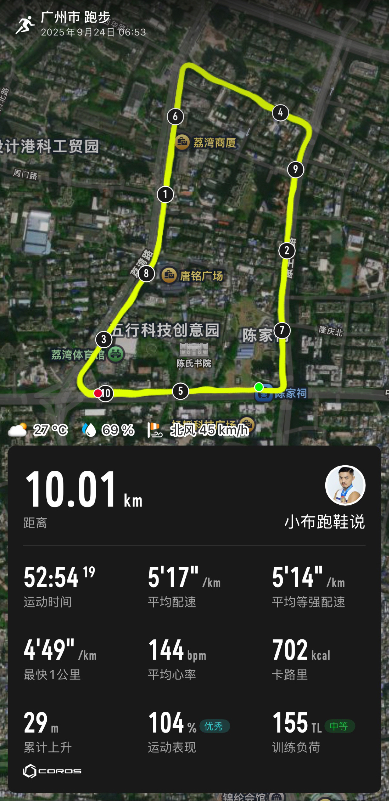 台风桦加沙即将杀到, 广州昨天就宣布, 马上进入「五停」状态, 严阵以待! …… 其实从昨晚临睡时开始, 我就惦记着, 今天早上, 能不能偷到一个台风前窗口期, 去楼下跑一个, 毕竟都五停了, 绝对可以放开跑起来! …… 还没等到闹铃响, 530我就已经爬起来准备, 看着外面还比较平静, 马上换上跑鞋冲了出去! …… 跑得依然是熟悉的路线, 但台风前微凉的体感, 以及基本0机动车的柏油路, 感觉完...