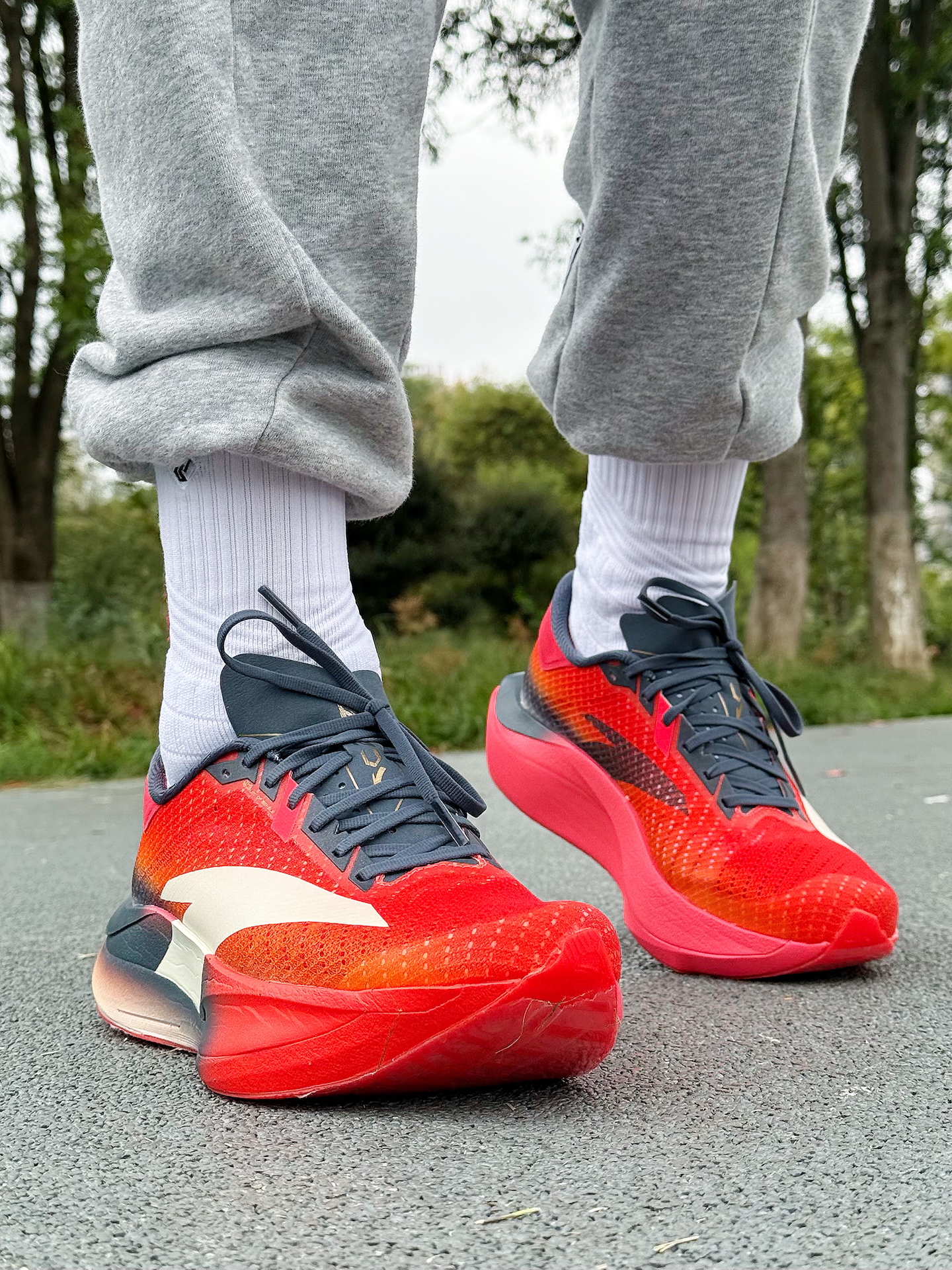 这期分享的跑步鞋为 安踏C202 7.0猛冲配色 这双新配色听名字就很激进,鞋身以橙红为主色调,搭配黑白色点缀,上脚颜值特别亮眼,属于辨识度很高的一款鞋 穿后体验:上脚软弹轻盈,氮85科技中底反馈迅速,全掌碳板推进感明显却无异物感,跑起来不拖沓。A-WEB鞋面透气出色,长距离奔跑脚背也能保持干爽,液态止滑橡胶大底在干湿路面都很稳。 优缺点:优点是轻质便携、软弹兼具,碳板助推力强,防滑耐磨且包...
