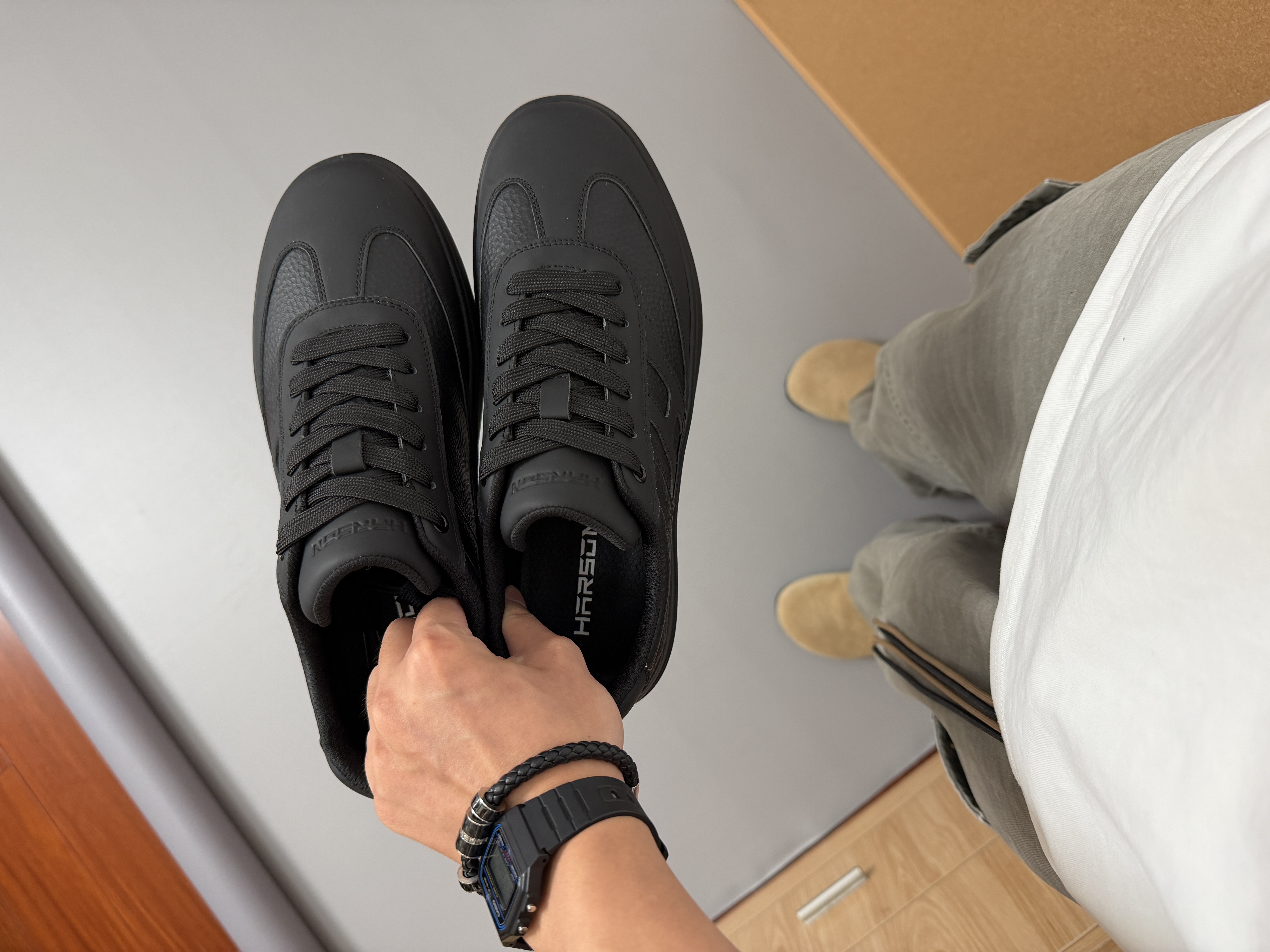 秋日🍂通勤当然少不了双百搭德训鞋 用牛皮革材质做的哈森休闲鞋才是我的首选‼️ ✅这一看一摸就知道它的舒适度和质感! 加上全黑鞋面耐脏耐造的加持🖤 ✅户外/通勤/逛街,让我去哪都不用担心吧! ⚠️尺码参考:170/120 穿着 41 码正好的 @App #谁还没有德训鞋 #复古赛车鞋出街 #哈森harson #休闲鞋才是真chill #新鞋零时差