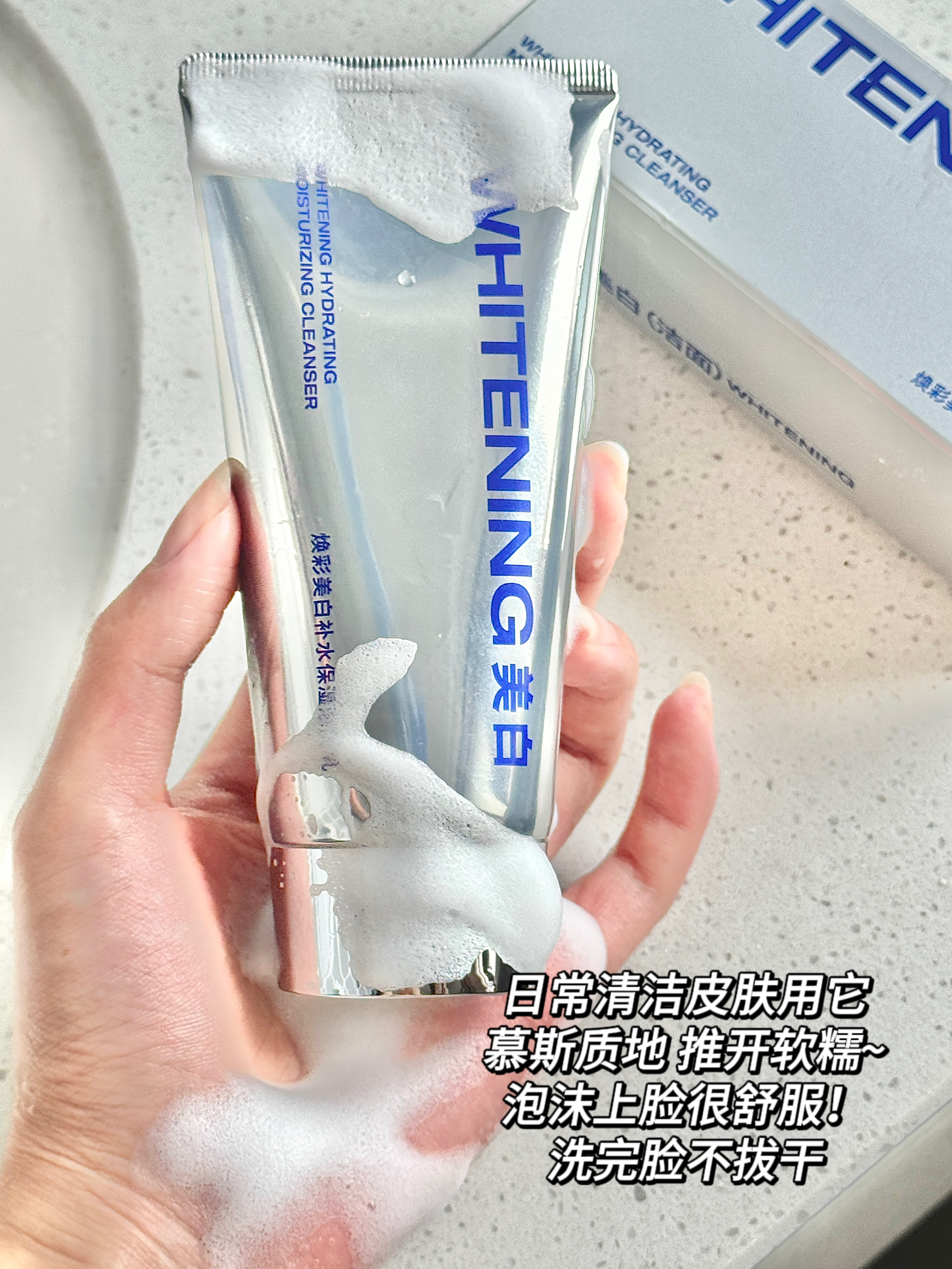 最近换季我的皮肤真的不稳定 我皮肤爱出油脸色看着蜡黄蜡黄的 感觉整个人看起来脏脏的 最近用的是尊蓝的美白保湿洁面 挤出来有点像慕斯的质地 推开顺滑 洗脸的时候泡沫很扎实像云朵一样 每次洗脸都要按摩一下 尤其是T区 我用它洗完脸感觉很水润 不拔干 而且最近早晚坚持用它洗脸 感觉自己现在素颜出门也嘎嘎自信! 和我有一样肤质的宝宝~可以试试看