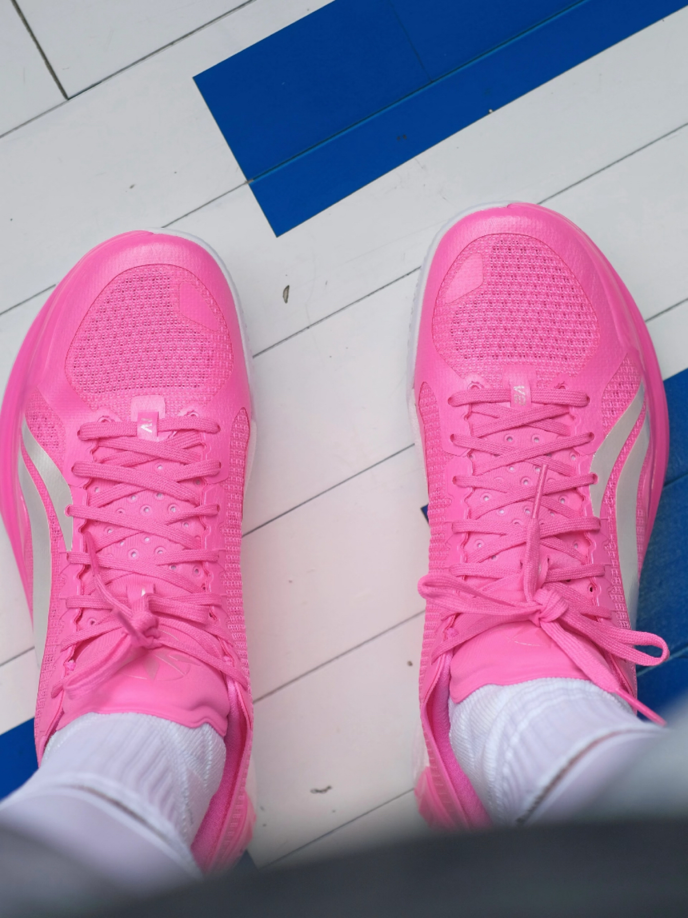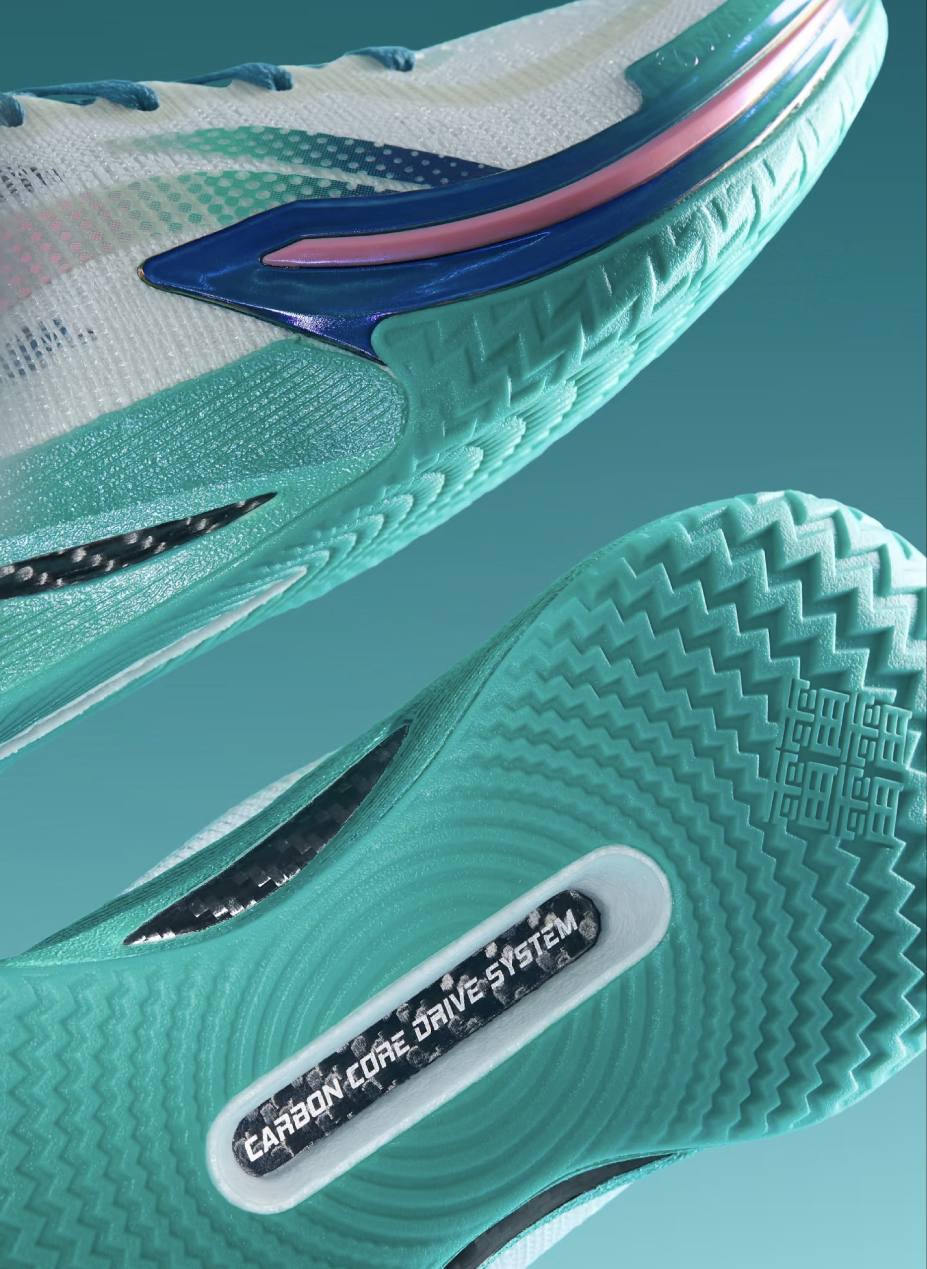 1️⃣ 碳核芯·碳䨻一体 不是简单“放块碳板”,而是把 3K 斜纹碳布与超临界䨻珠粒共熔一体: • 0.6 mm 厚度,抗扭 58 N·m,弯弓劈扣不翻车; • 前掌 72 % 能量回弹,后掌 65 % 减震储备,落地像踩进“弹簧泥潭”——软得进去,弹得出来; • 整片式“Ω”型结构,两端上翻包住足弓,成为隐形“足弓安全带”,长时间实战不酸胀。 2️⃣ 外底「征荣」纹 • 分区底花:前掌「...
