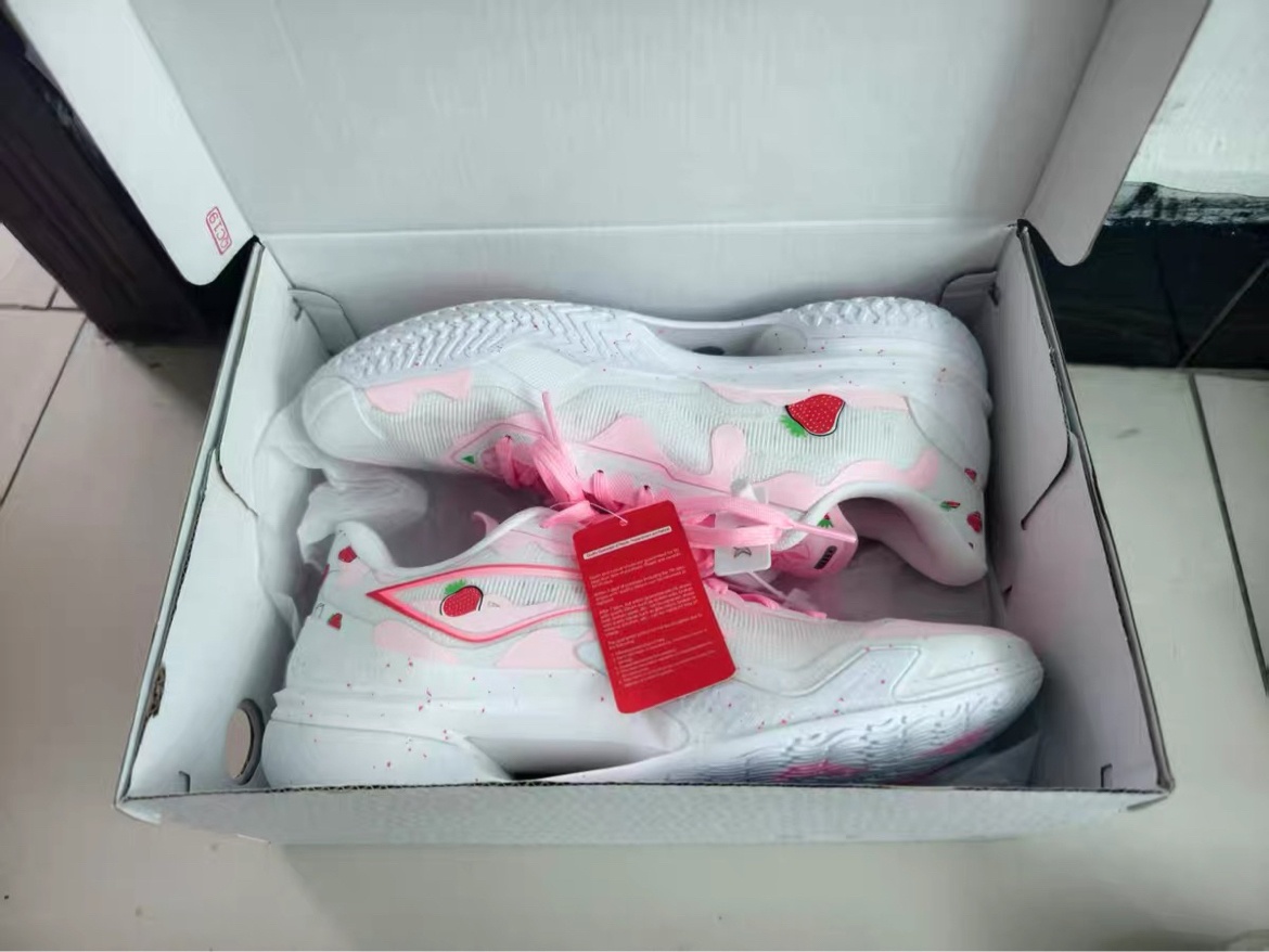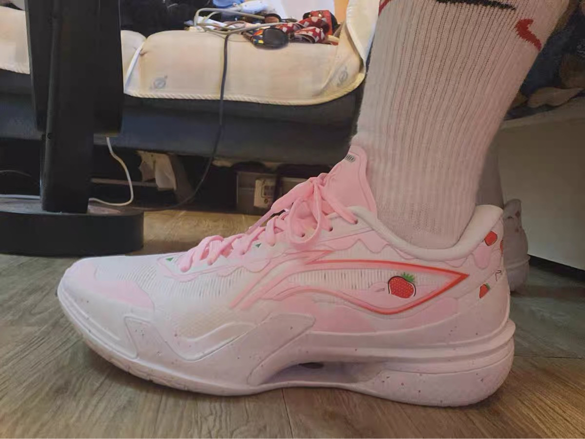 家人们快来看 “行走的甜品”!李宁利刃 5 草莓奶昔配色一开箱就被甜到尖叫🥰 奶白鞋身泼洒着淡粉 “奶昔流痕”,鞋舌的草莓图标更是细节杀,穿脚上仿佛自带甜甜的空气感,情人节限定款果然懂浪漫~ 别被颜值骗了!实战力照样硬核✨ 全掌䨻科技踩上去软弹得刚好,上周打 3v3 突破启动像踩棉花糖弹射,落地时膝盖完全不震。鞋面是透气网布材质,日常穿不闷脚,就是天热长时间打球会有点热,但支撑性超稳,3D TP...