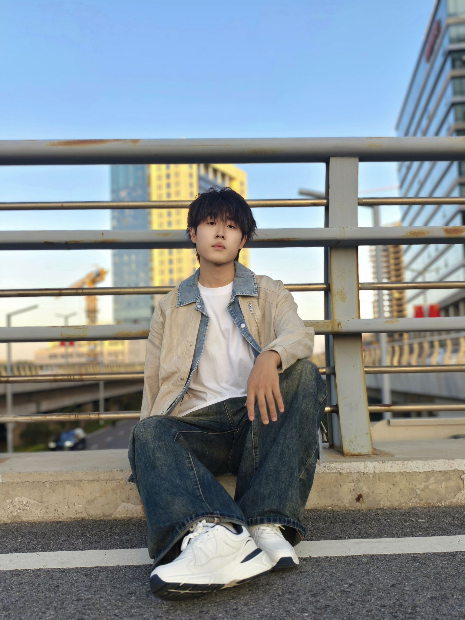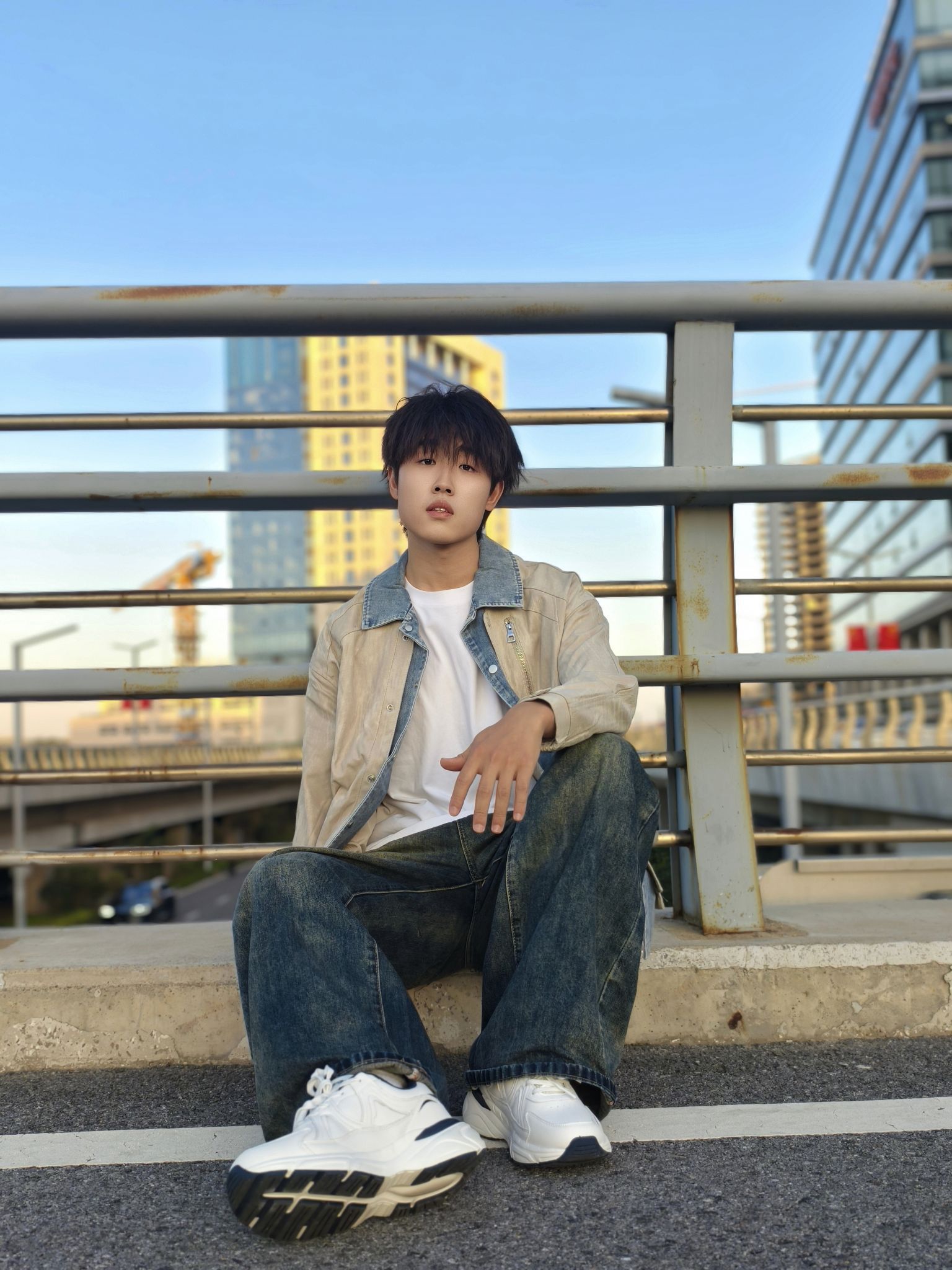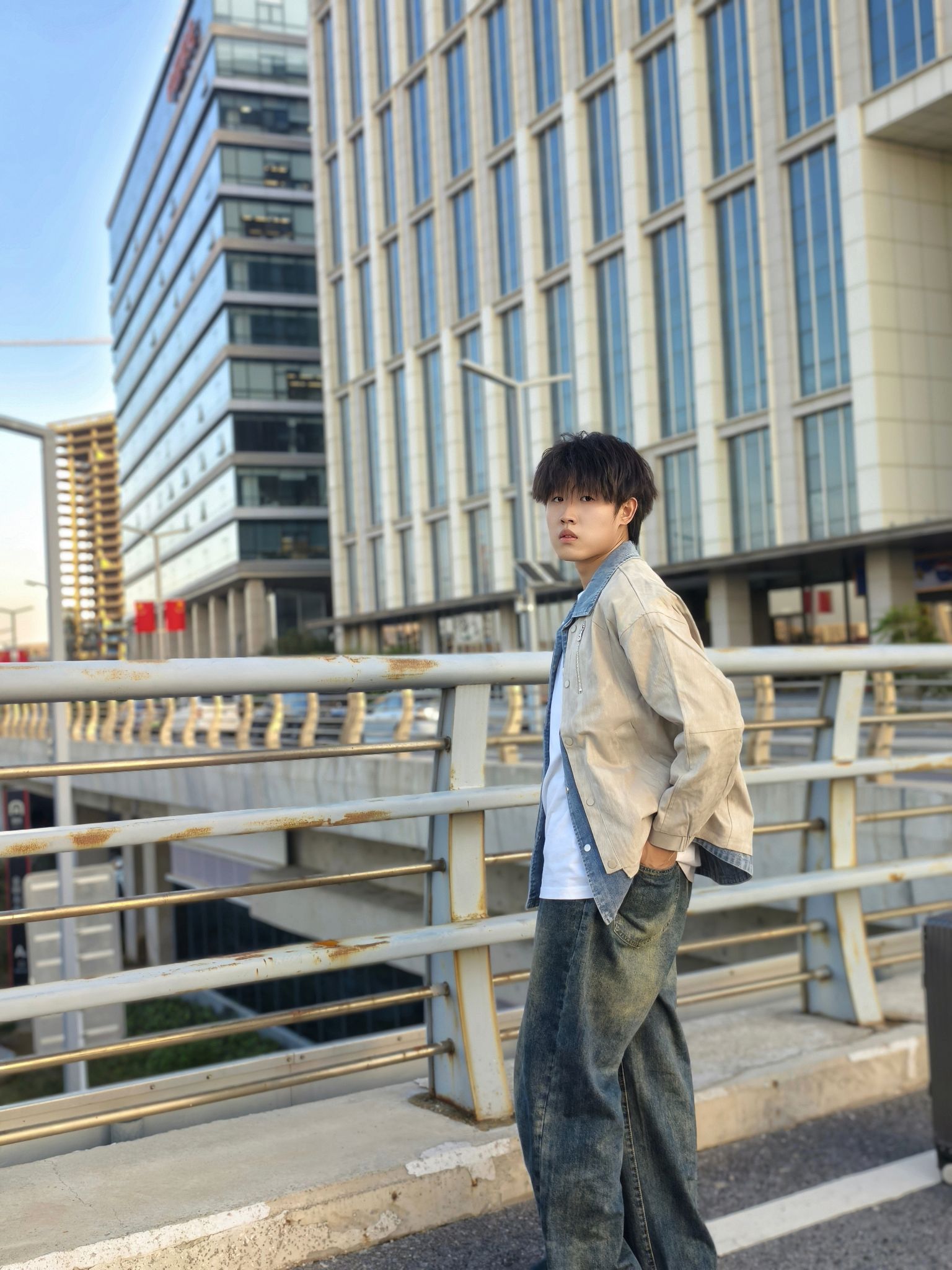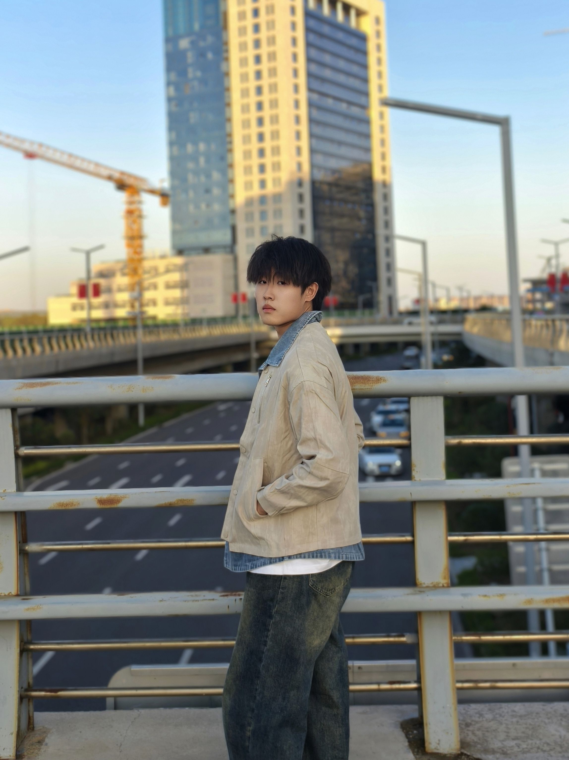 这件假两件夹克的设计真的绝!牛仔拼接的层次感一下就把风格拉满,翻领款式休闲又带点痞帅感,雅杏色很衬肤色,春秋单穿特别合适。 日常我就内搭白T或者卫衣配条做旧阔腿牛仔裤,再踩双老爹鞋,在城市天桥出片也好,平时通勤逛街也罢,这套穿搭都自然协调,轻松穿出不费力的潮男感~ 身高178cm、体重70kg,穿XL码