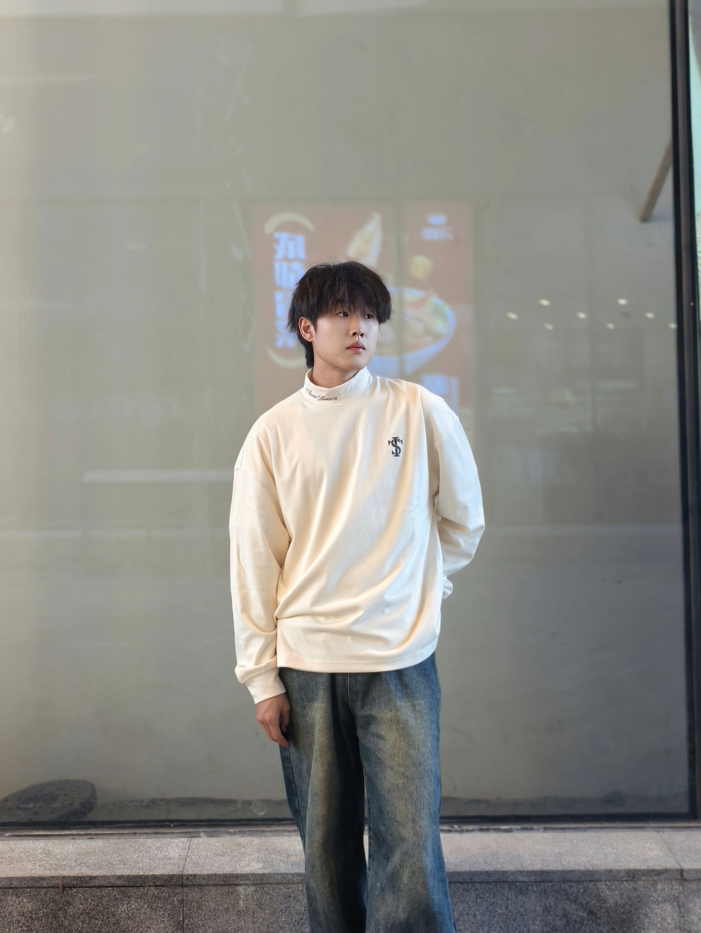 #STK SMALL TOWN KID 半高领打底衫到手就觉得值! 德绒面料摸起来软乎乎的,半高领刚好护住脖子。 胸口小刺绣和领口字母细节挺有质感,配条做旧牛仔裤,穿起来都舒服又好看。 秋季可以当卫衣单穿 杏色真的很吸睛 温柔又自然 冬天当内搭 搭配大衣也不错[赞_blue] 📏身高178cm、体重70kg,穿XL码