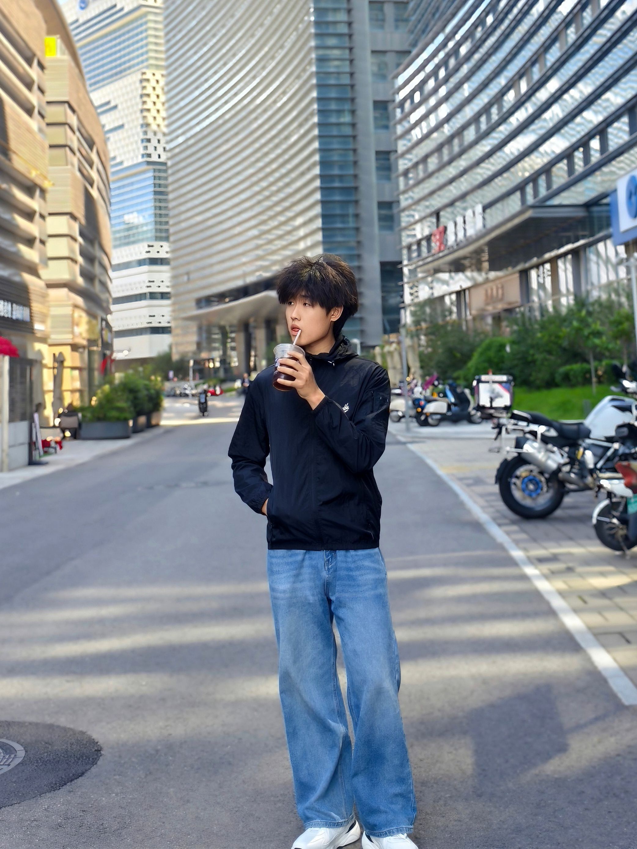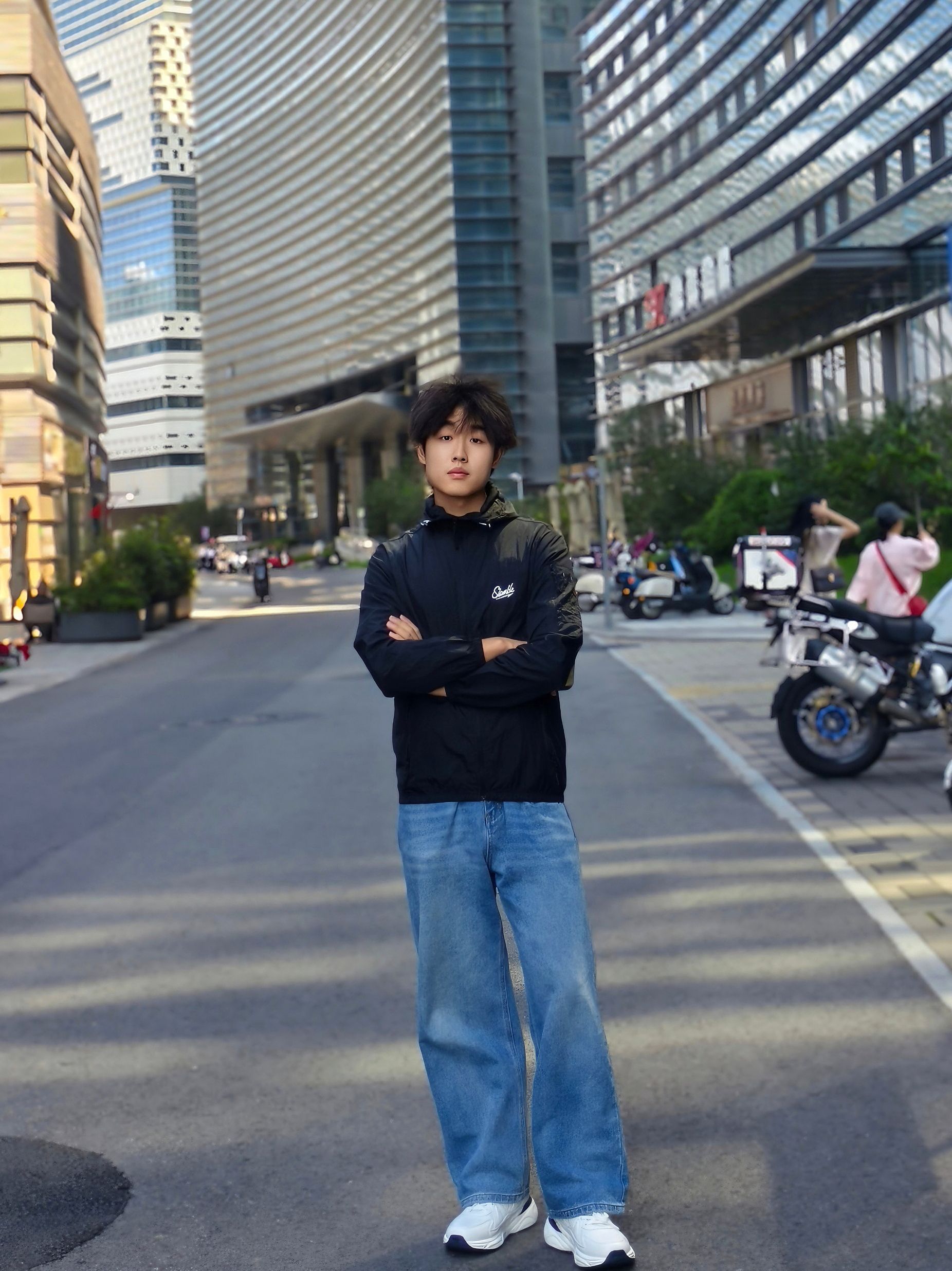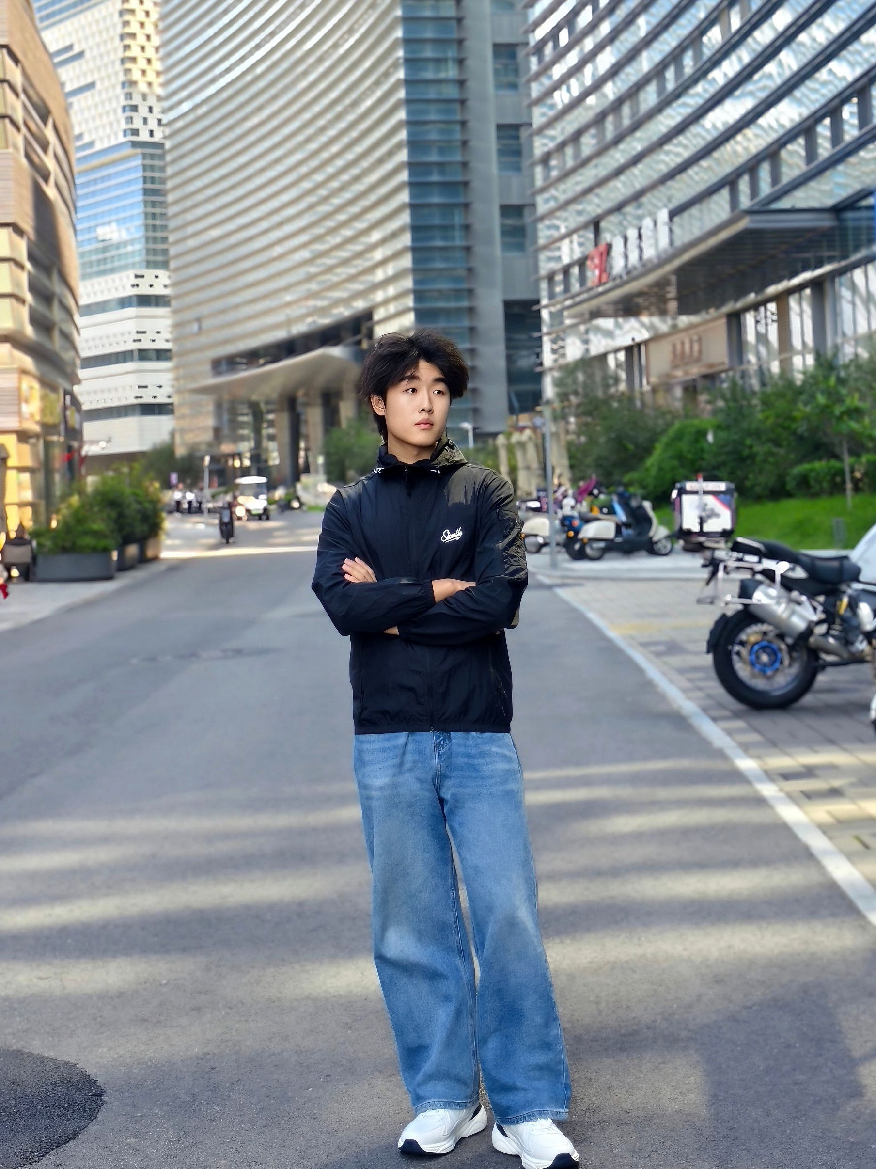 今日分享一件超百搭的外套 简约却不简单 上身的是 #slamble 家的运动夹克 黑色配色 真的超酷! 搭配一条简单牛仔裤👖 简单又帅气 这样穿会偏休闲 喜欢户外风可以搭配冲锋裤 梭织面料透性也比较好 可以日常当防晒服穿 功能性和颜值都很不错 推荐入手[赞_blue]