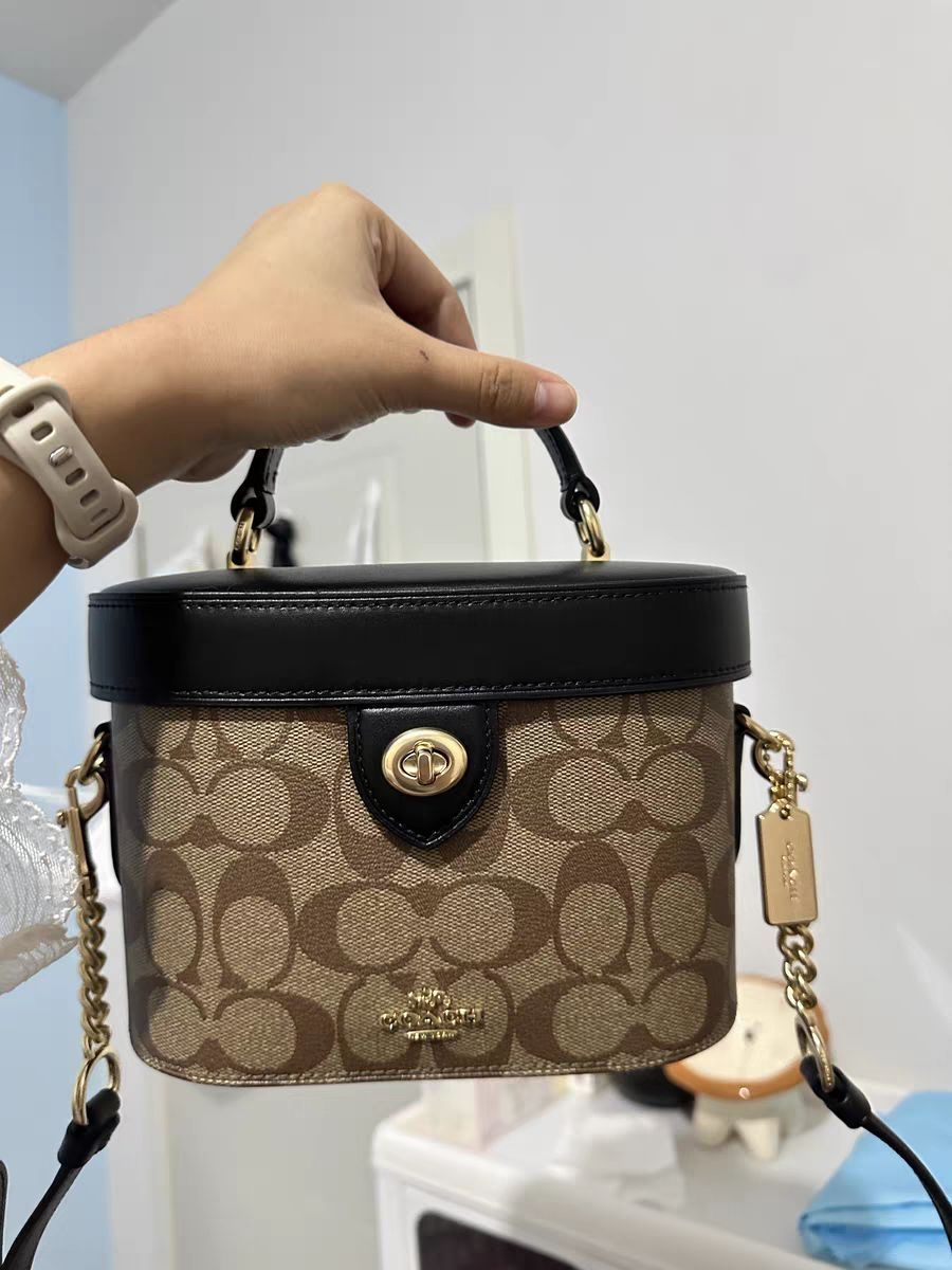 本篇笔记关联了Coach Kay 20 小号 经典老花满印徽标Logo帆布配牛皮革手提桶单肩盒子包斜挎包 棕色等商品,为用户提供真实的使用体验和购买参考。