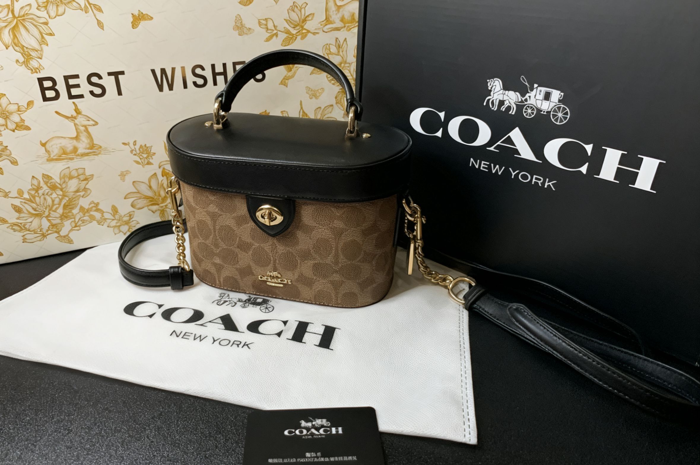 如果爱来迟,希望是蔻驰 COACH经典老花拼黑盒子包,复古精致又百搭,手提斜挎皆可,是轻奢通勤的时髦之选
