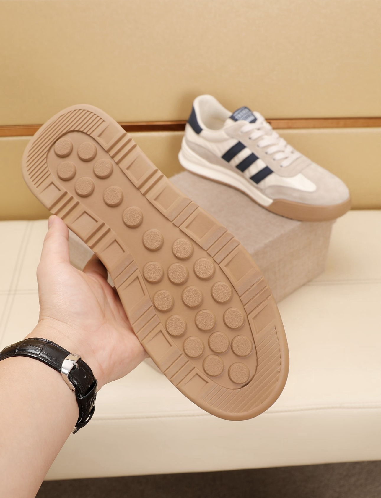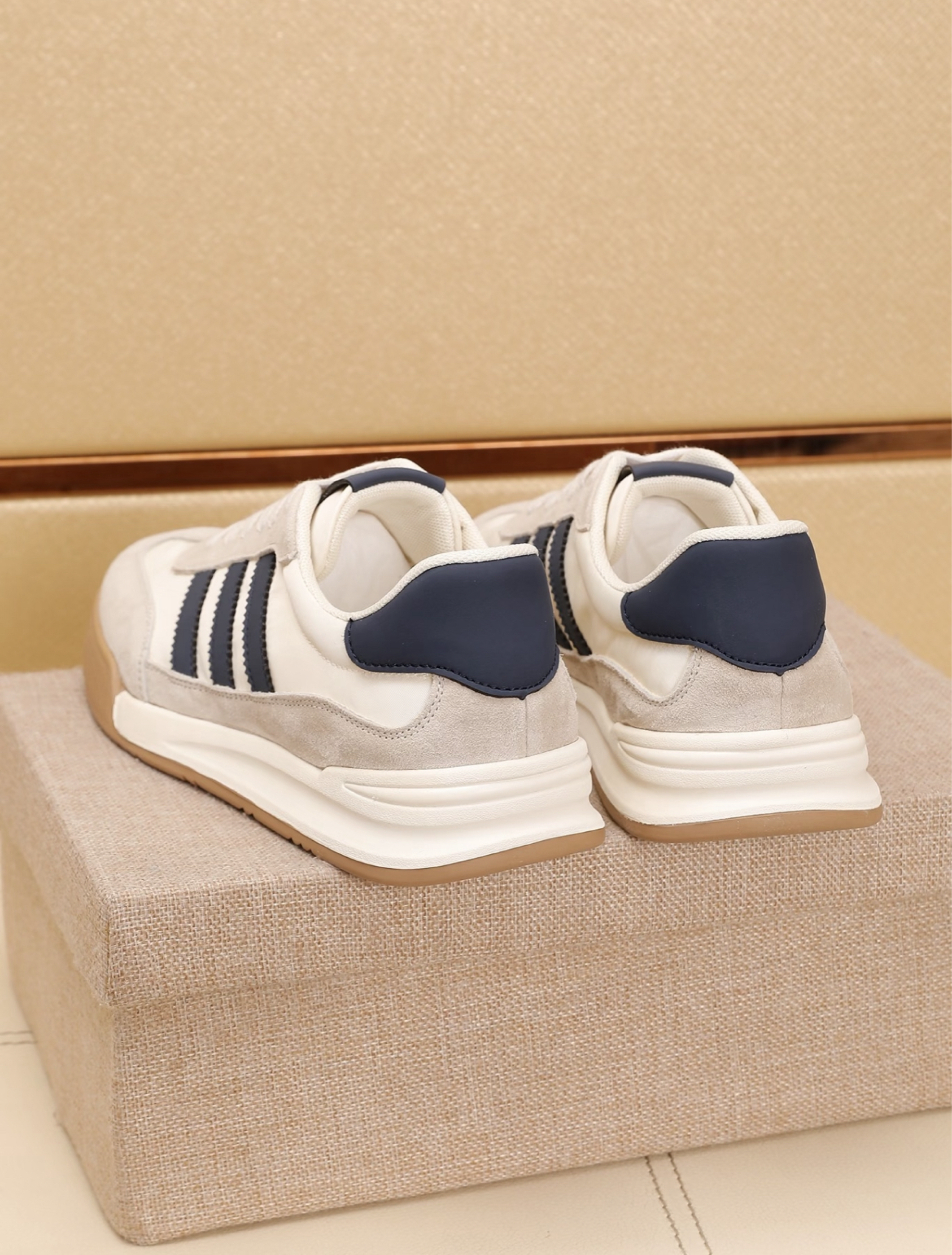 救命!挖到宝了!这双鞋简直是男生夏季鞋柜的救星!👟✨ 帆布+德训的完美结合! 经典德训鞋的复古灵魂遇上清爽帆布材质 直接拿捏夏日松弛感!米白配色超干净 怎么搭都帅哭!💥 👉 通勤挤地铁? 软乎乎鞋底踩着像踩云朵 暴走一天都不累! 👉 周末约会逛街? 复古颜值直接拉满 女朋友都夸会穿! 👉 学生党早八冲刺? 一脚蹬设计3秒出门 懒人福音实锤! ⚠️重点夸透气性! 鞋面是透气的冰丝帆布 内里还有网眼设...