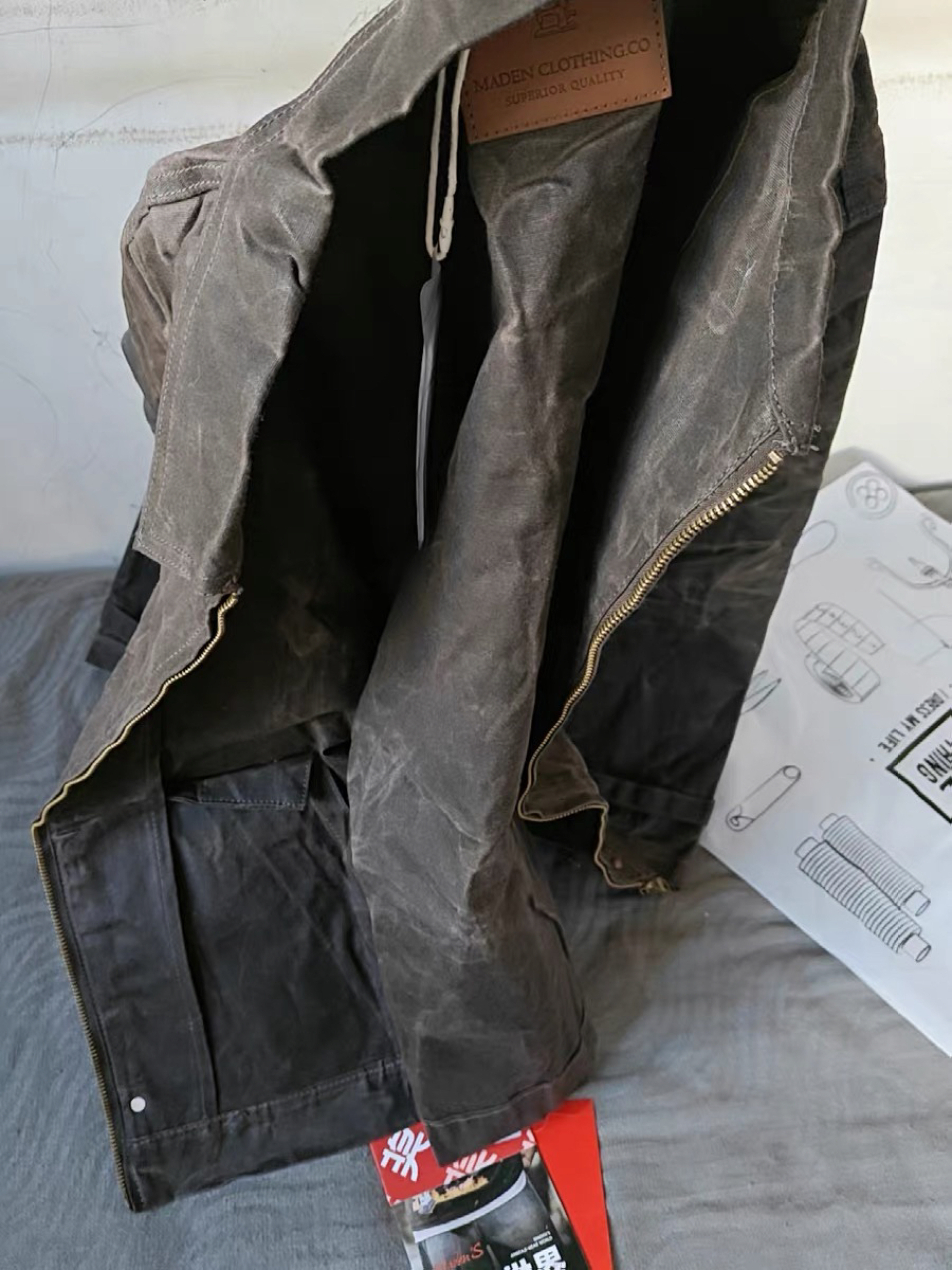 本篇笔记关联了Maden/马登 工装系列第四代油蜡拉链翻领修身纯棉帆布夹克 TS2407147 锡灰色夹克+油蜡组合装等商品,为用户提供真实的使用体验和购买参考。