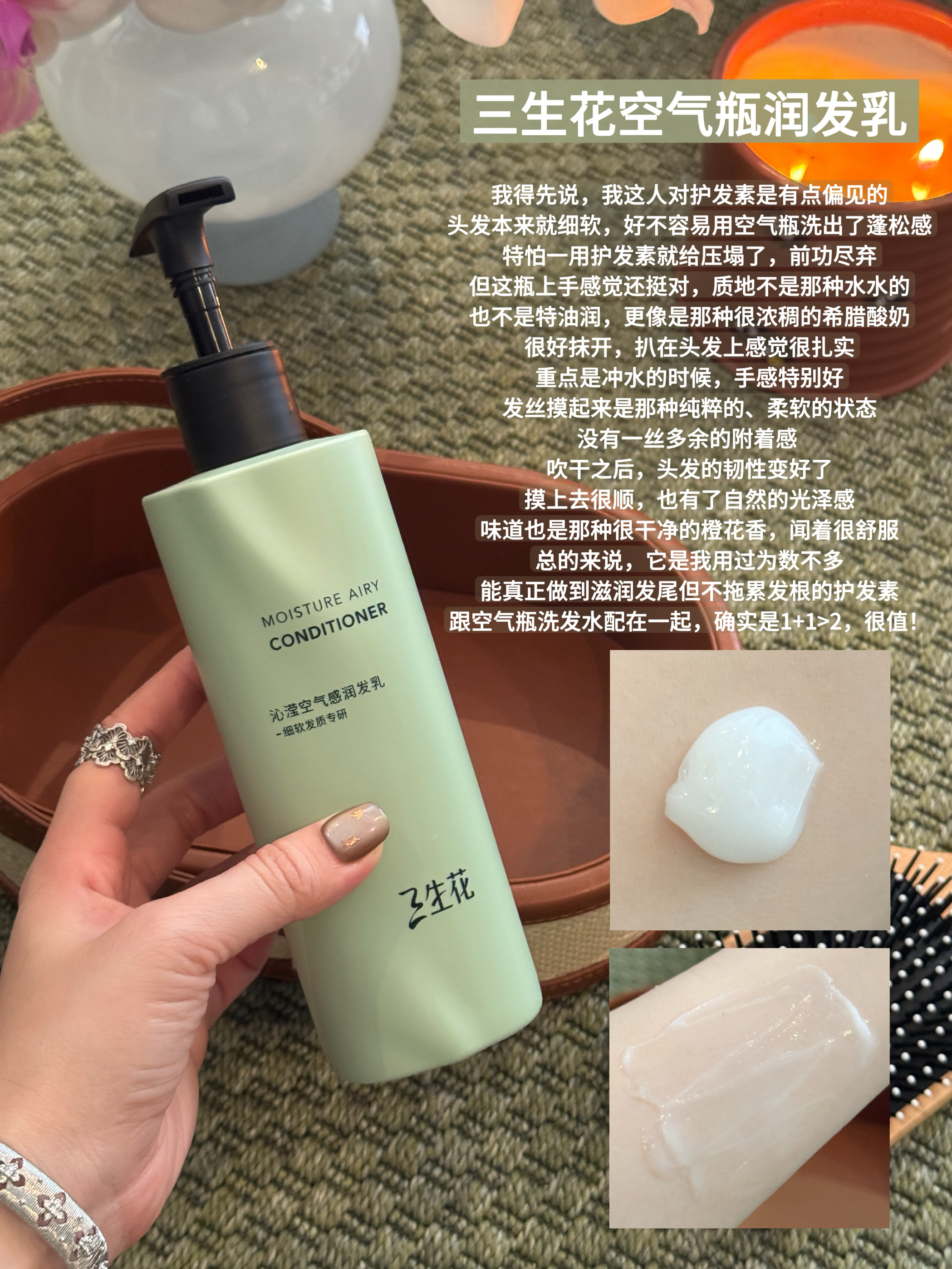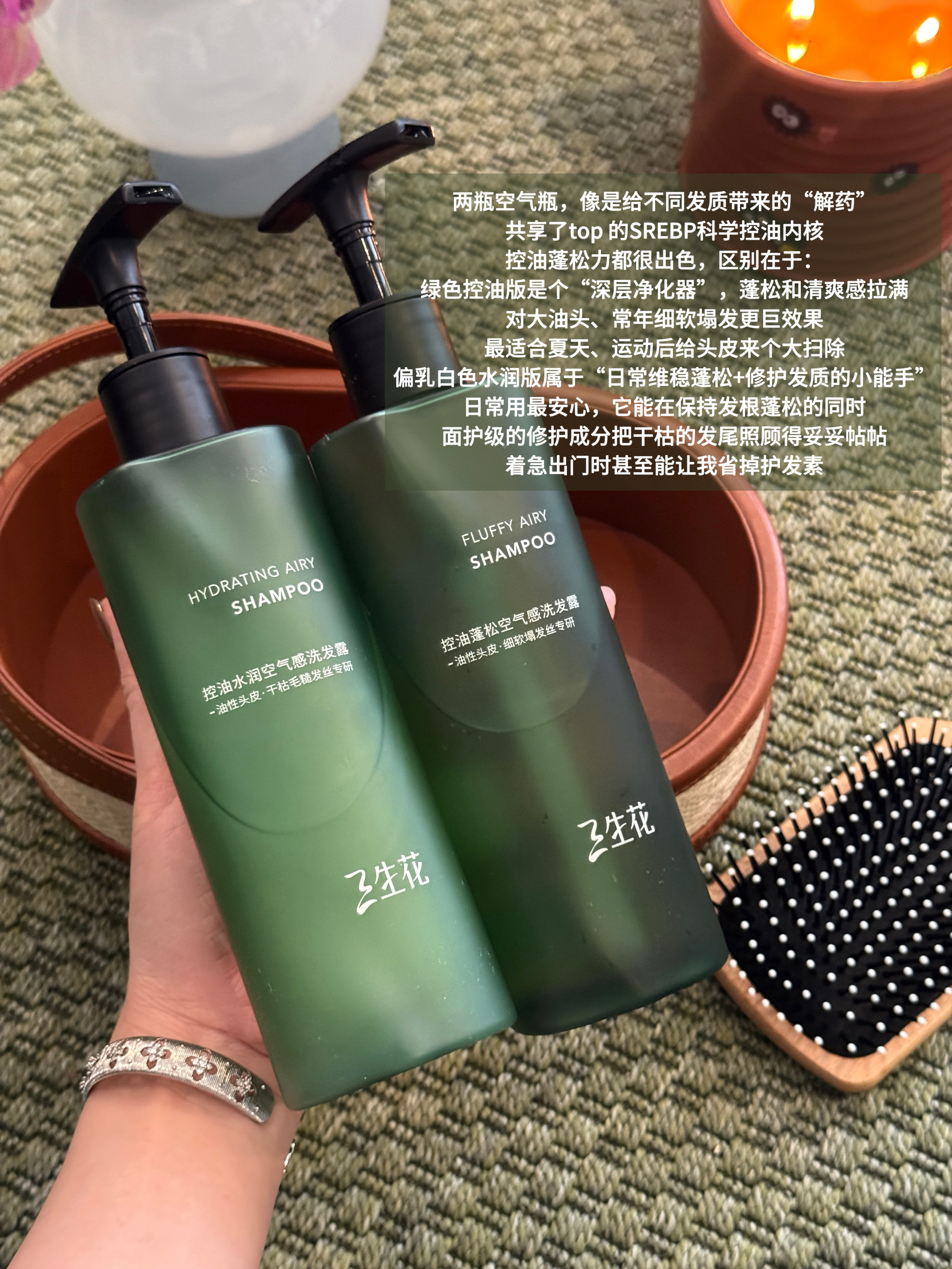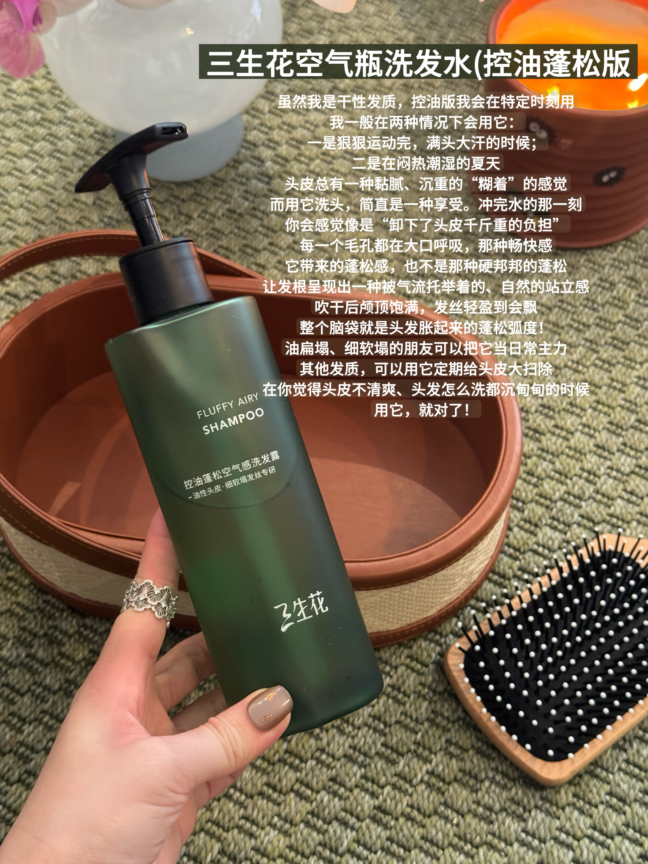 本篇笔记关联了三生花 空气瓶2.0无硅油洗发水 长效控油蓬松防毛躁 丰盈柔顺、三生花 琥珀瓶洗发水 皮肤科认证 强韧丰盈防脱 控油蓬松等商品,为用户提供真实的使用体验和购买参考。