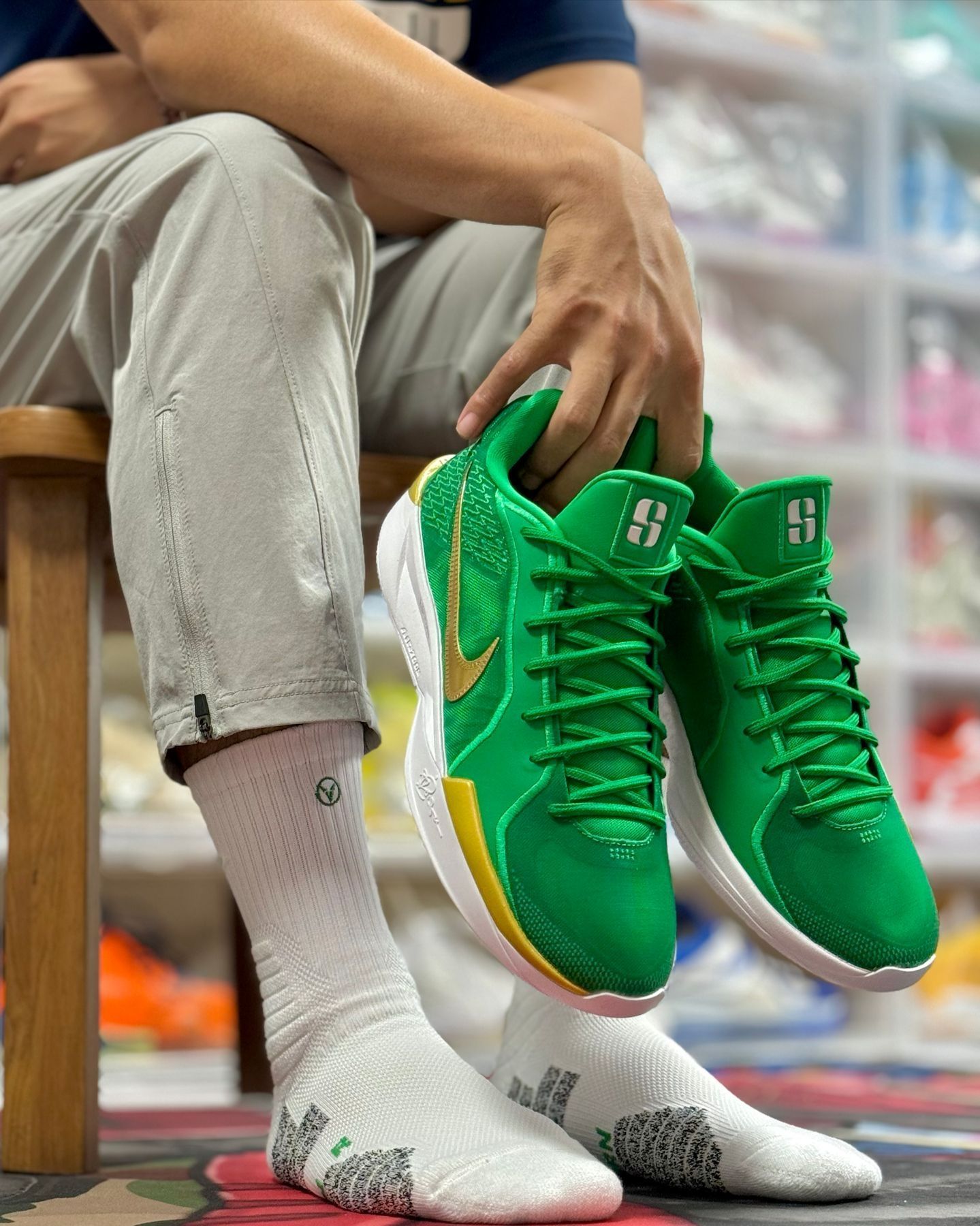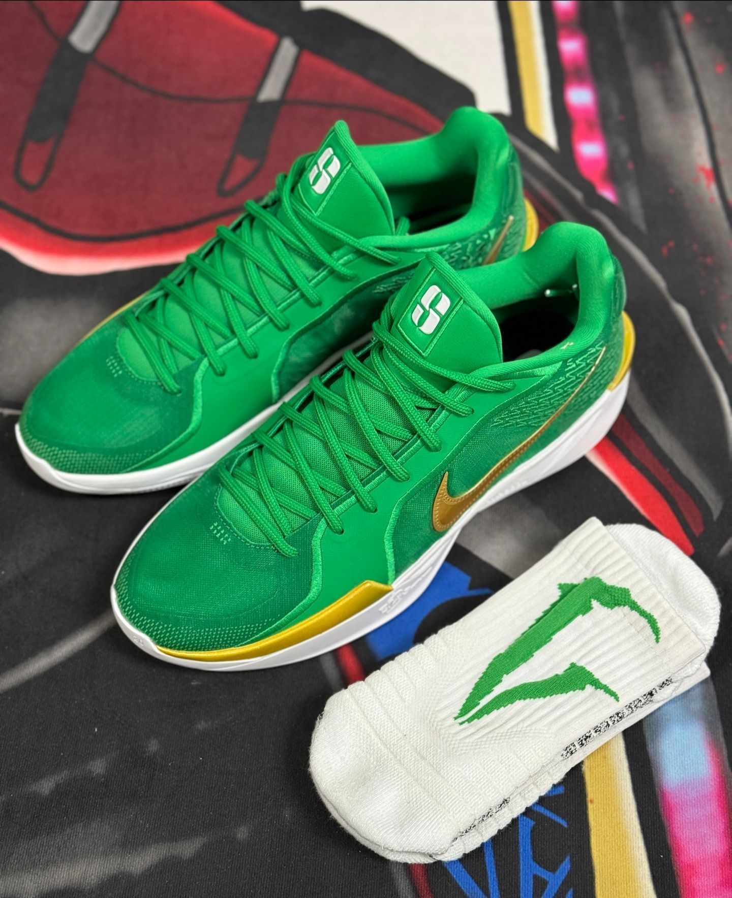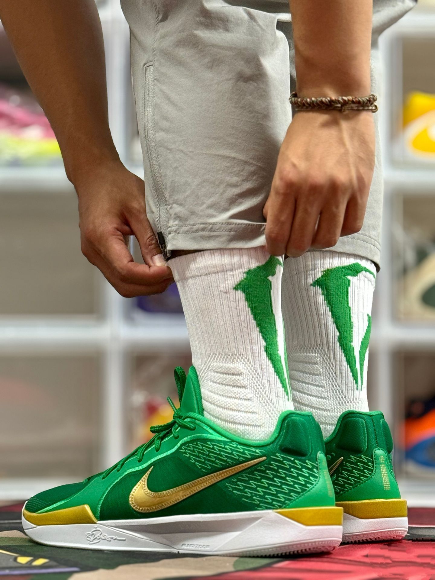 今天打球,玩儿一波NBA球队配色⛹️ 刚好秋天也要穿外套了,拿出了很多年前的一件凯尔特人球队夹克🍀 黑绿色配上胸口的凯尔特人大logo,虽然过了很多年,依旧还是很复古好看❕ 当然球鞋和球袜也要用绿色呼应上了🤔 球鞋来了双定制的Nike Sabrina 2🆔 在球袜上,用的是最近几乎把所有配色都入手了的维动聚变Pro🎨 白绿色的搭配,我也是觉得和这一身超呼应。 而且不光颜色呼应,球袜也是在脚底用了...