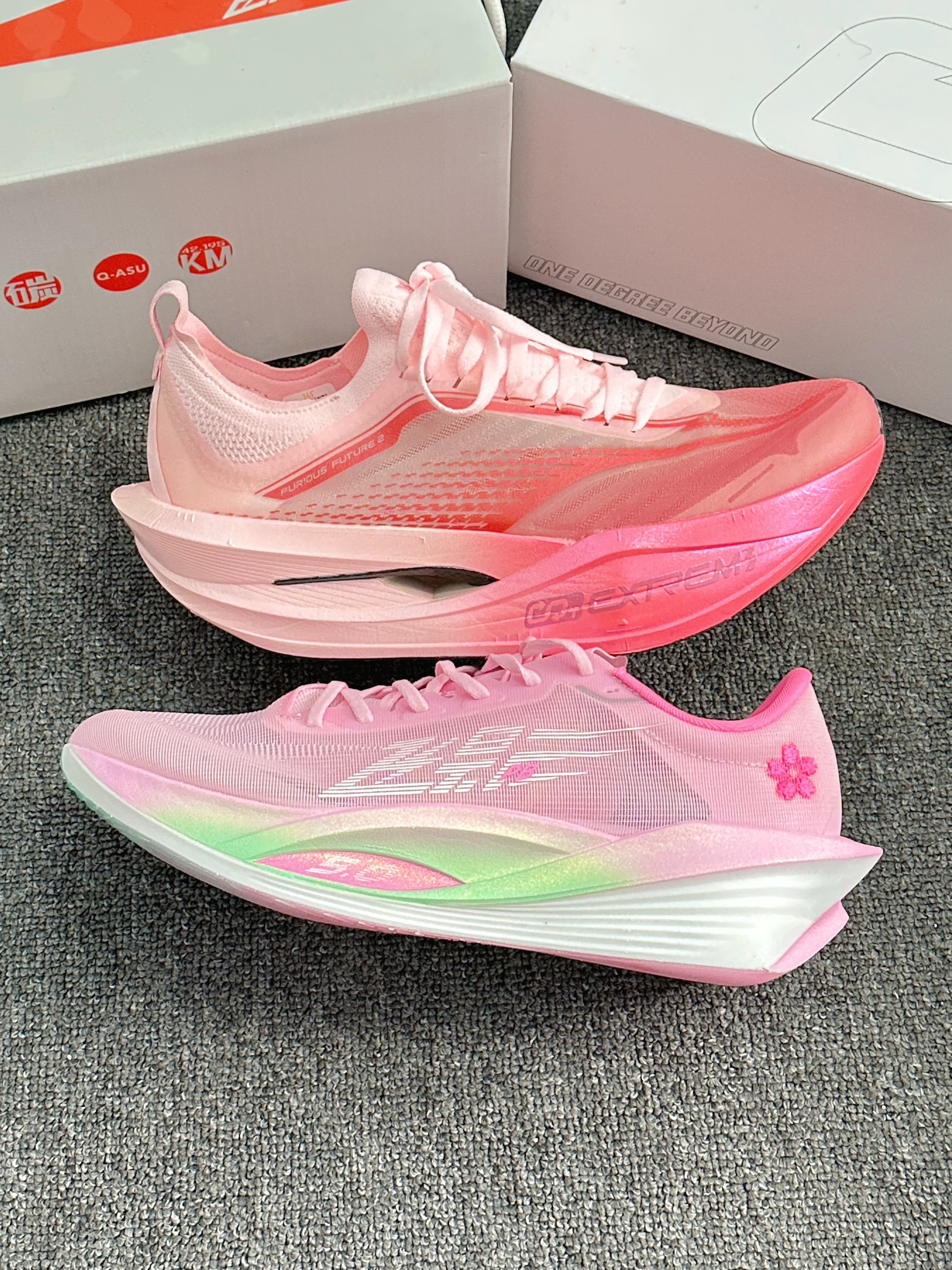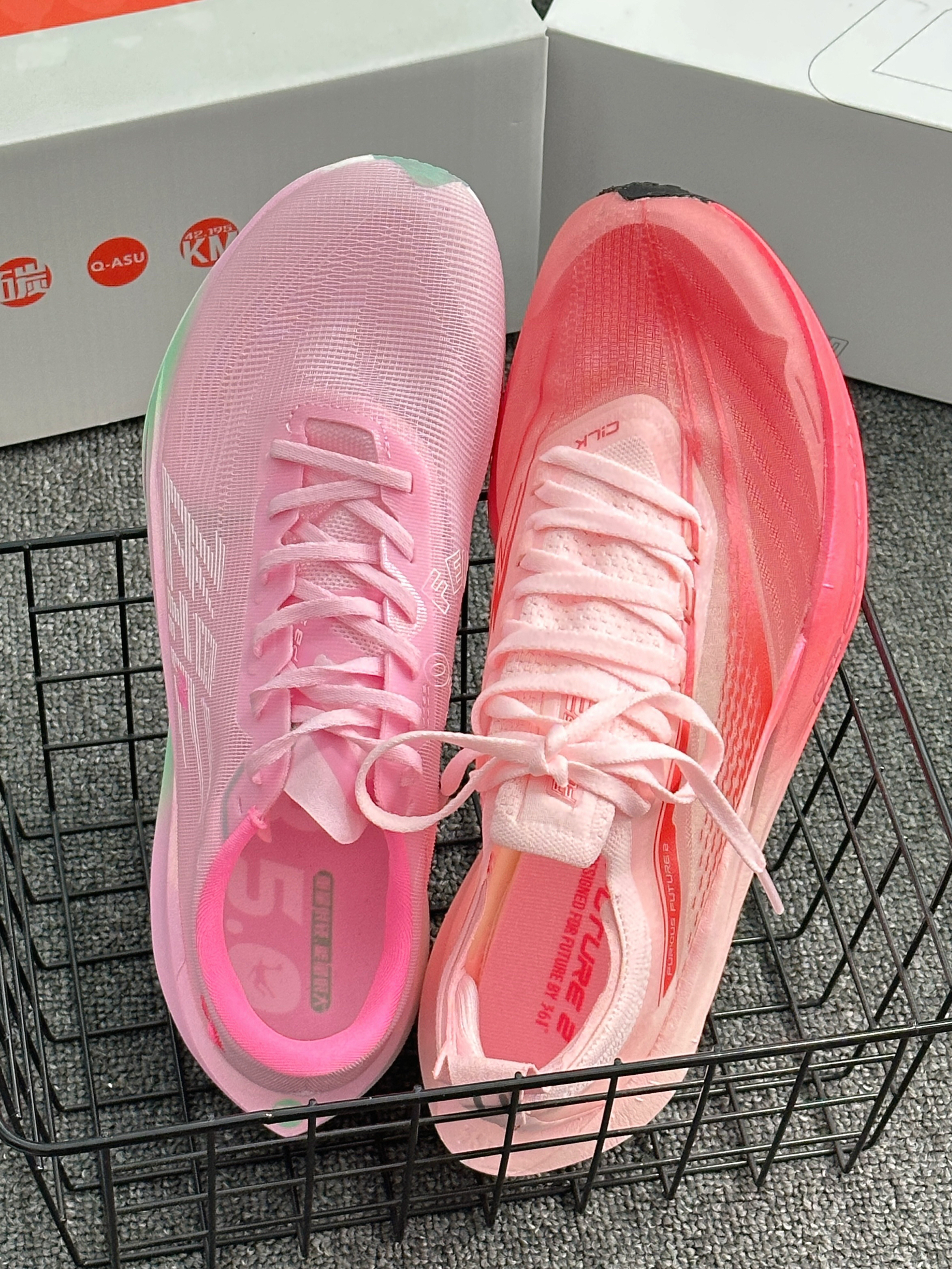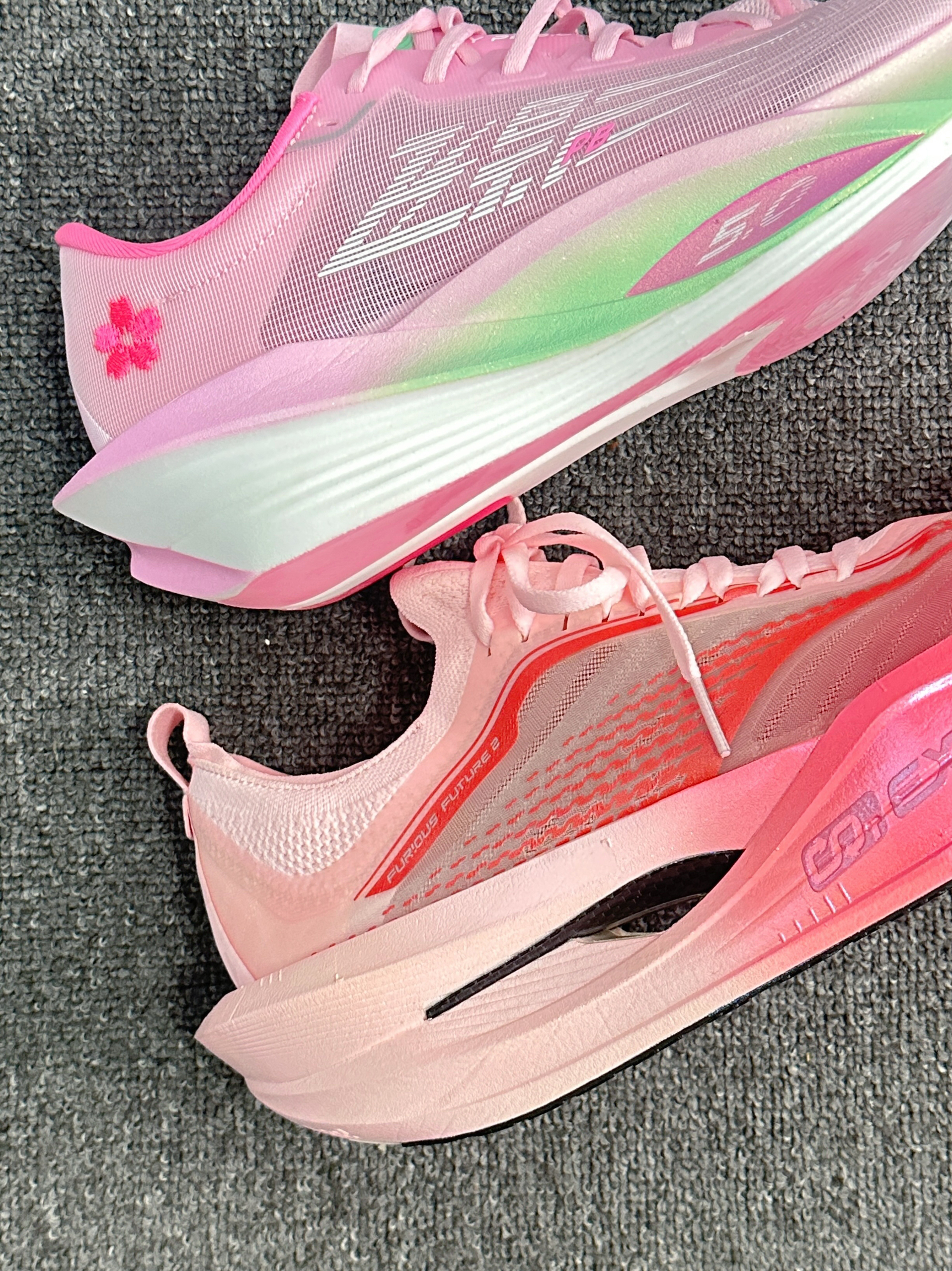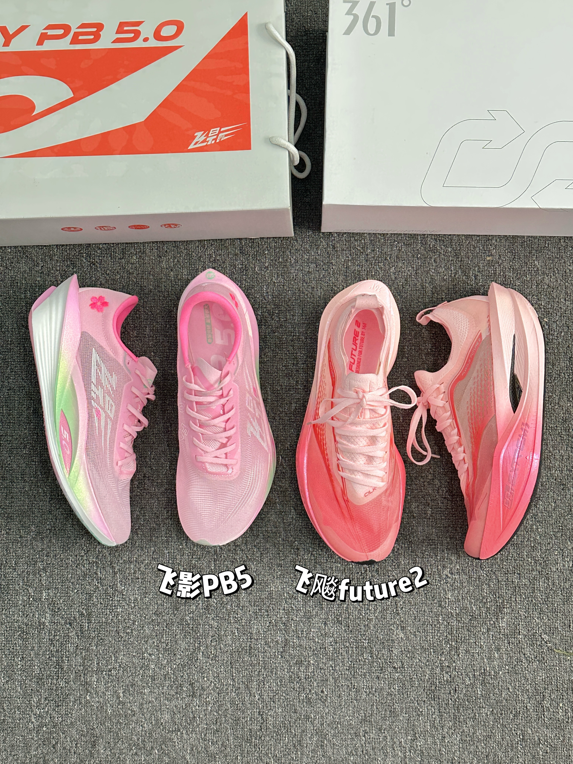 ✨Hello~大家好!这里是以梦喂马 猛男都应该喜欢粉色吧~ 飞影pb5🌸和飞飚future2.0丘比特选不出来了 飞影PB5: 适合追求速度的跑者,中底采用巭PROHP双密度设计,是软中带韧性的脚感。碳板刚性适中,是温和推进,适合间歇跑和赛道竞速。 透气性和稳定性表现不错,42码单只190g左右,适合小体重跑者。 飞飚Future2: 适合步幅型跑者,前掌加宽设计提供良好的稳定性。动态碳板在...