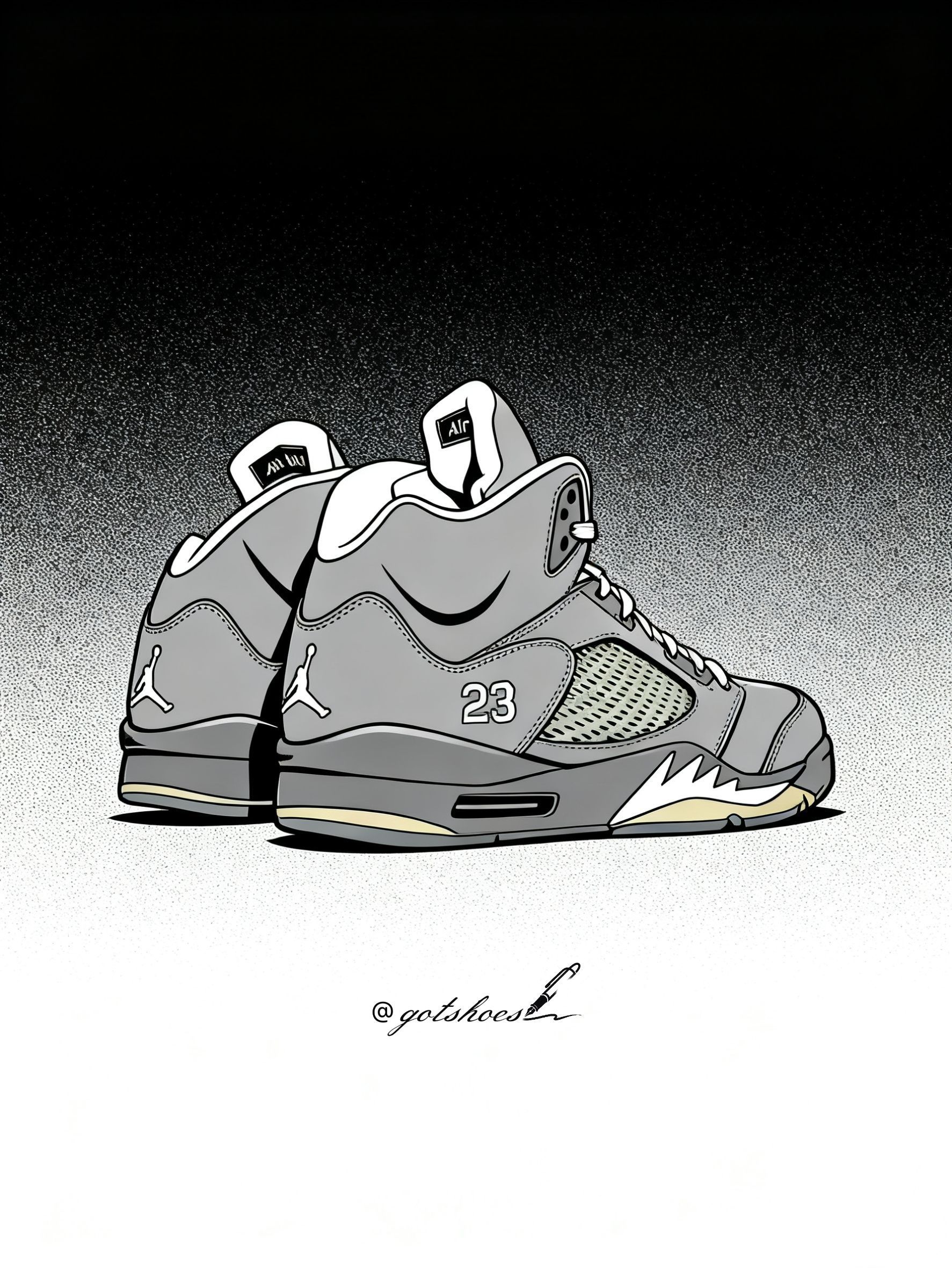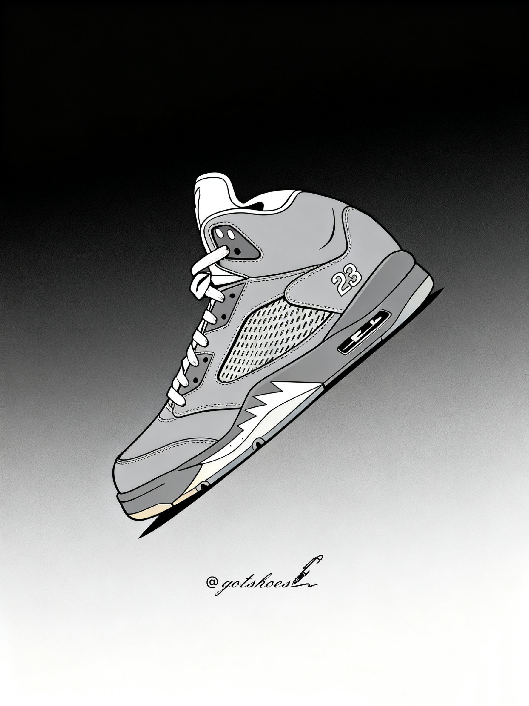 灰色是Jordan正代系列很得我❤️的配色,这款浪灰AJ5即将在2026年第一次迎来复刻,这对我来说是出必入的款了,今天就画一画这款让我魂牵梦绕的尤物