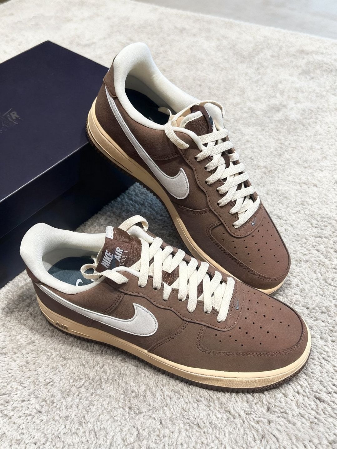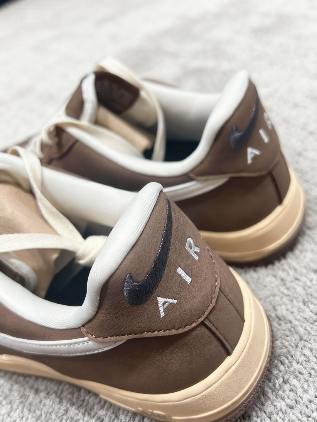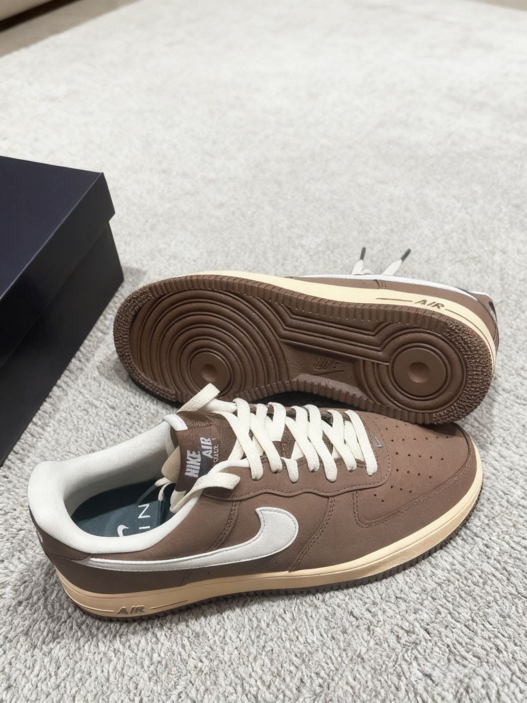 入手这双Nike Air Force 1的棕白配色,算是给我的鞋库来了个质感升级。第一眼就被这浓郁又不沉闷的棕色麂皮吸引,搭配米白勾子和做旧中底,复古感直接拉满,走在路上都觉得自己的穿搭腔调很特别。 上脚的舒适度没话说,AF1的经典脚感一如既往地稳,平时上班通勤或者周末和朋友逛展,穿它都很自在。而且这配色太百搭了,不管是配深色牛仔还是卡其色工装裤,都能穿出不一样的风格,每次搭配都像在解锁新的穿...