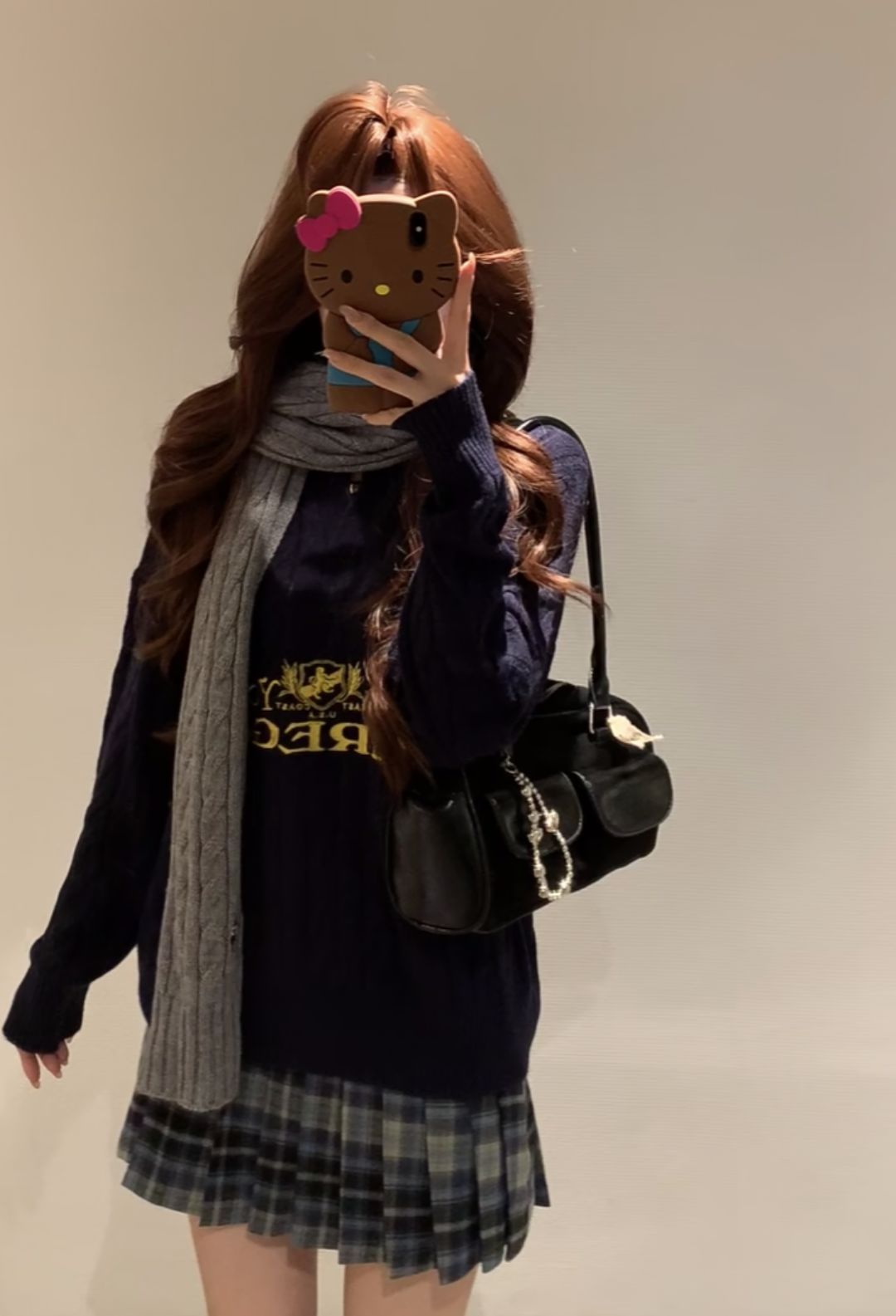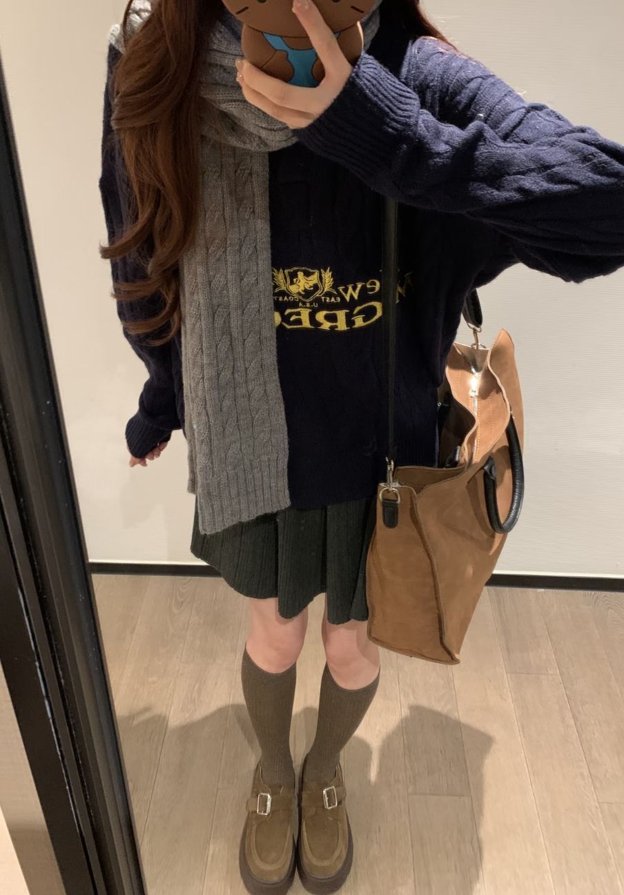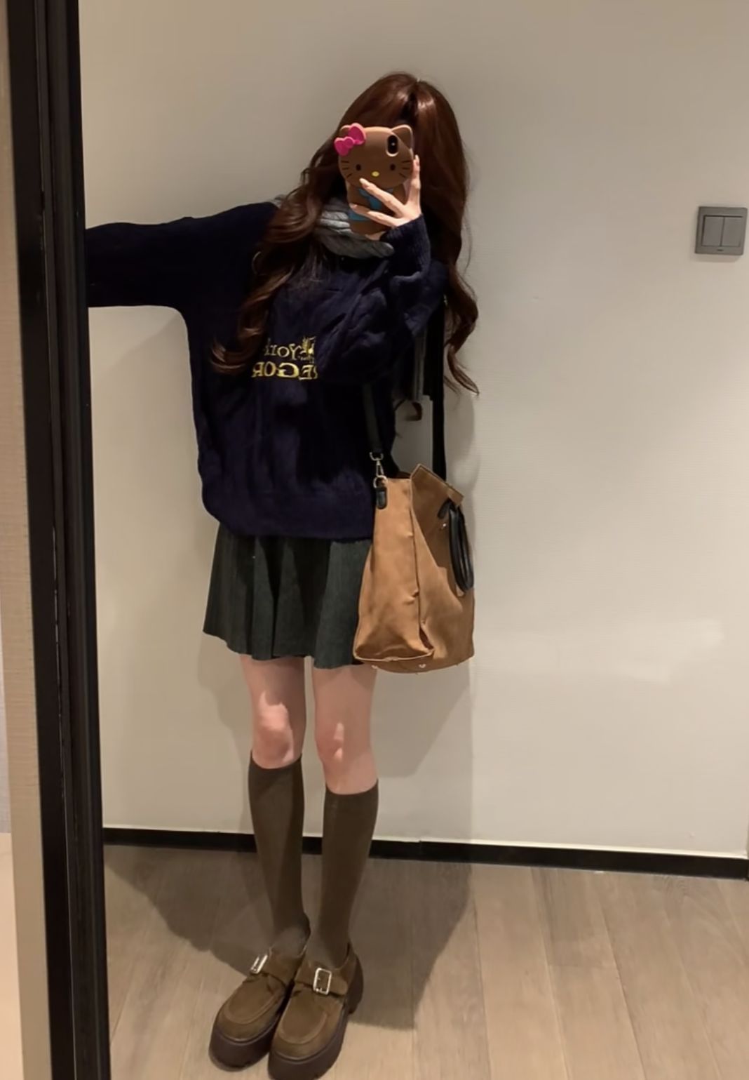 oversize毛衣和百褶裙的碰撞, 以及一双看起来就很暖和的鞋子, 喜欢秋天,可以穿的美美哒