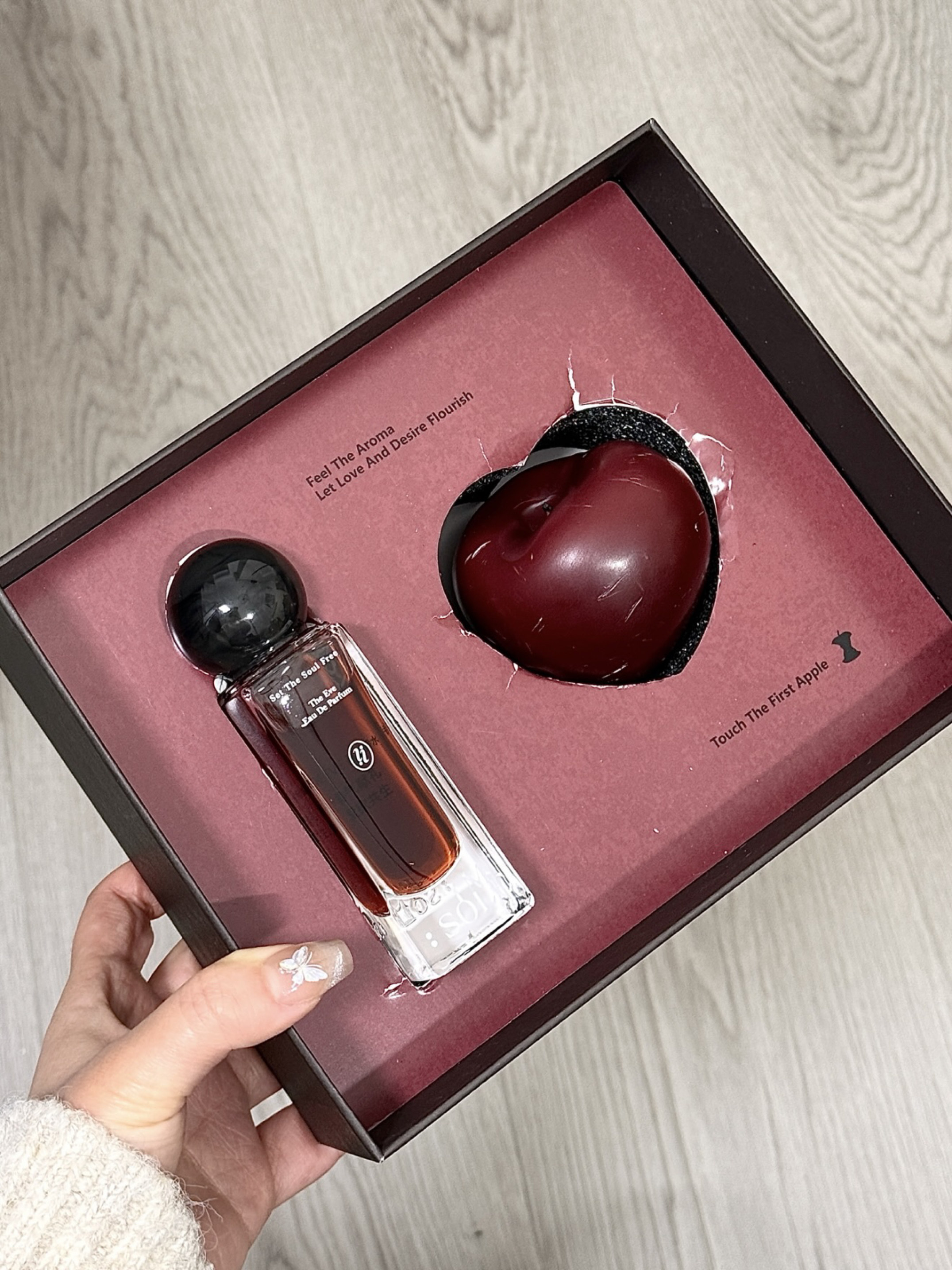 就是不定所的介个夏娃香水香薰礼盒 夏娃香水是那种又奶又欲的花果香调 让人闻起来好上头 而且留香时间也蛮久的 香薰蜡烛还是爱心苹果的造型 尊嘟很特别~ 我感觉不管是自用还是送人都合适诶!