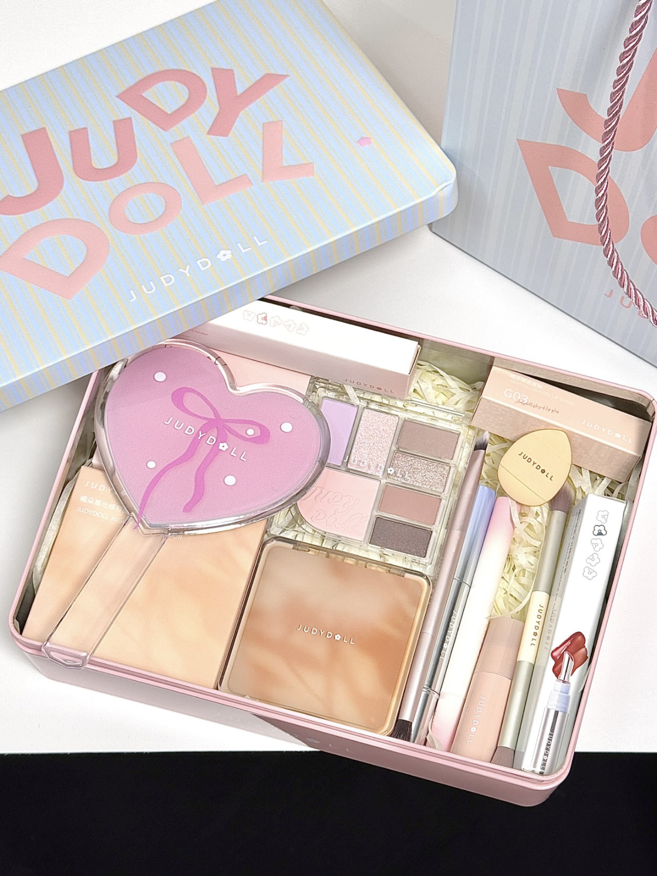 不是…介个粉蓝配色的礼盒也泰美了叭 打开是满满当当一盒彩妆: 眼影盘+修容盘+唇蜜+唇釉+唇粉霜 还送了手持小镜子、拇指粉扑和化妆刷 眼影盘的配色hin日常 整盘没有一颗废色 修容盘粉质细腻 上脸好晕染 唇釉的色号都是日常百搭滴 我是白皮 涂它很显气色 铁质盒子还可以用来当收纳盒 这一套送女孩子不会出错滴!