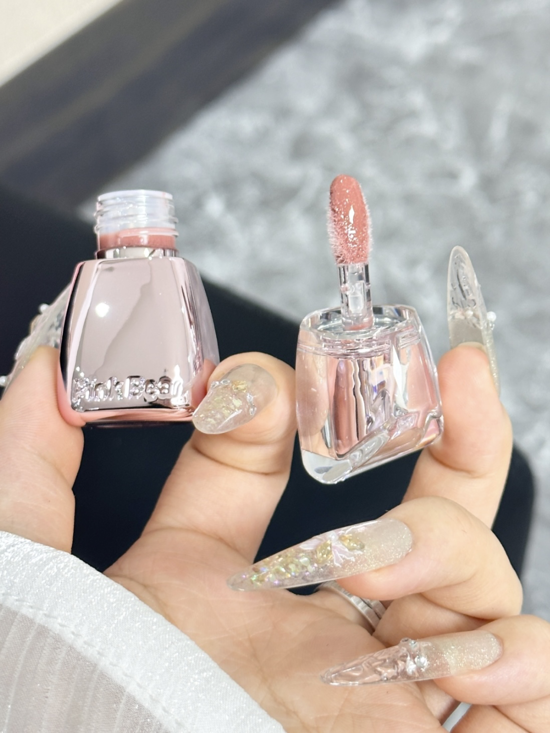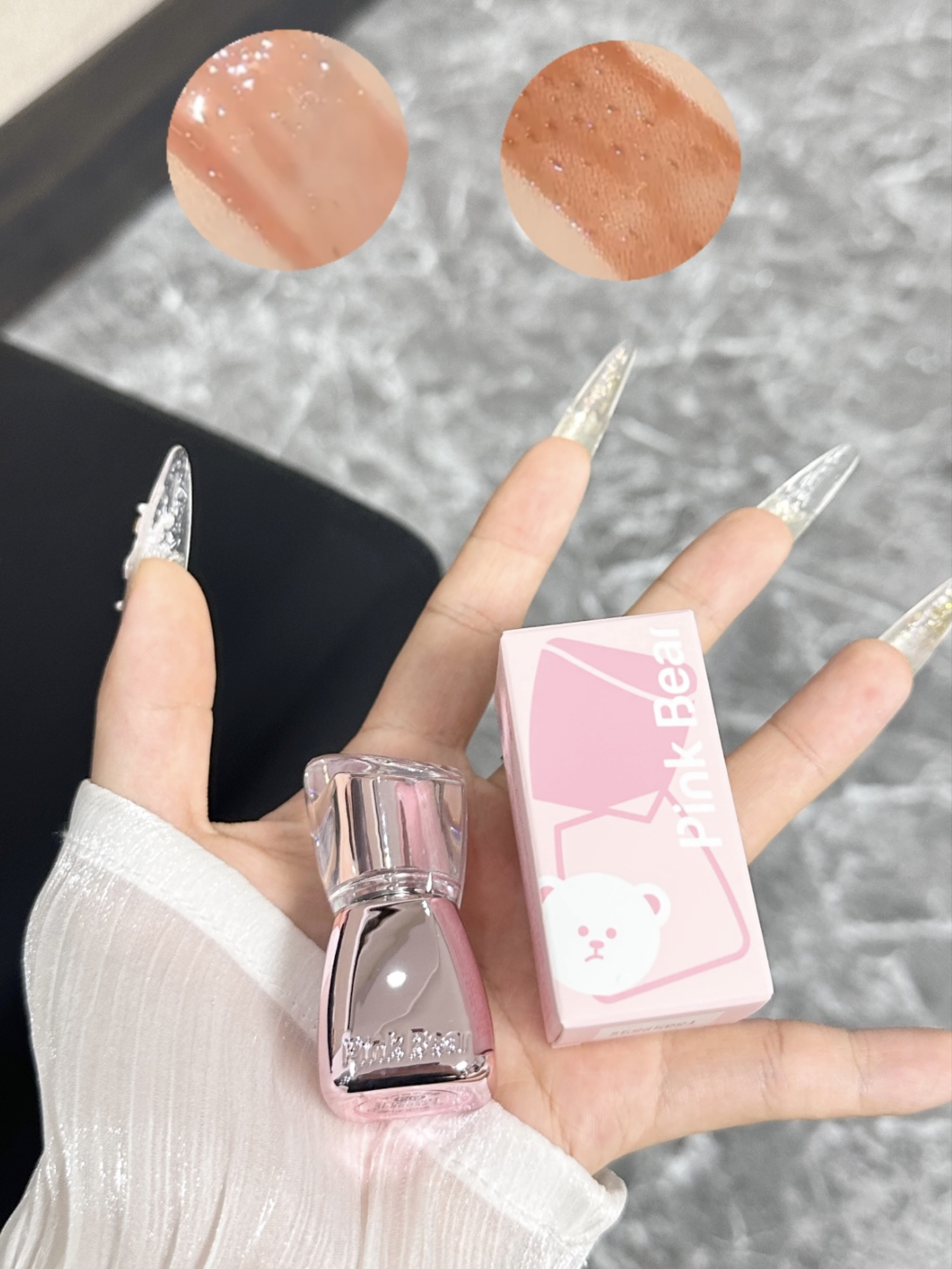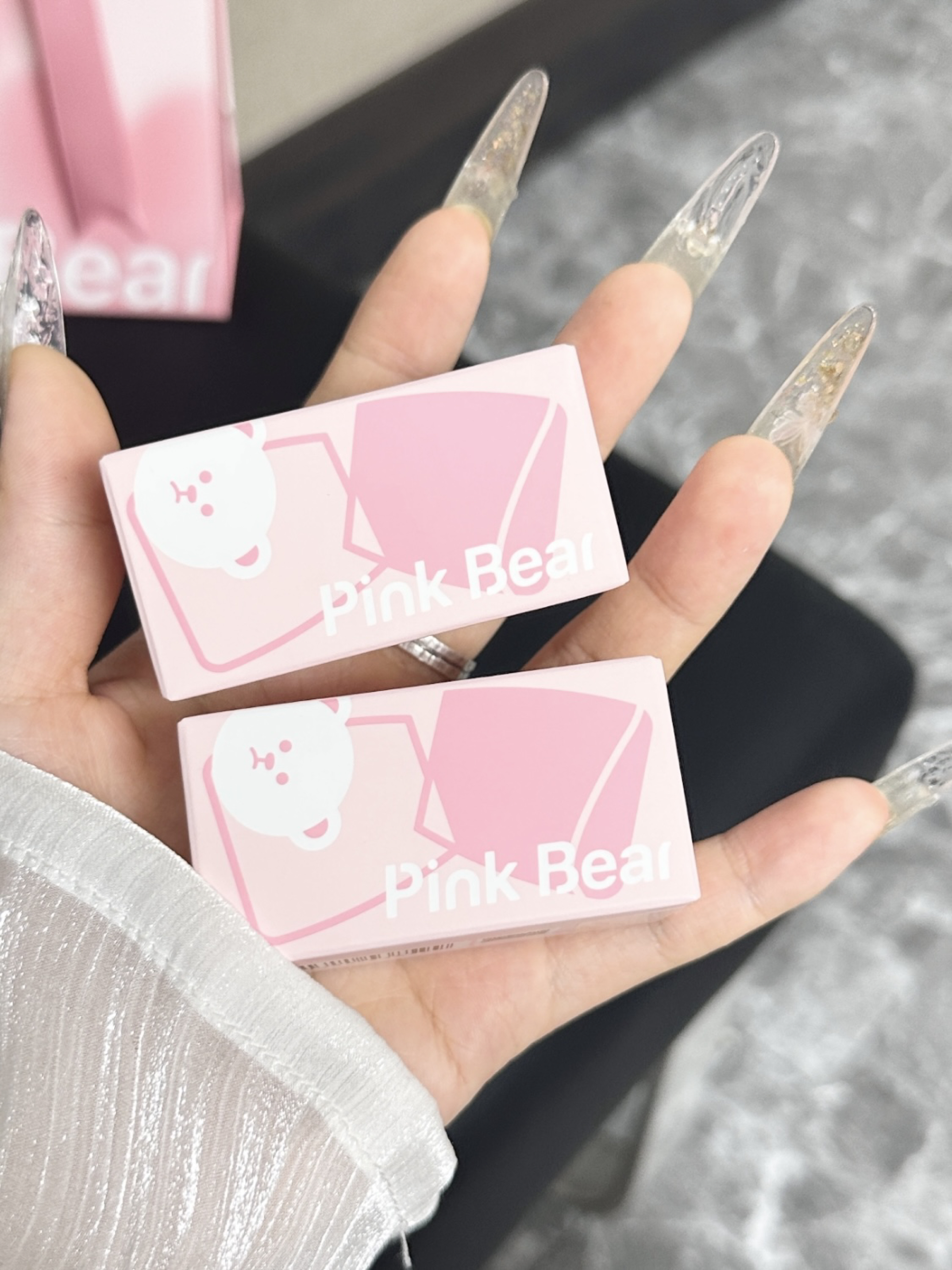 就素介个pinkbear唇釉礼盒啦 粉嫩嫩的蝴蝶结礼盒我觉得好少女心呢~ 两个色号的颜色我觉都好夏日呀 成膜后上嘴我们喝水不沾杯 我们搭配个小裙子用介个唇釉真的好韩妹~ 旅游用这个可以!