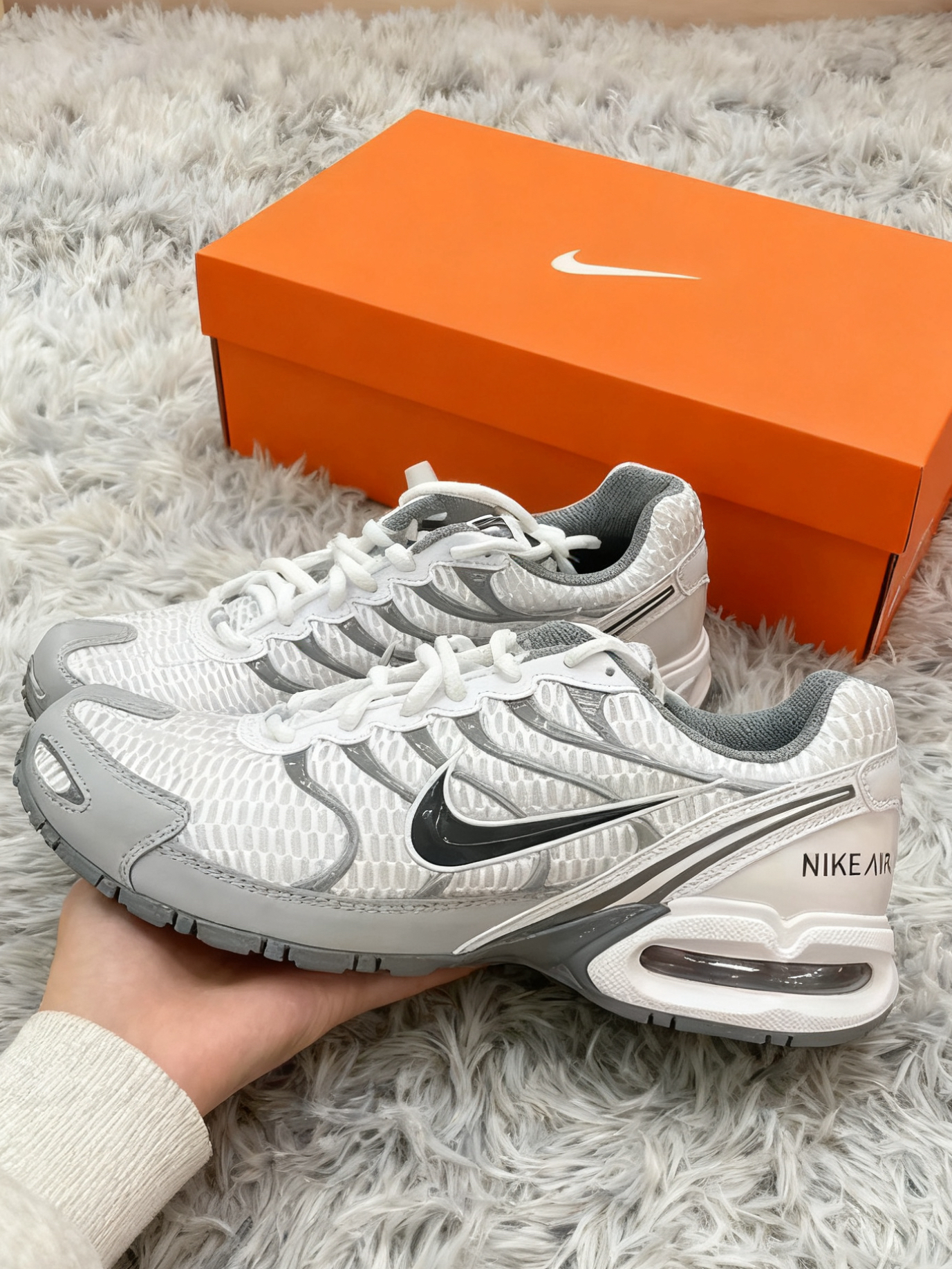 银灰主色调搭配黑色Swoosh,简约又高级,鞋身设计很有层次感,复古又带着未来感🎉 脚感超赞,气垫踩上去软乎乎的,长时间走也不觉得累。而且包裹性很好,对脚型超友好,不磨脚🏆