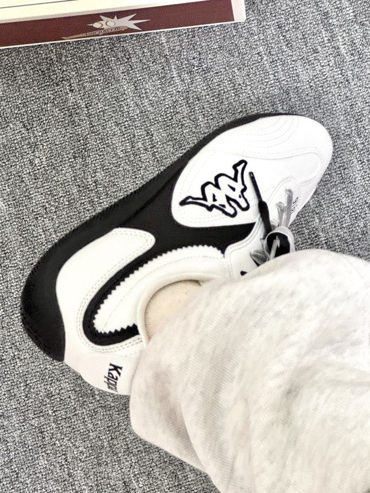 家人们!Kappa这双鞋真的绝了~ 黑白撞色经典又高级,银灰鞋带还带点酷飒感,标志性logo超吸睛 质感拉满,上脚舒服又百搭,不管是通勤还是出街,都能轻松slay全场,妥妥的穿搭宝藏,闭眼入不踩雷~