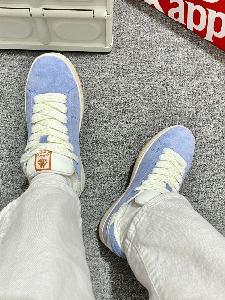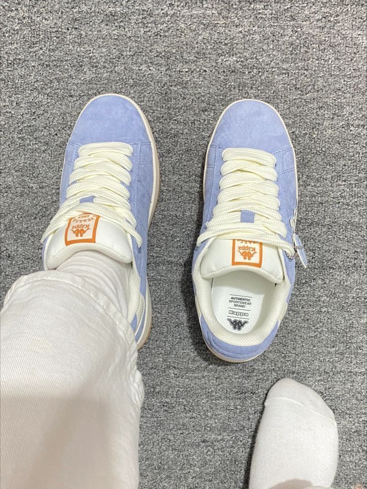 家人们谁懂啊!Kappa这双淡蓝色板鞋太戳我了~ 清新配色像把蓝天穿脚上,经典串标超有辨识度 麂皮质感高级,上脚软乎乎贼舒服,搭配啥风格都好看,妥妥的穿搭神器,闭眼入不踩雷!
