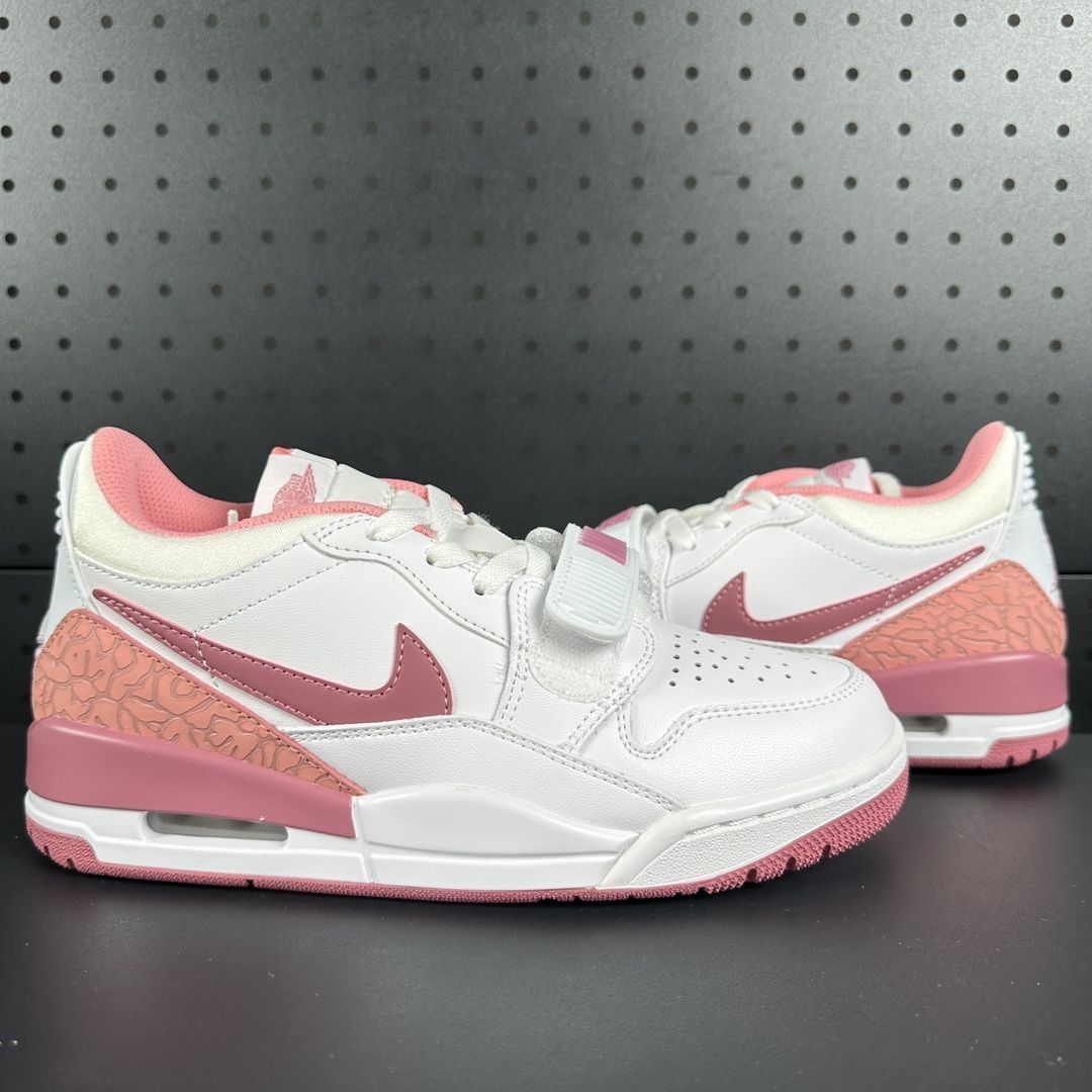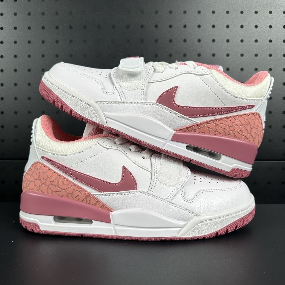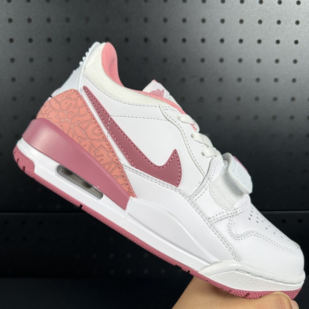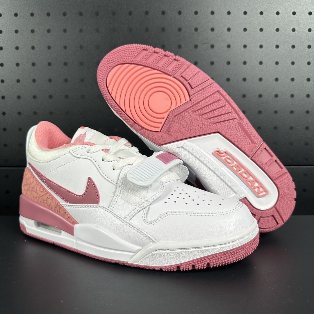谁能拒绝这双粉白撞色的Jordan Legacy 312呢?颜值直接戳中少女心,白粉色调清新又吸睛,细节处的纹理设计还很有质感,不管是搭运动裤还是小裙子都很出片~ 好评点 - 颜值在线:粉白配色甜度拉满,设计融合复古与潮流,街拍范儿十足。 - 脚感舒适:防滑减震做得不错,日常走路、轻度运动都很舒服,孩子穿也能兼顾颜值与实用。 - 细节精致:鞋身的纹理、鞋扣等细节处理很到位,质感高级...