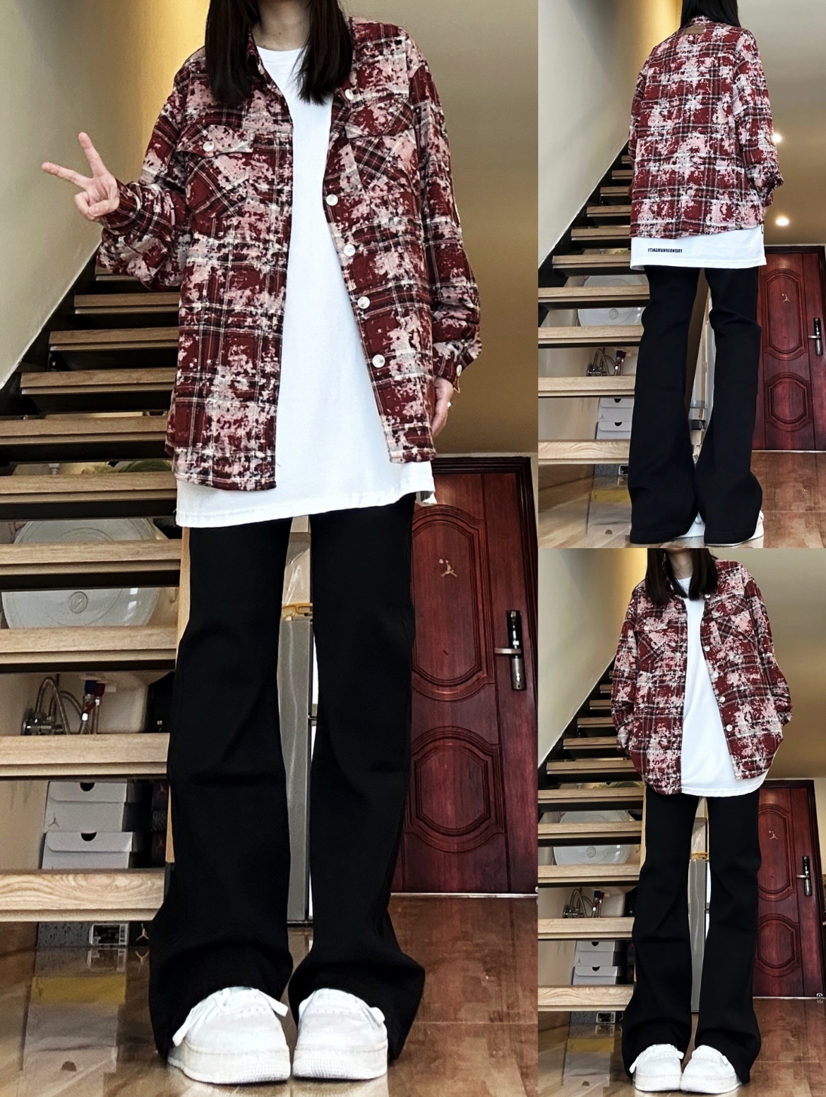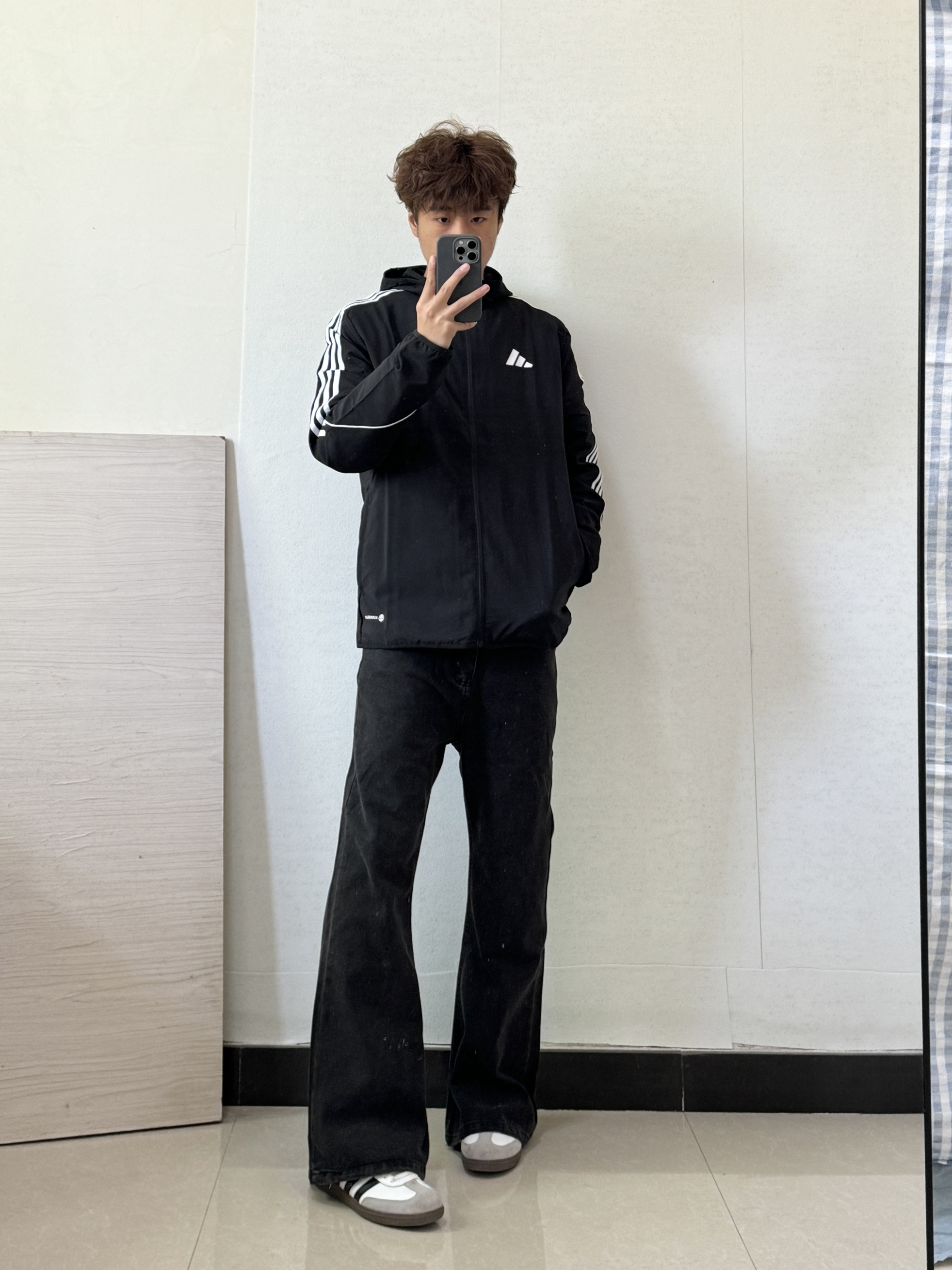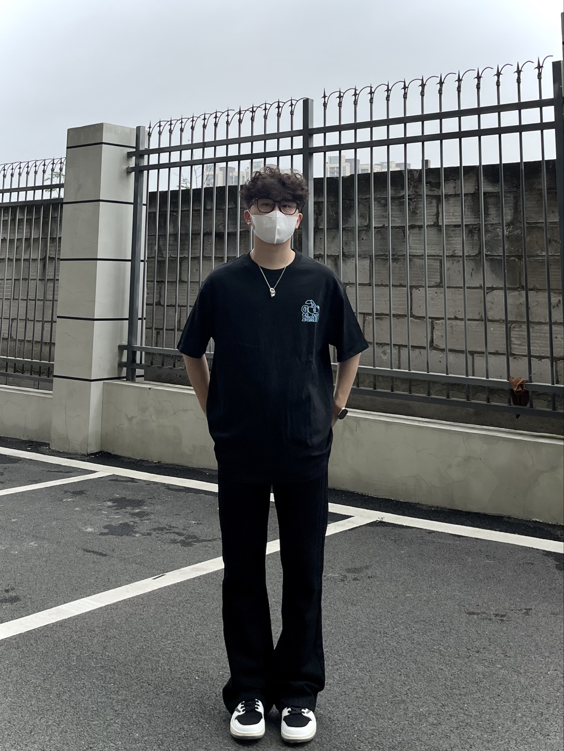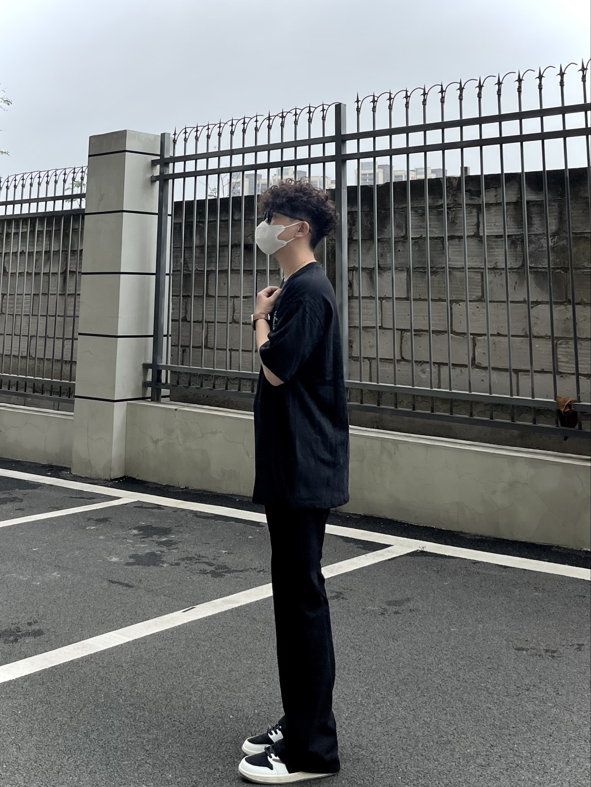 哈喽这里是乐言同学🏂🏻 美式vibe的感觉真的很心动自由又随性! 上身一件黑色的极简印花T恤,胸前logo是镂空樱桃🍒刺绣 干干净净的很好看,裤子是一条黑色的微喇牛仔裤。鞋子搭配倒钩AllBlack一身黑有人追!很显高级质感的一套。