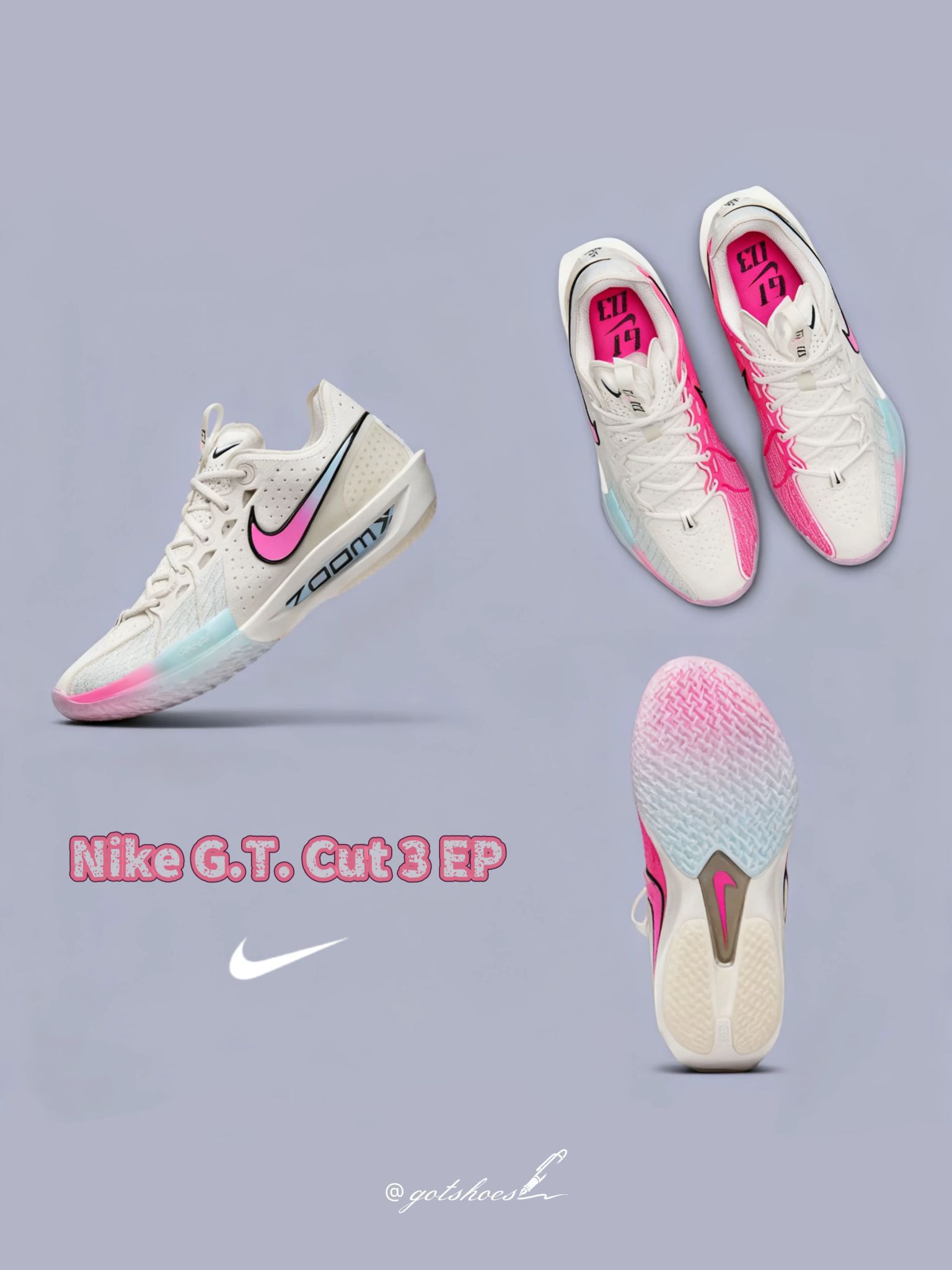 白色鞋面奠定了整双鞋的基调,最大亮点在于鞋面上大面积的渐变设计——从荧光粉过渡到淡蓝色,令人不禁联想到迈阿密“罪恶之城”的鲜明风格。这一色彩主题在侧边的 Swoosh 标志上尤为突出,无疑会成为球场上引人注目的焦点。配置上同样出众,中底与鞋垫均搭载 Zoom Air 缓震科技,带来双重回弹效果,脚感十分出色。 据悉,这款全新配色的 Nike GT Cut 3 将于 10 月 1 日正...