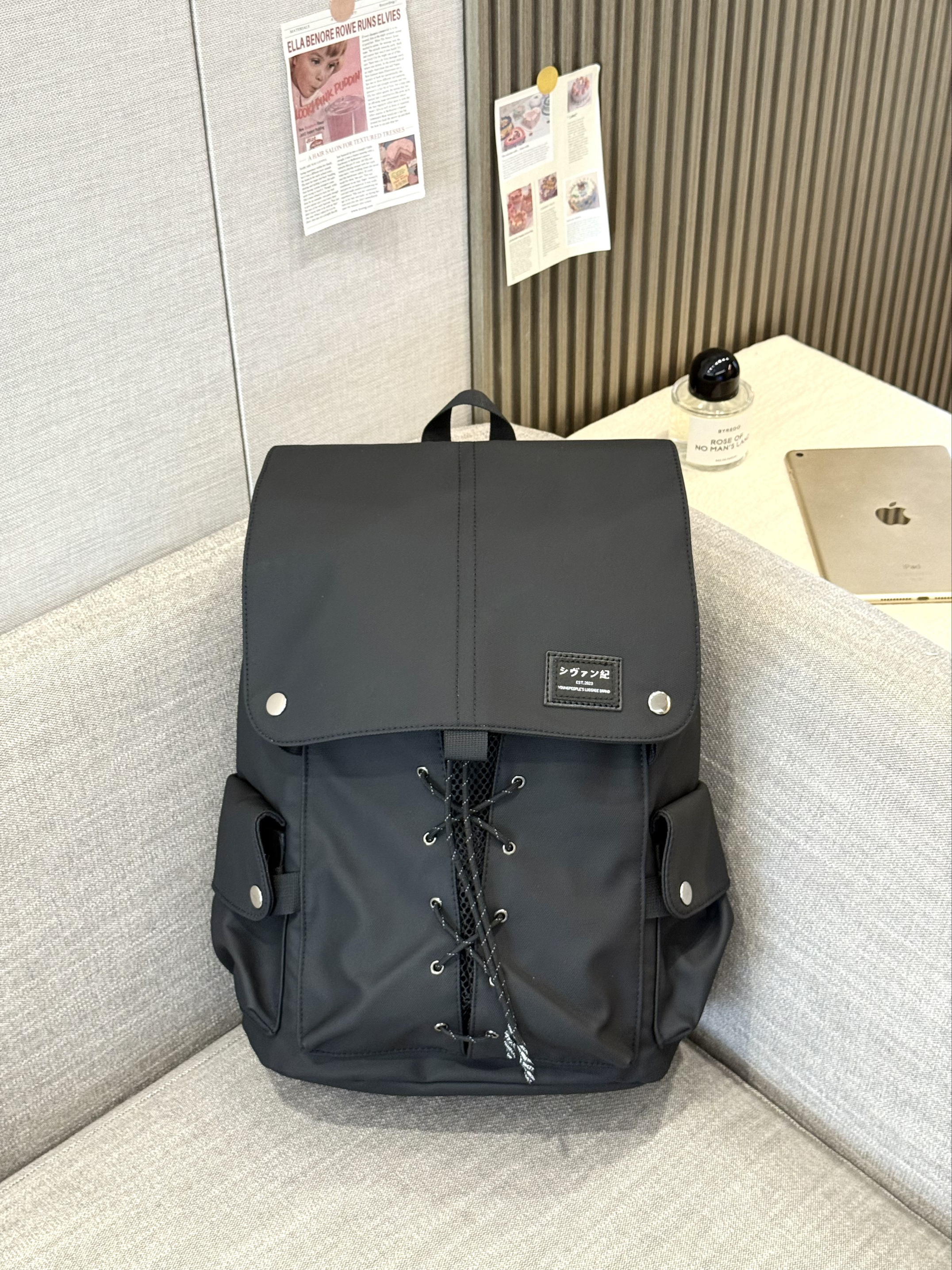 真的一眼看到介个黑色双肩包就疯狂心动啊! 背上身一整个酷 男生女生都可以背 容量也很适合日常出门的时候背~ 肩带是加宽加厚的 背着它出街旅游走一天都不容易累肩膀~ 随意搭配怎么背都好看
